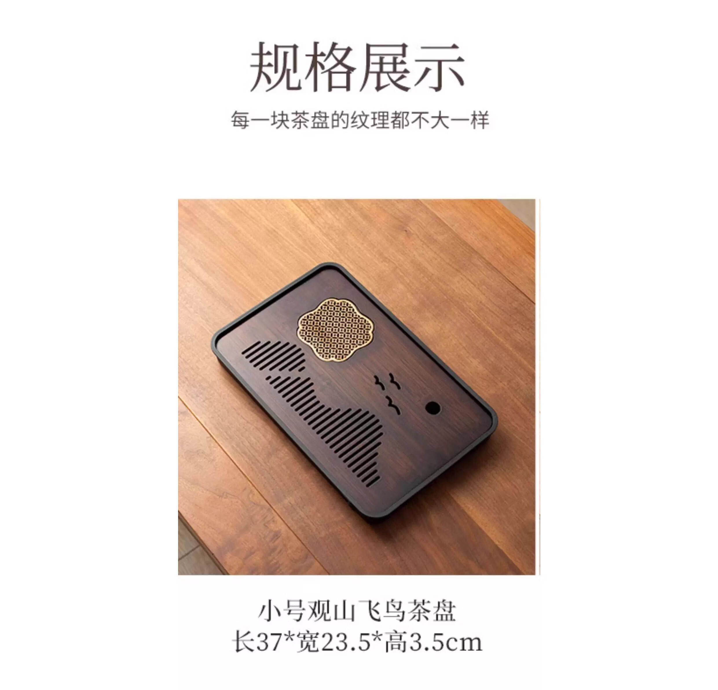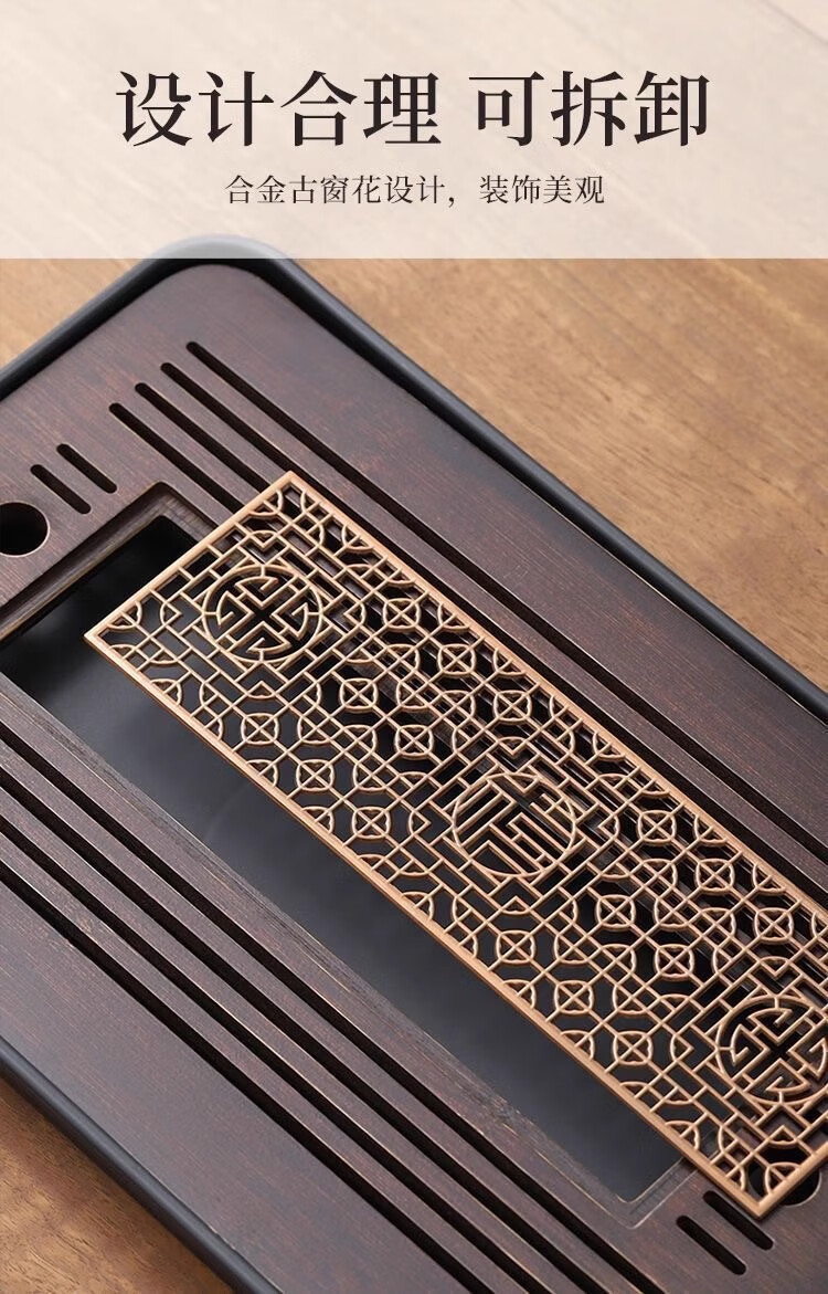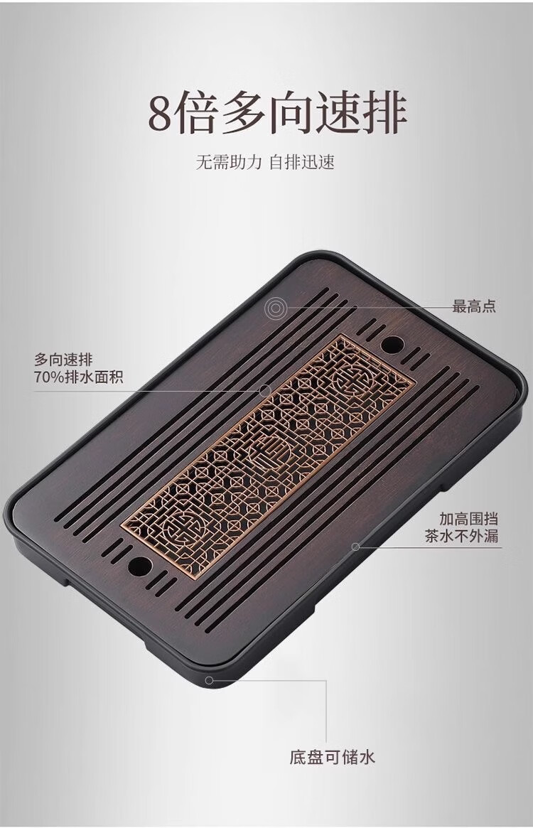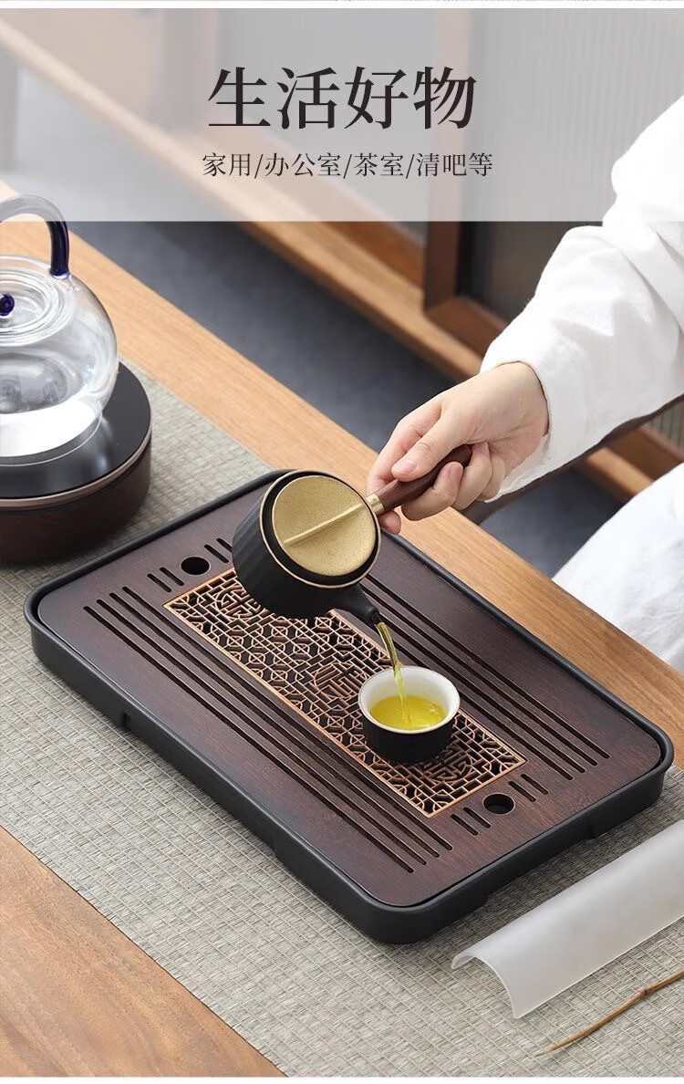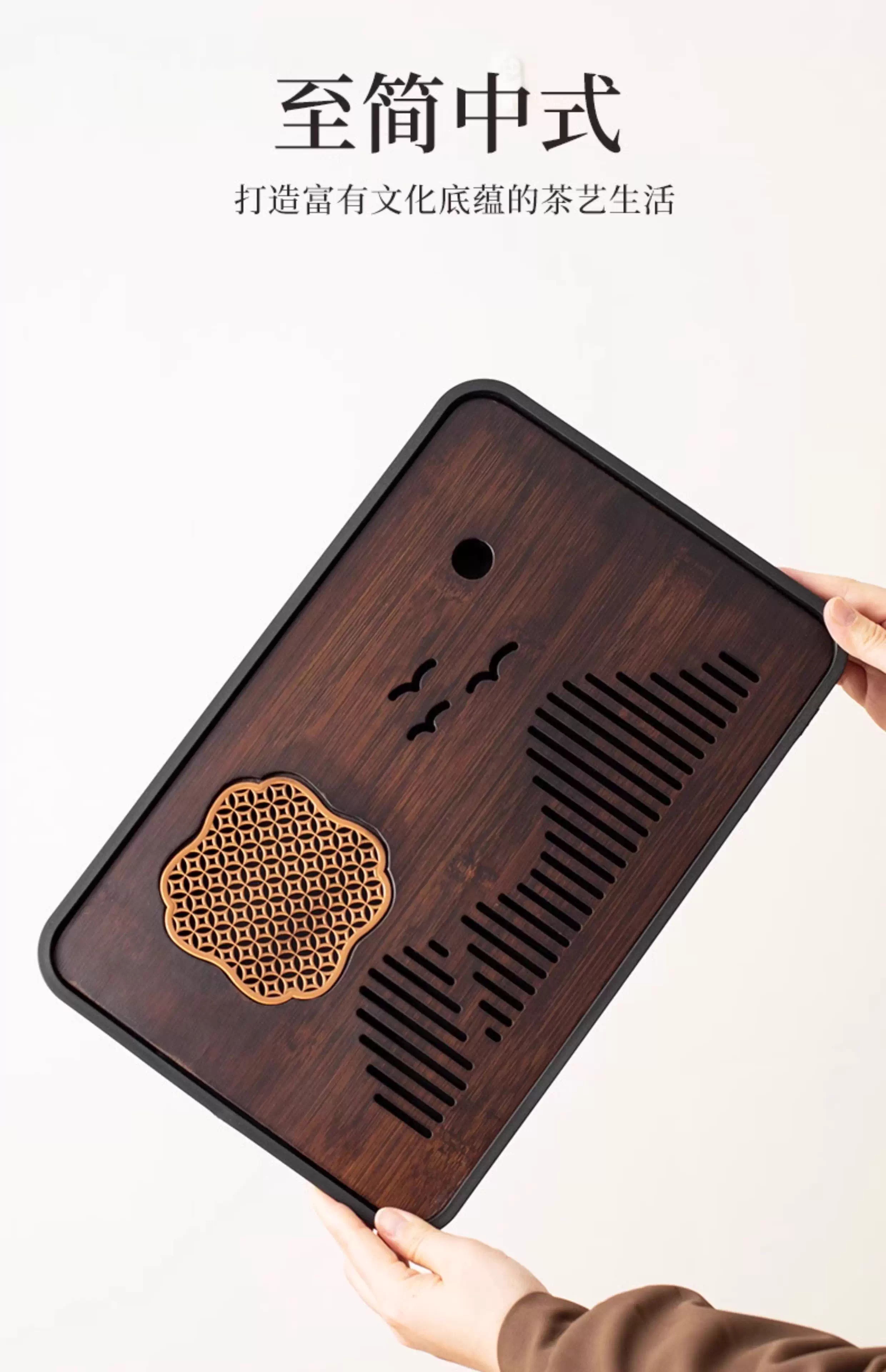 Zhenchu Ju Tea Tray Tray with Drainage Household Solid Bamboo Small Tea Table All-in-one Office Kung Fu Dry Soaking and Draining Tea Set Walnut Color Yuanshan 37*23.5