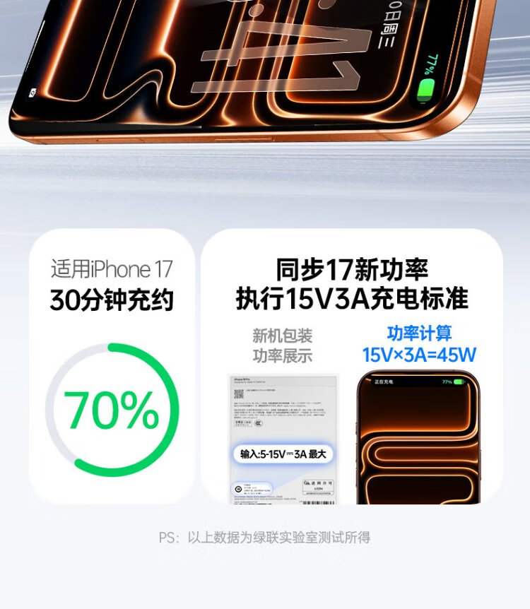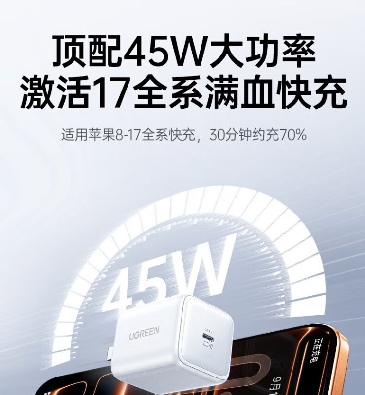 Lulian updated the new machine 40W Apple 17 charger 45W gallium nitride charging head set Type-C fast charging head suitable for iPhone17ProMax/16/15 mobile phone plug 45W gallium nitride exclusive fast charging for Apple 17/16