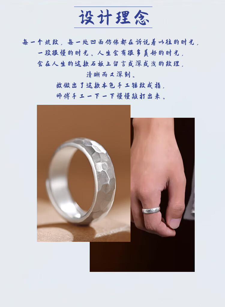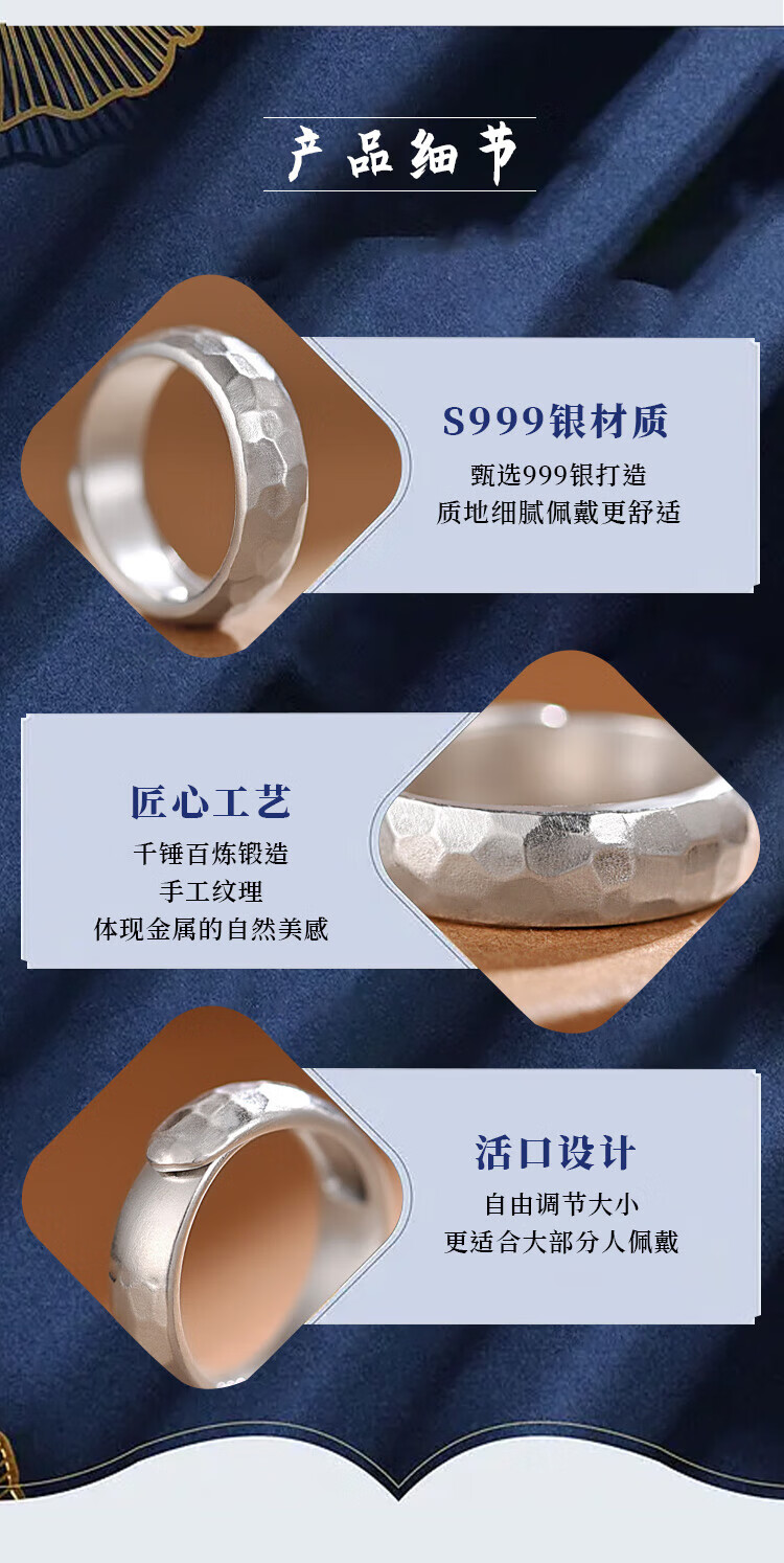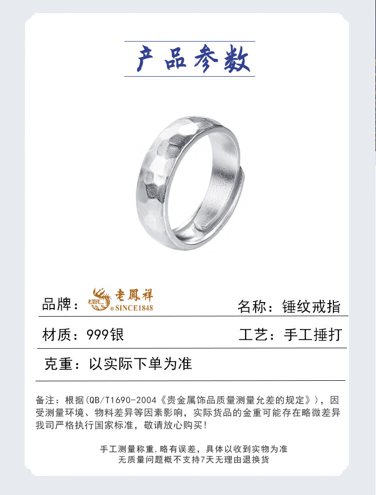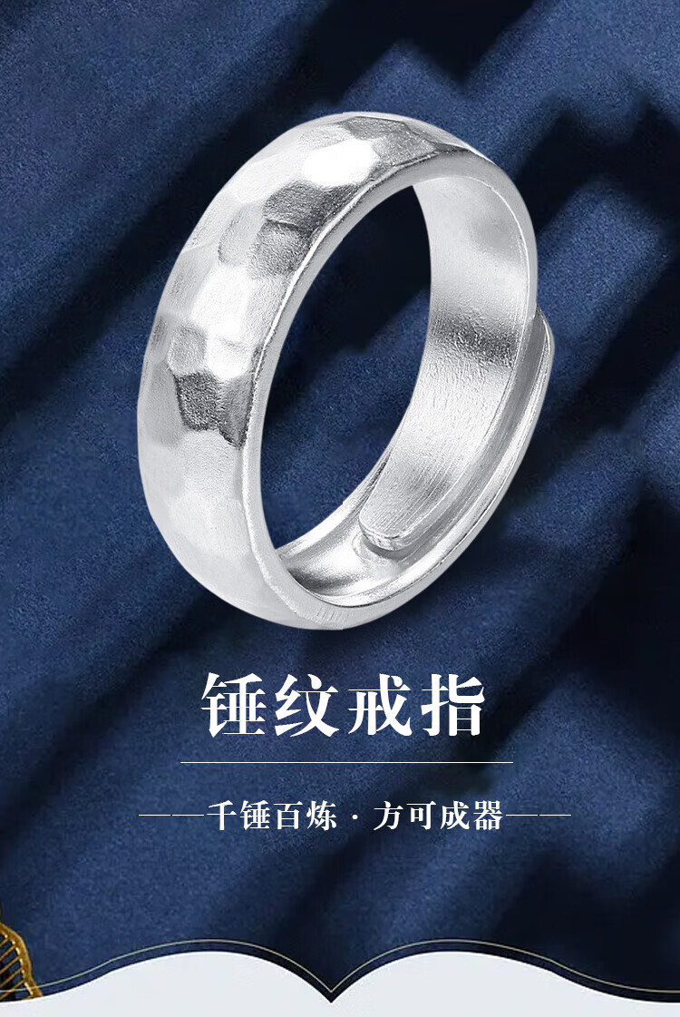 Lao Fengxiang Pure Silver Hammer Ring Men's Ring Ring Bracelet Ornaments Live Valentine's Day Birthday Gift for Boyfriend and Husband Same Day Delivery - Hammer Ring