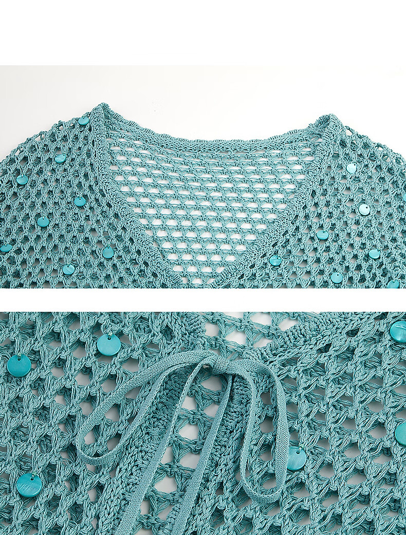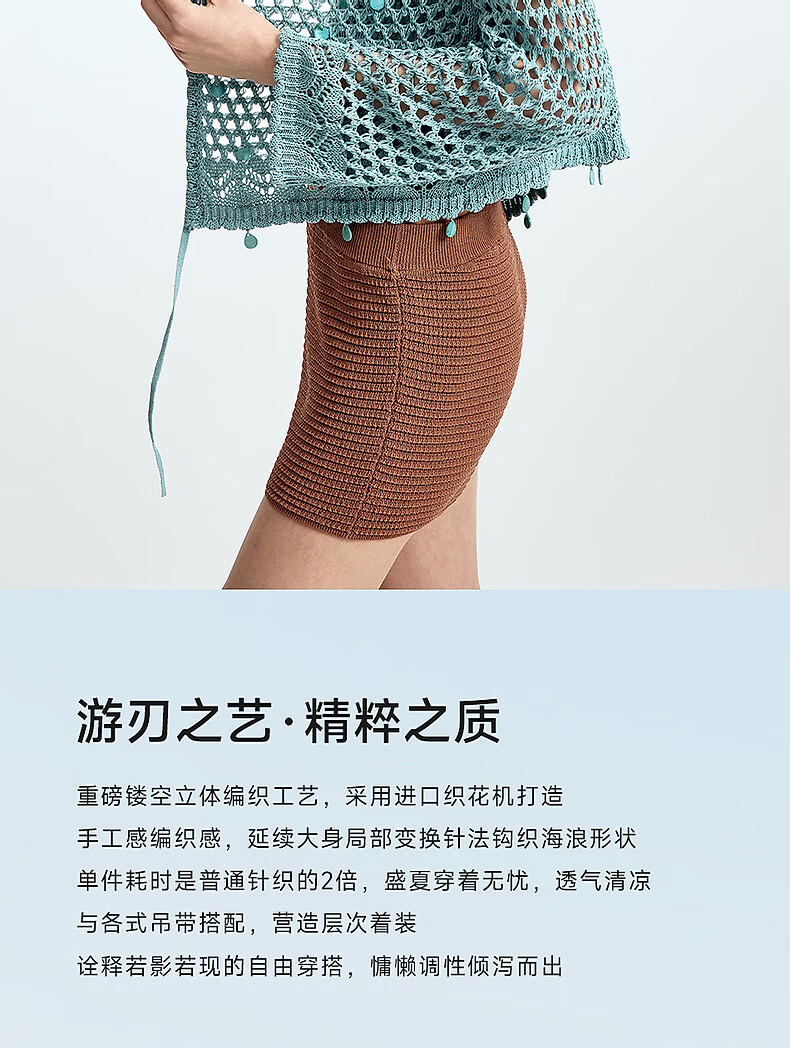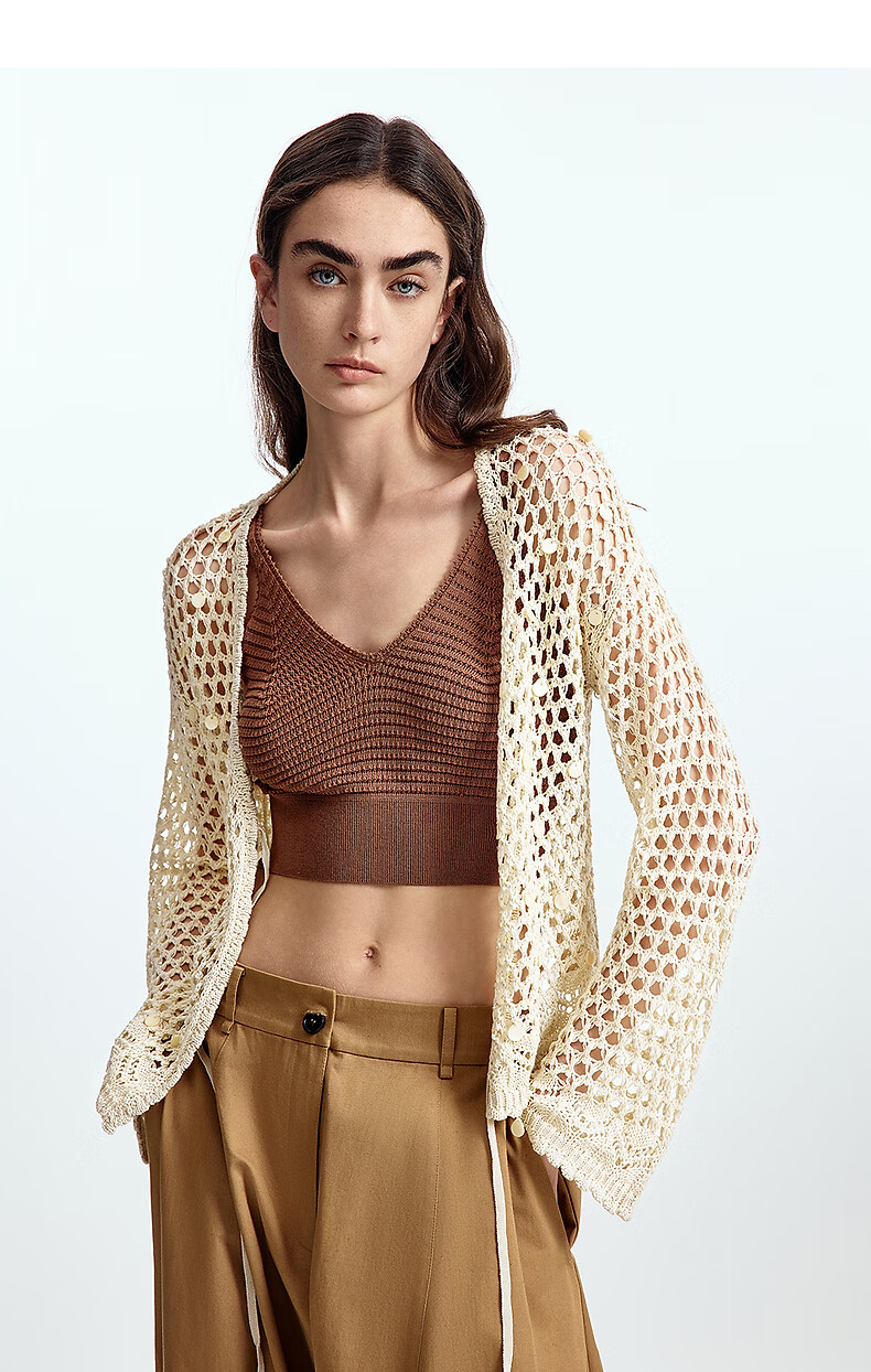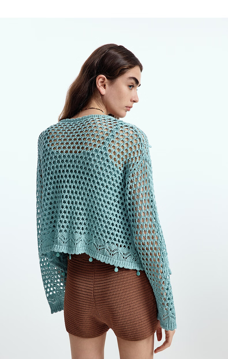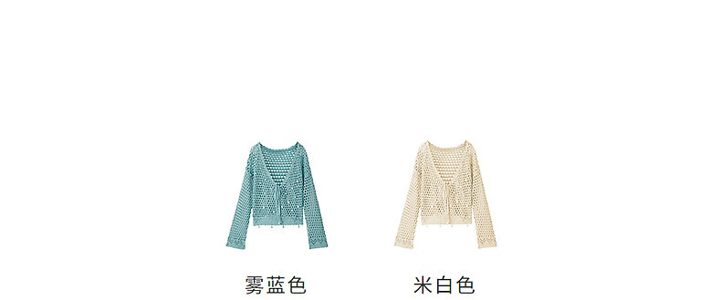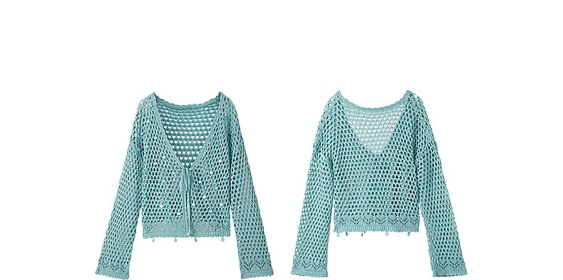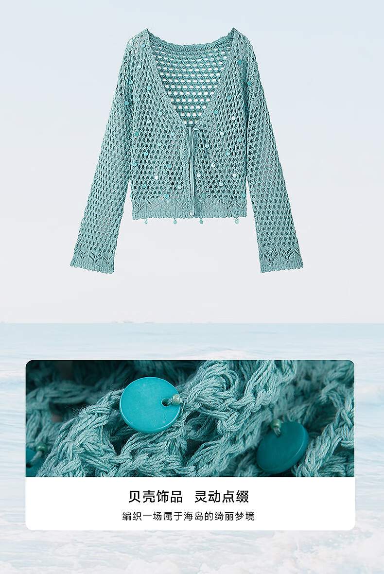 Langzi Yang series hollow cardigan temperament wool sweater summer new blouse top fog blue L