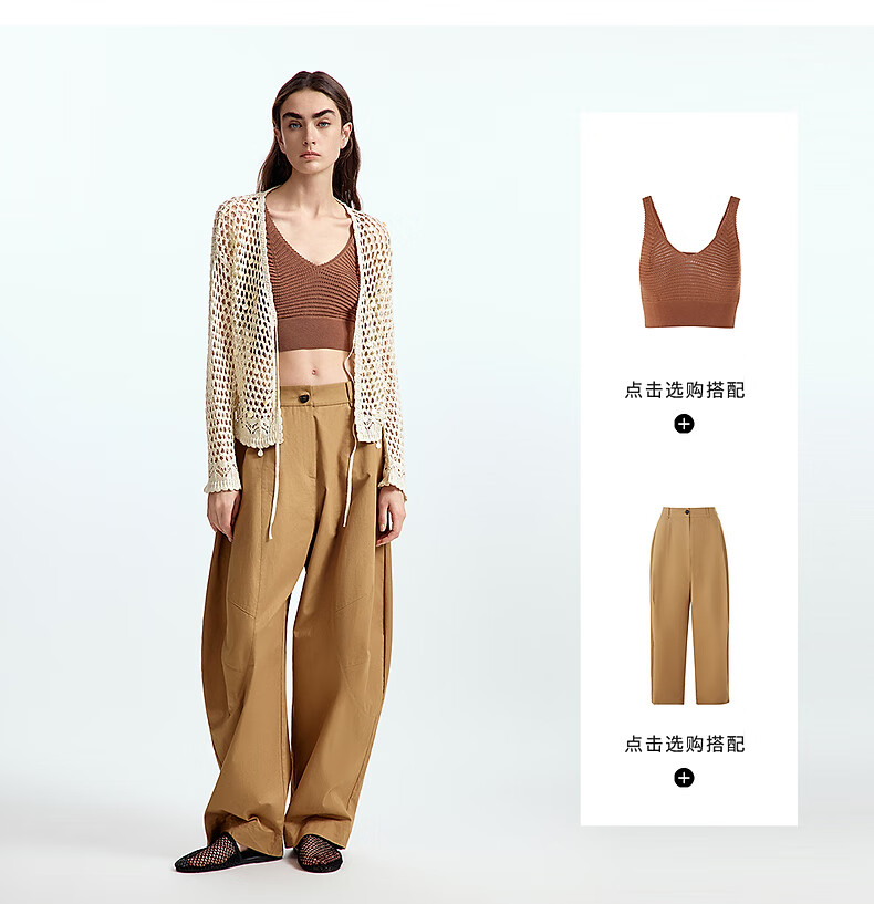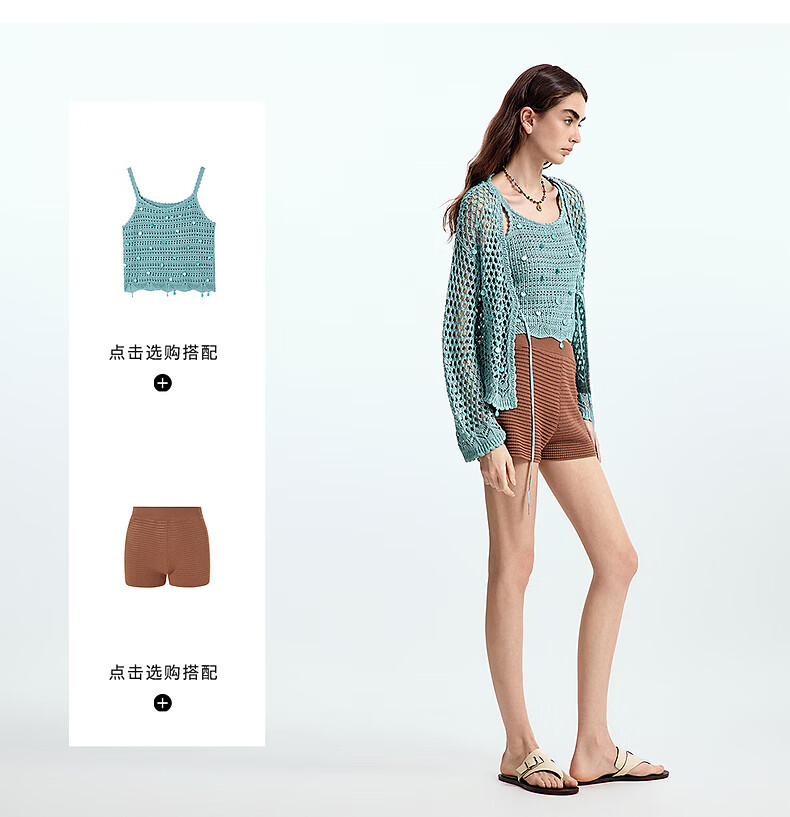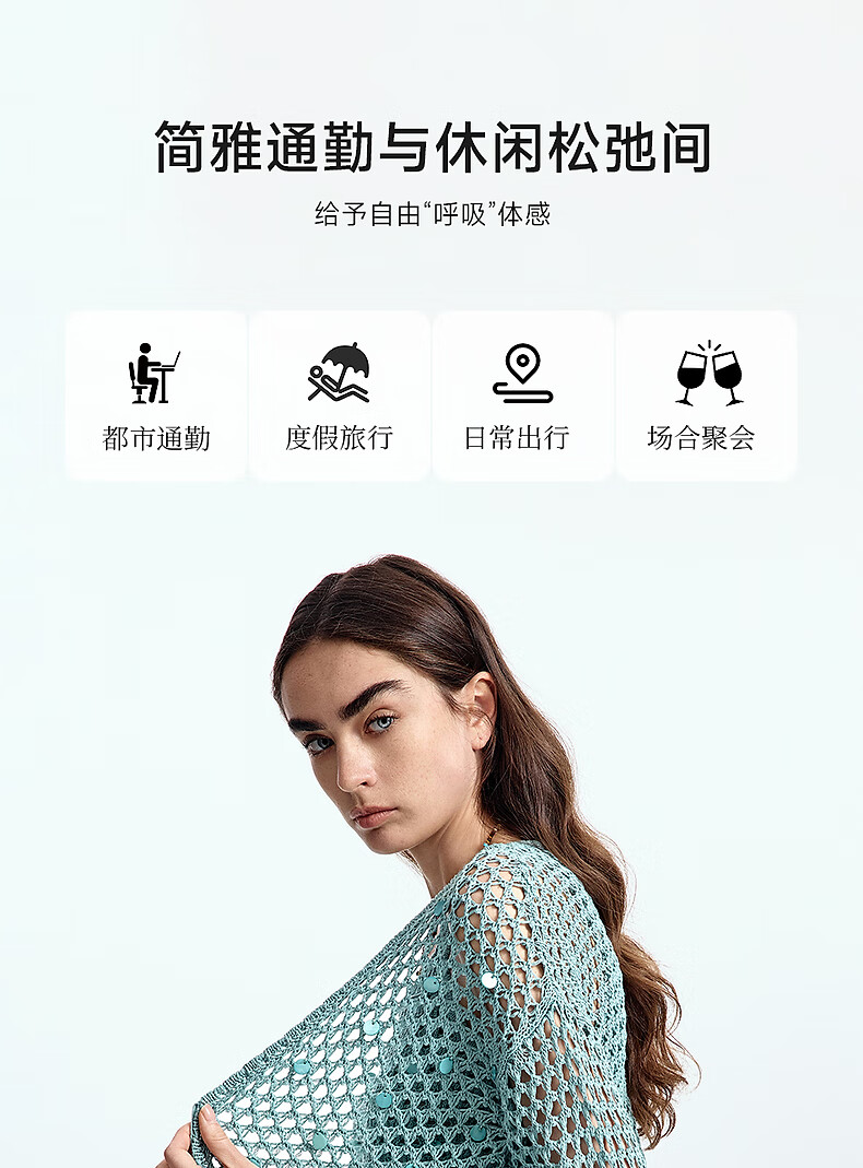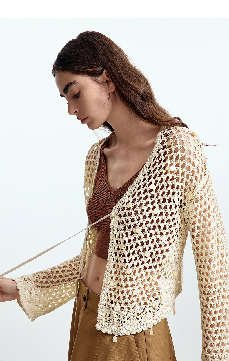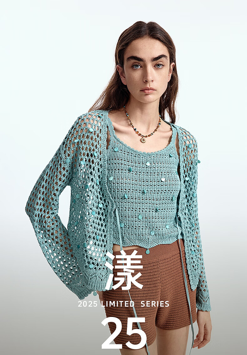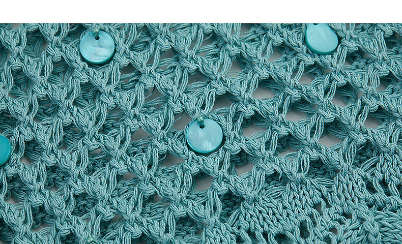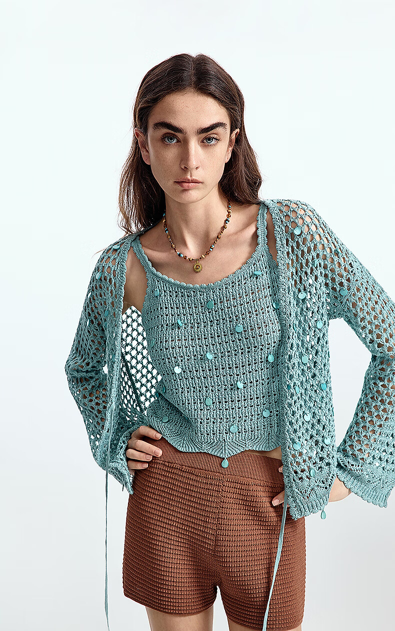 Langzi Yang series hollow cardigan temperament wool sweater summer new blouse top fog blue L