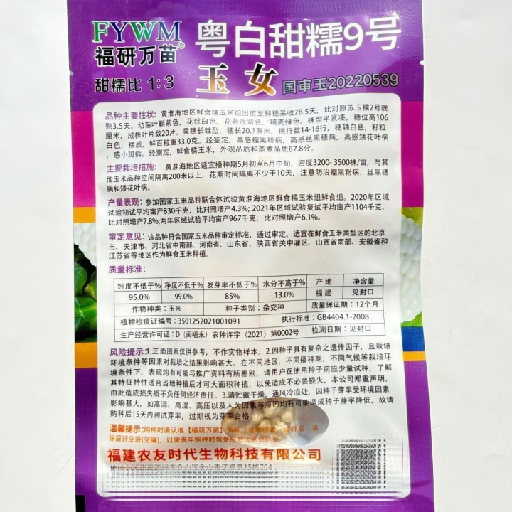 National Approval Corn Seed Sweet Waxy Corn Seed Hybrid Corn White Corn National Approval Corn Seed E Tianyu No. 9 Fruit Corn Seed Original 15g