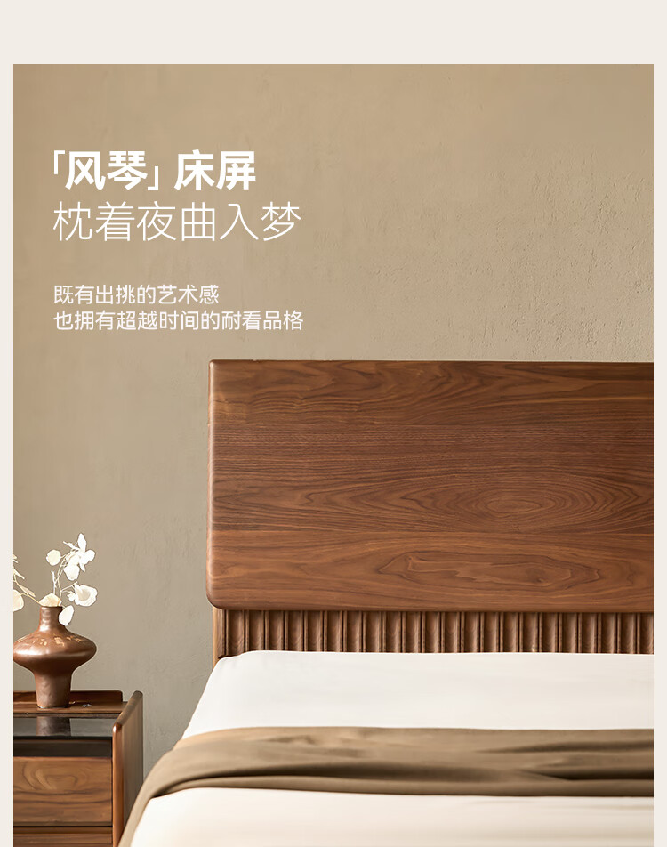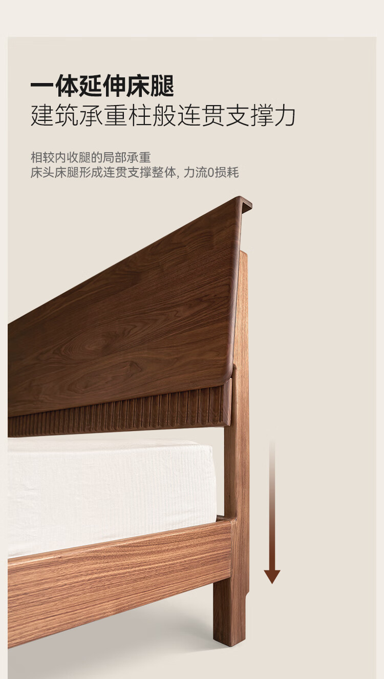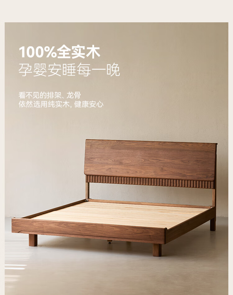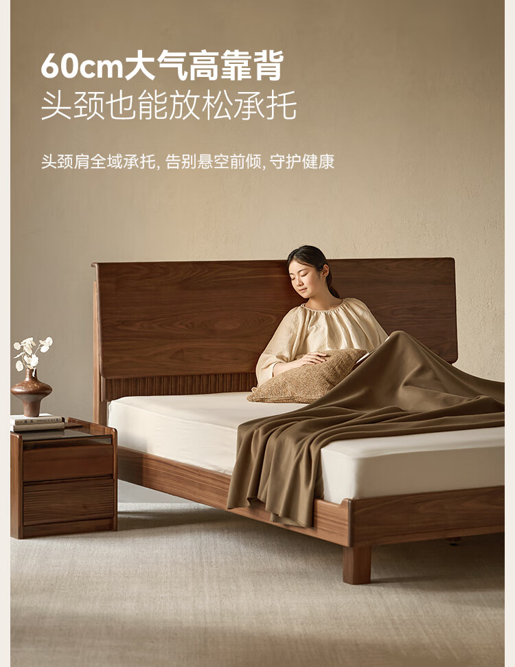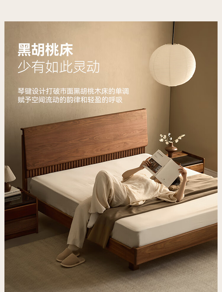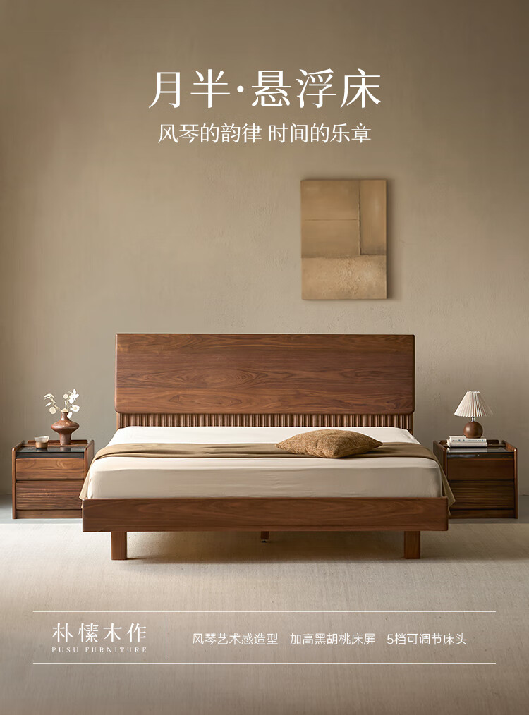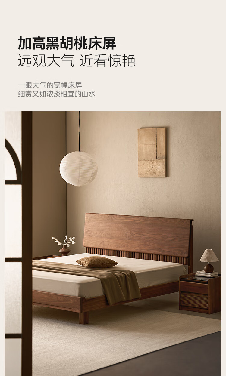 Pusu wood solid wood bed North American black walnut high back Nordic master bedroom double suspended bed 1800*2000mm丨Mid-January