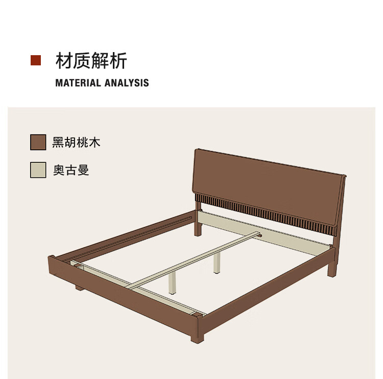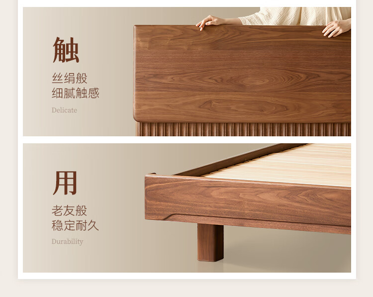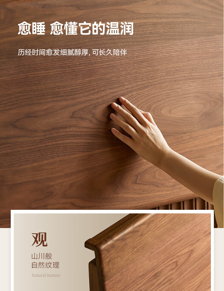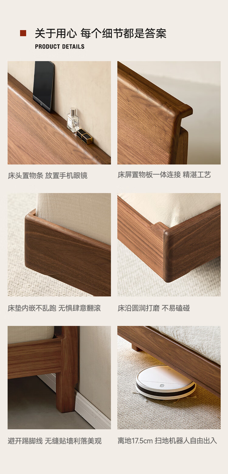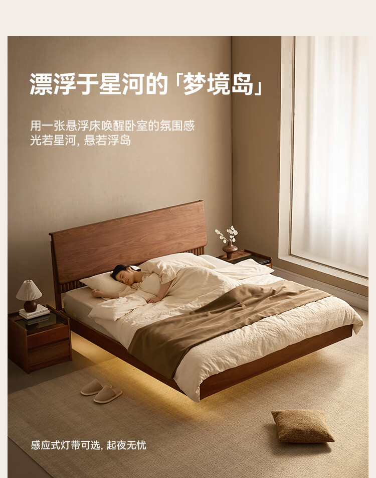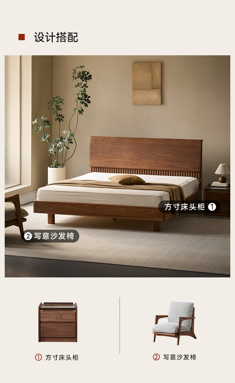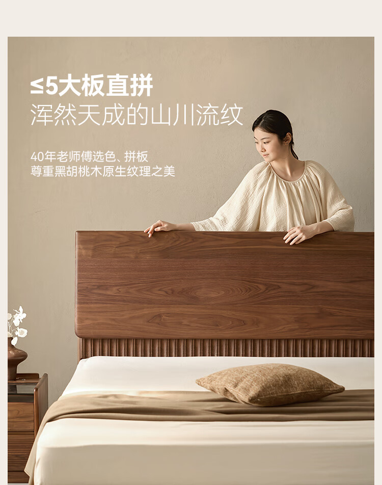 Pusu wood solid wood bed North American black walnut high back Nordic master bedroom double suspended bed 1800*2000mm丨Mid-January