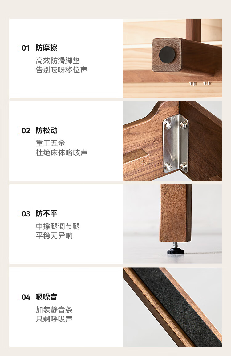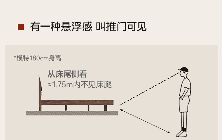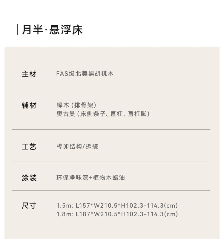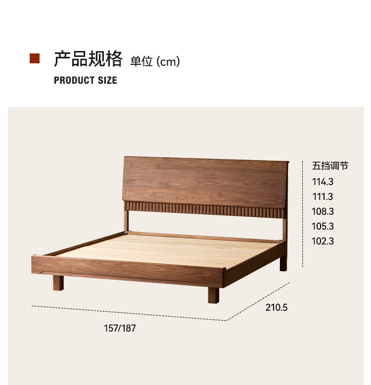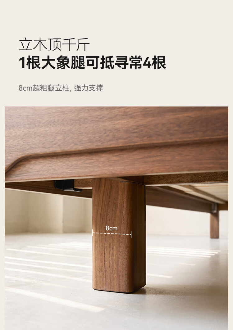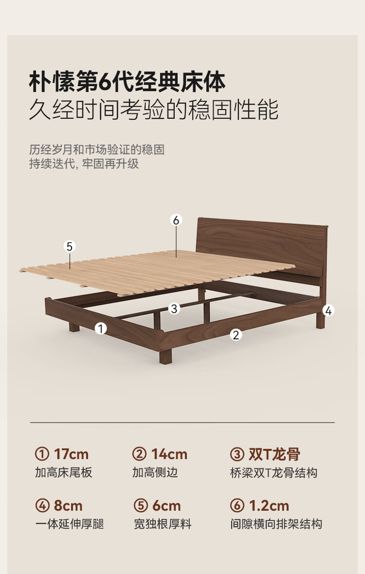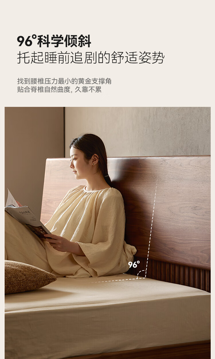 Pusu wood solid wood bed North American black walnut high back Nordic master bedroom double suspended bed 1800*2000mm丨Mid-January