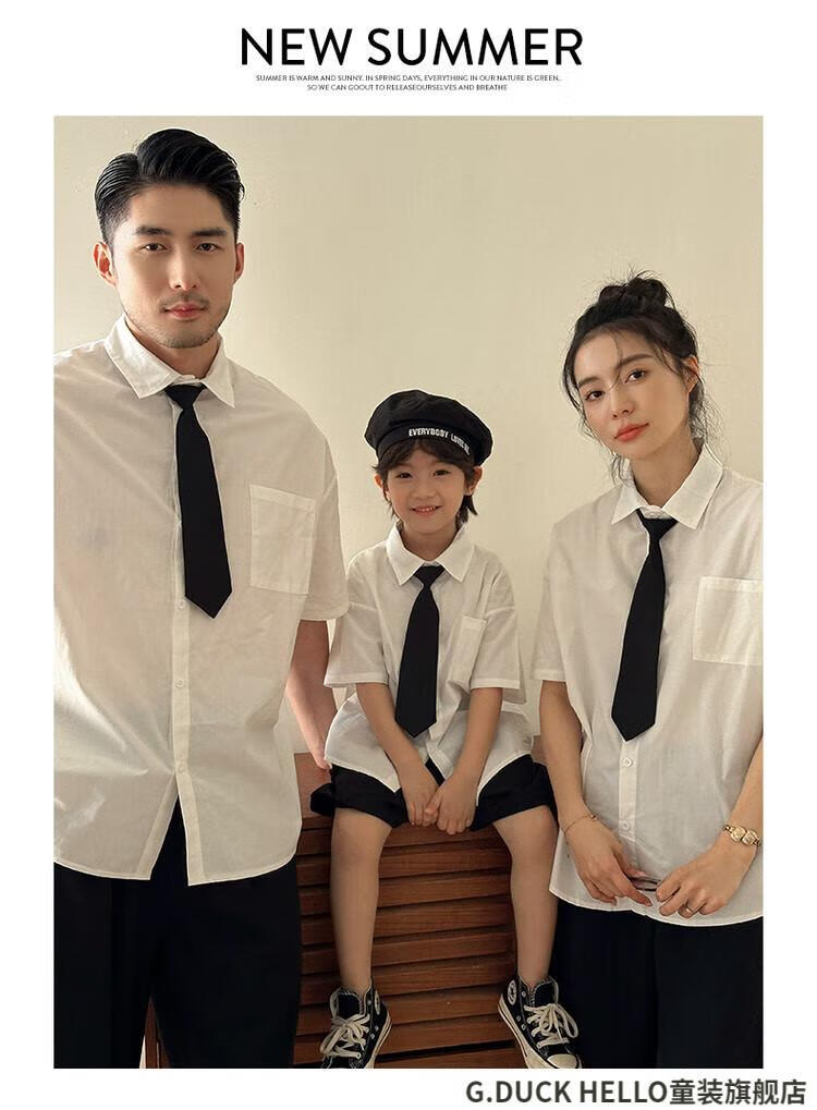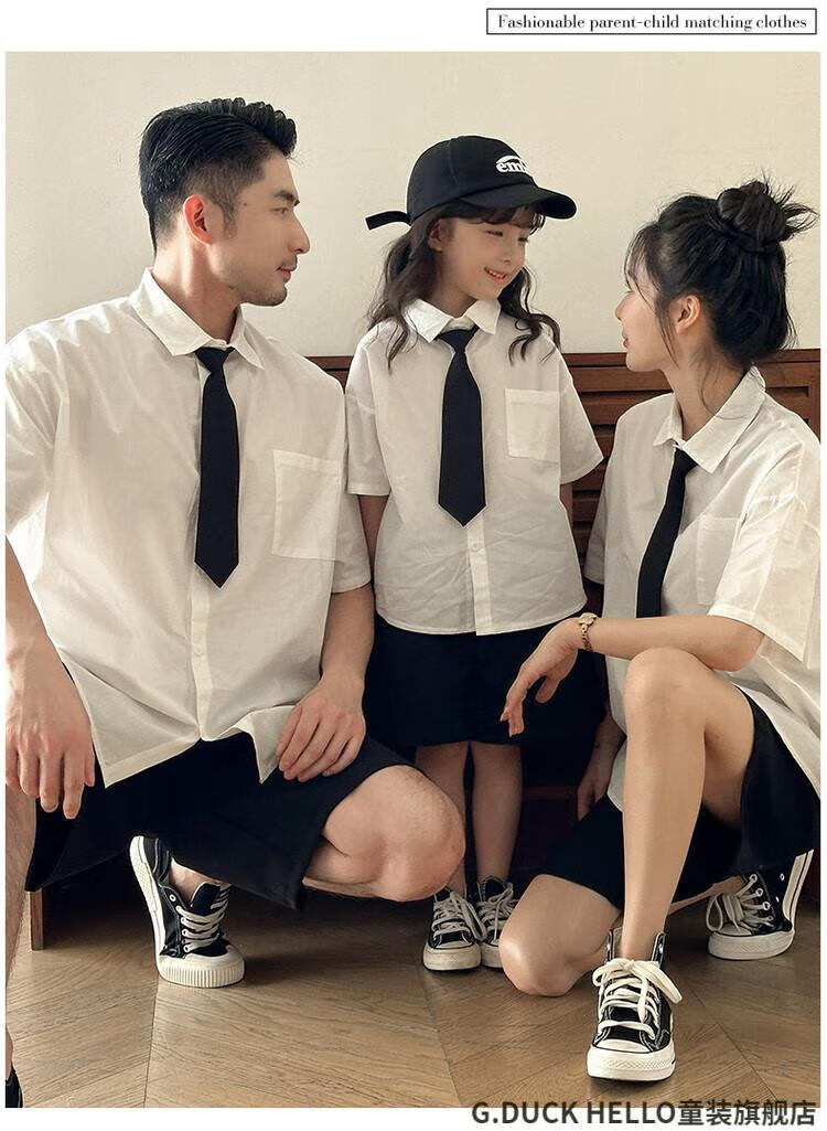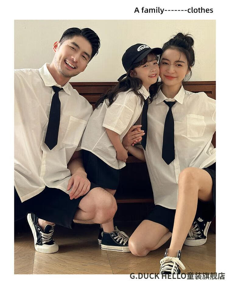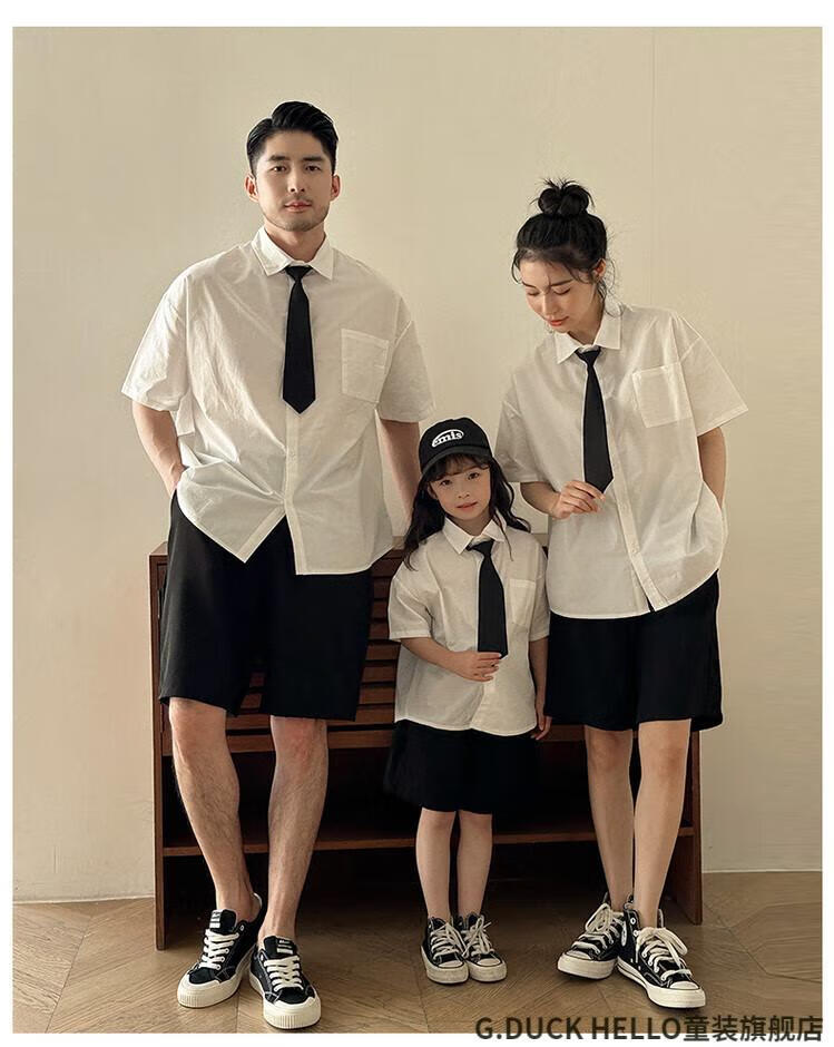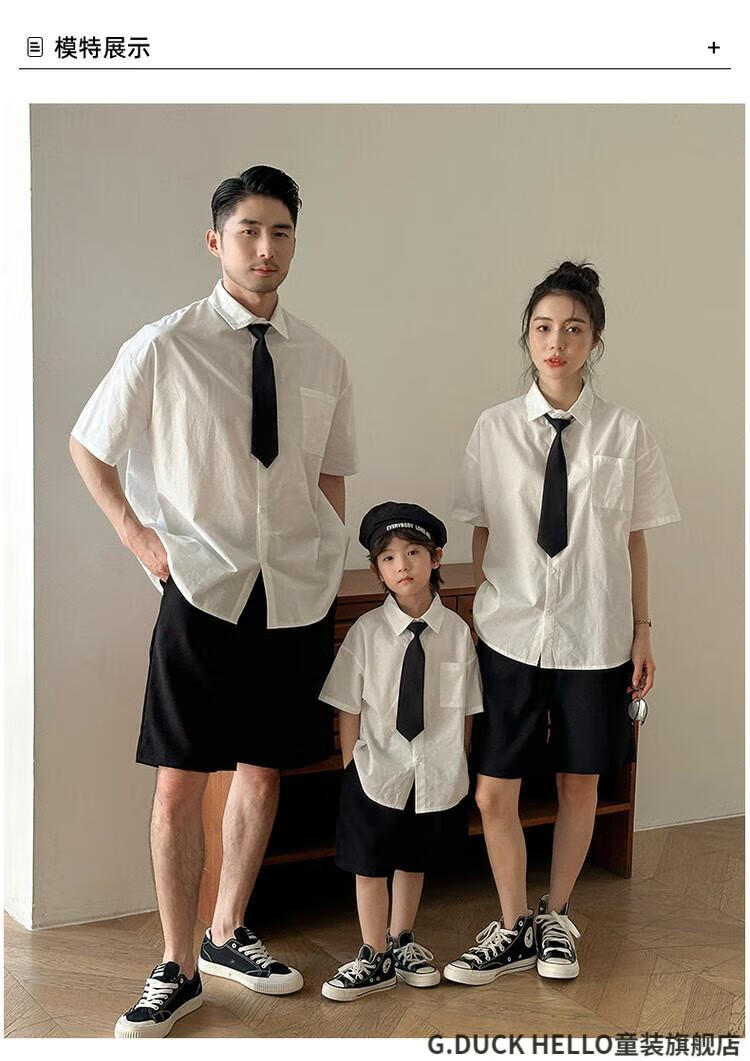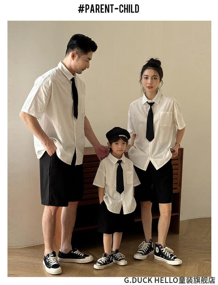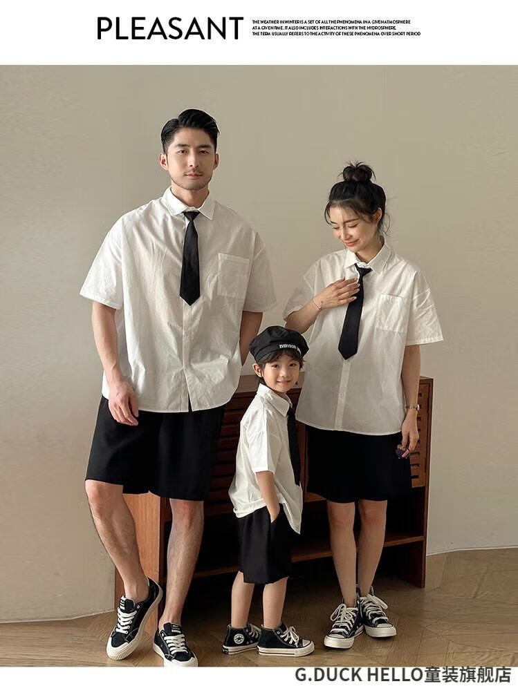 G.duck little yellow duck parent-child clothing for a family of three or four, family clothing, summer clothing, family clothing, mother and daughter clothing, tie, shirt and pants suit, tie and white shirt 180 XL