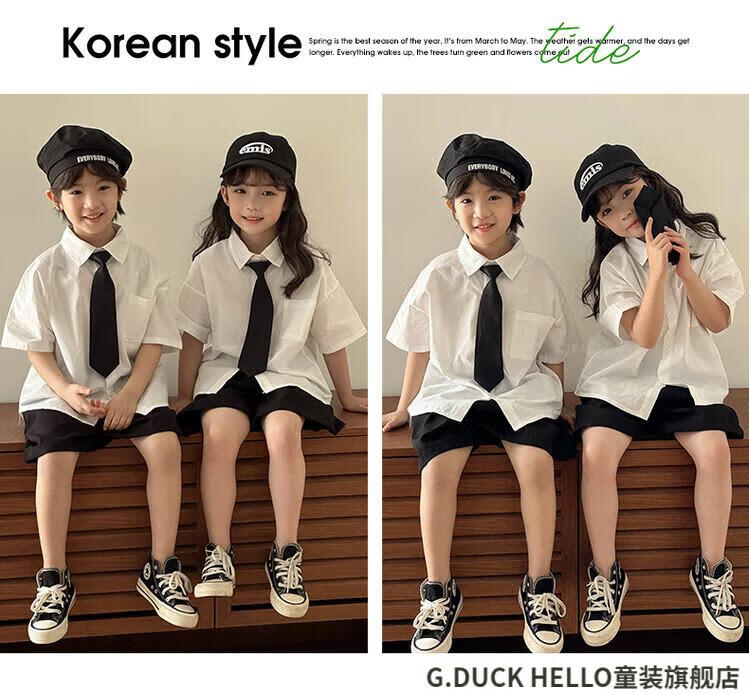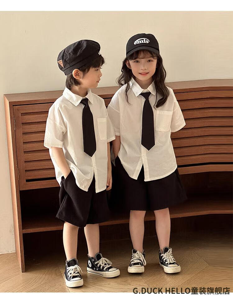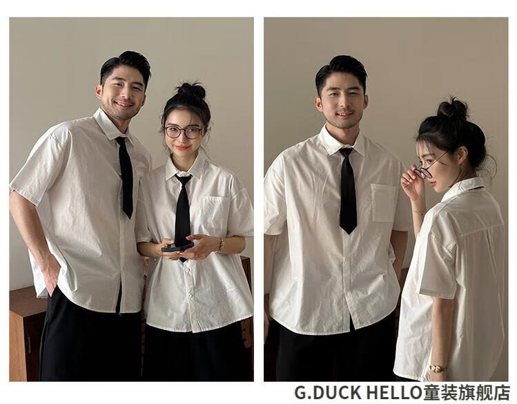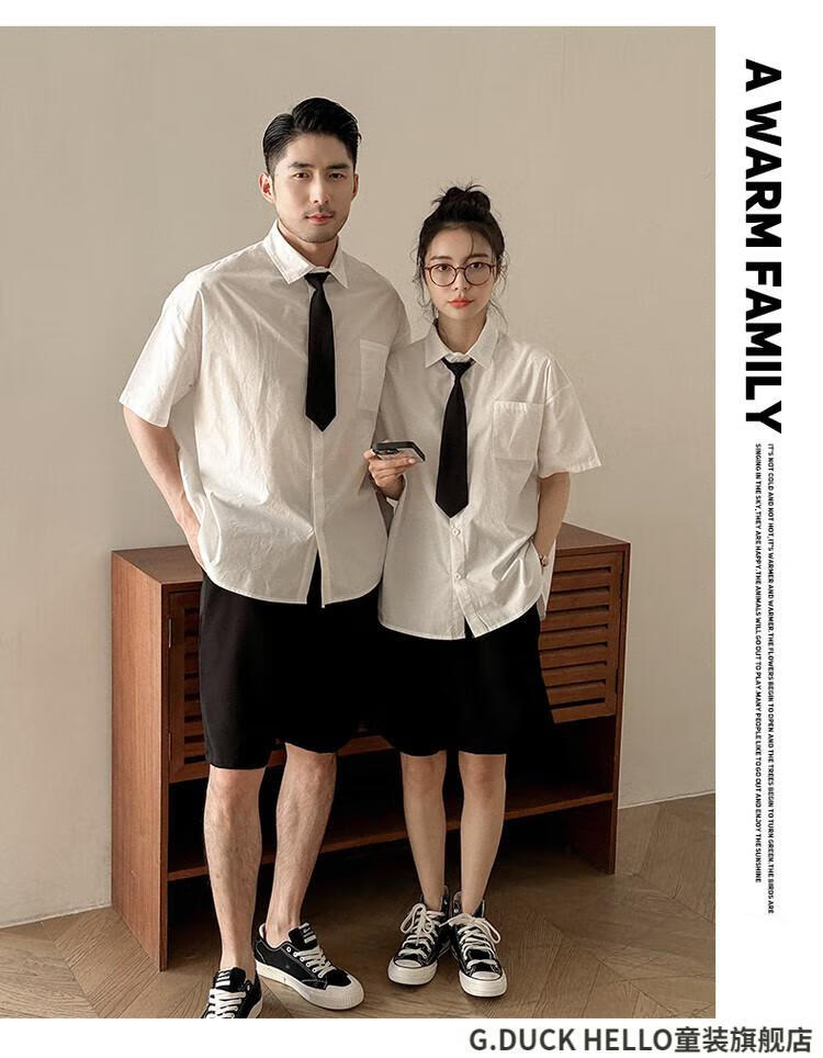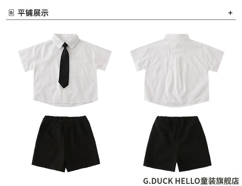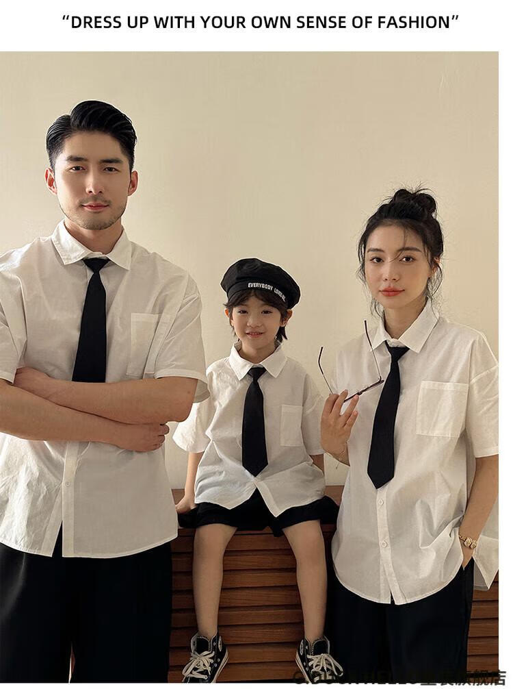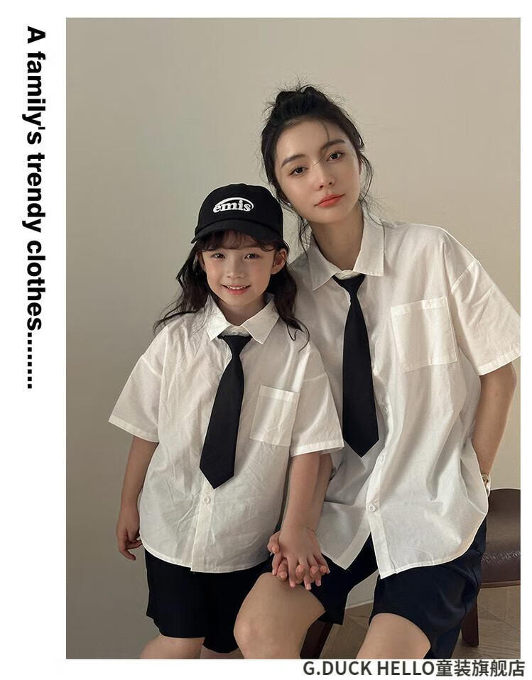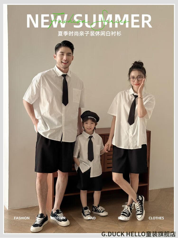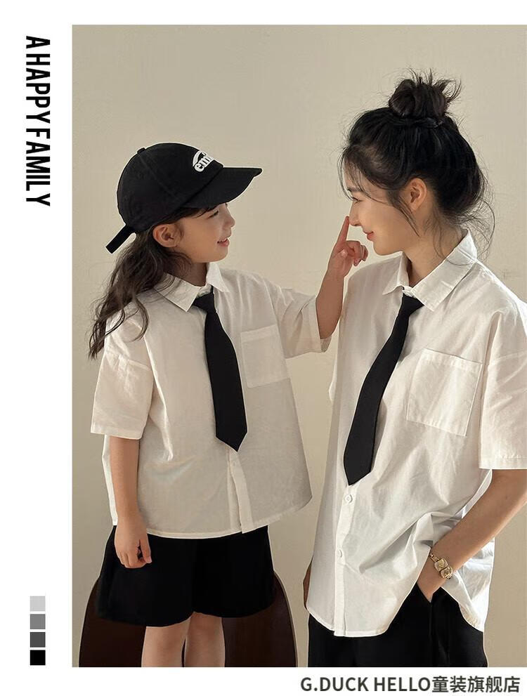 G.duck little yellow duck parent-child clothing for a family of three or four, family clothing, summer clothing, family clothing, mother and daughter clothing, tie, shirt and pants suit, tie and white shirt 180 XL