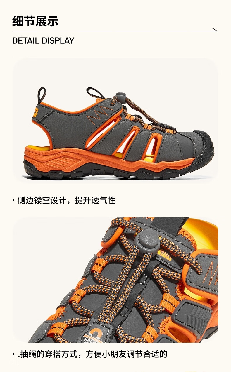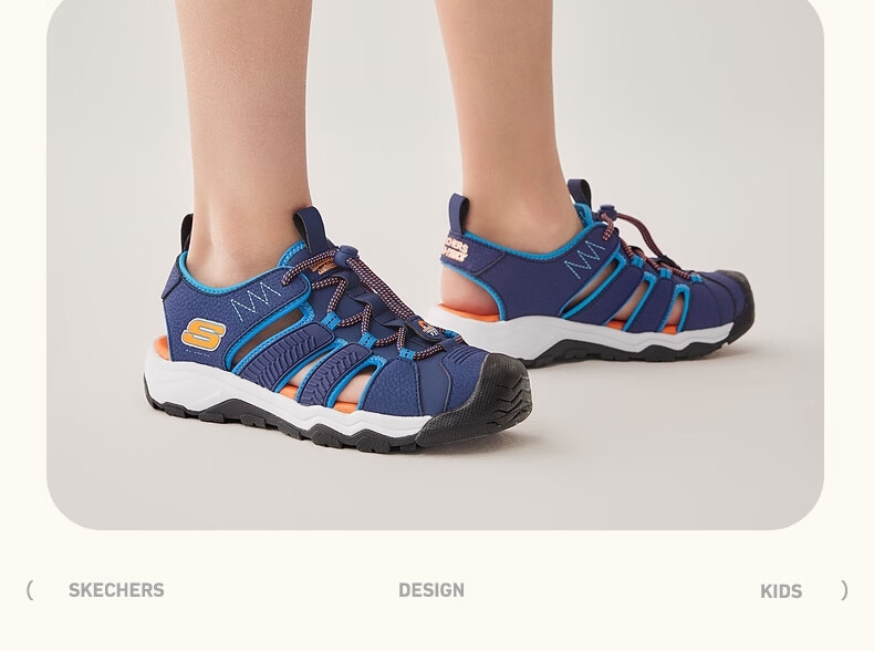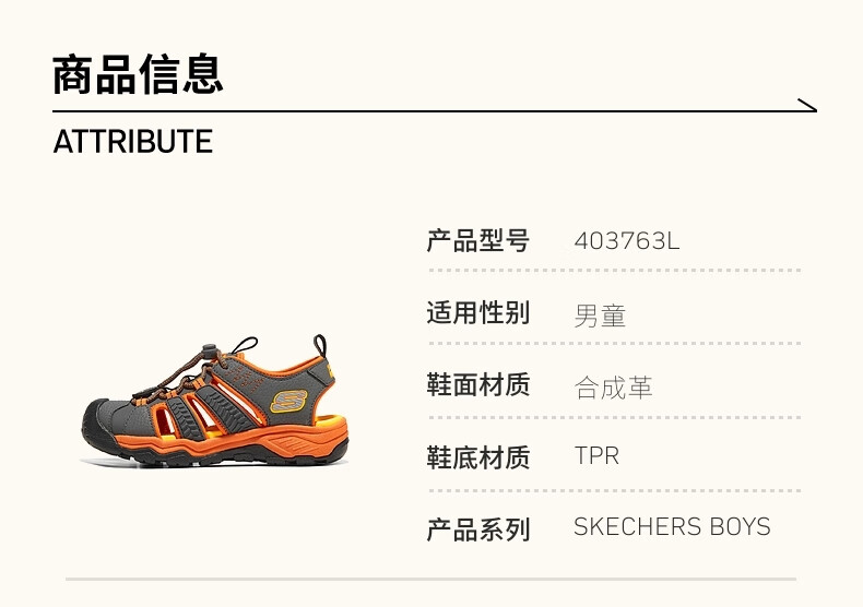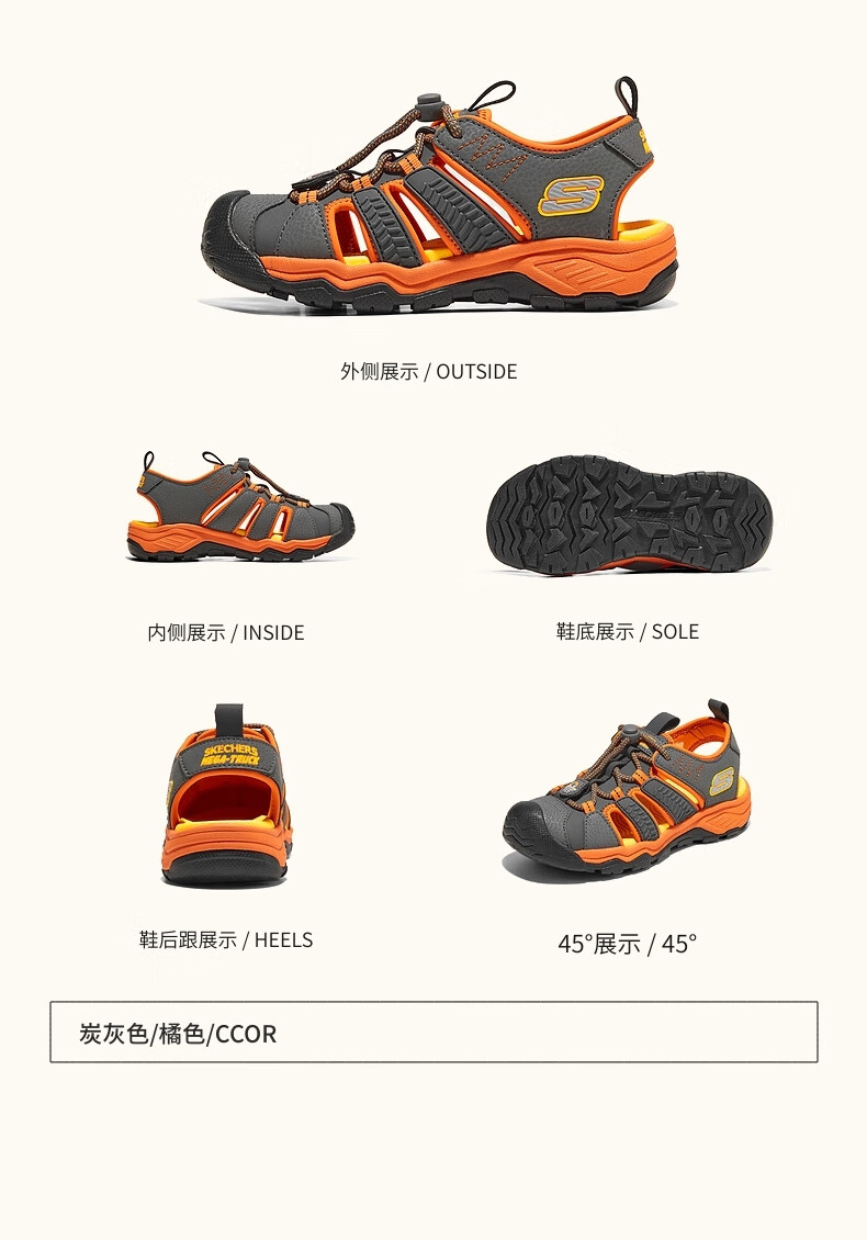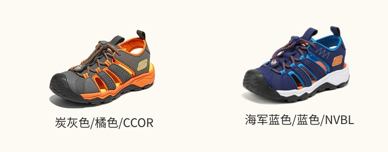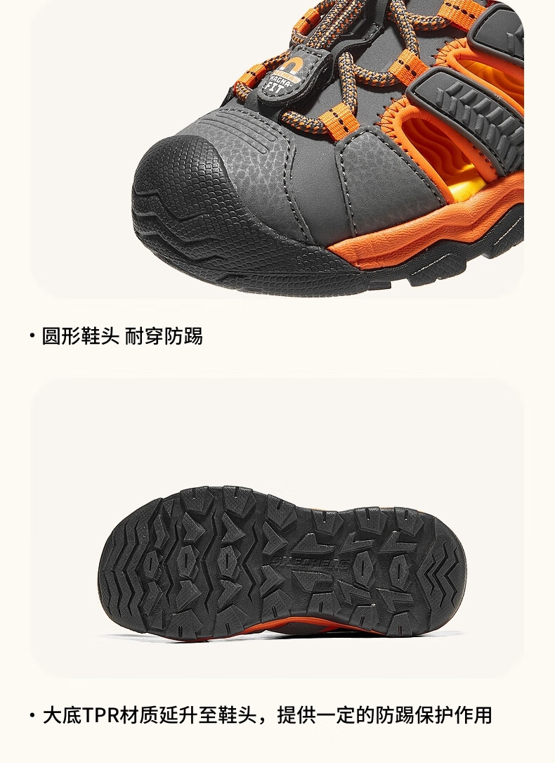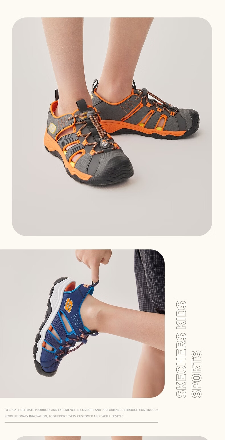 Skechers boys' drawstring toe-cap sandals 403763L charcoal gray/orange/CCOR 30
