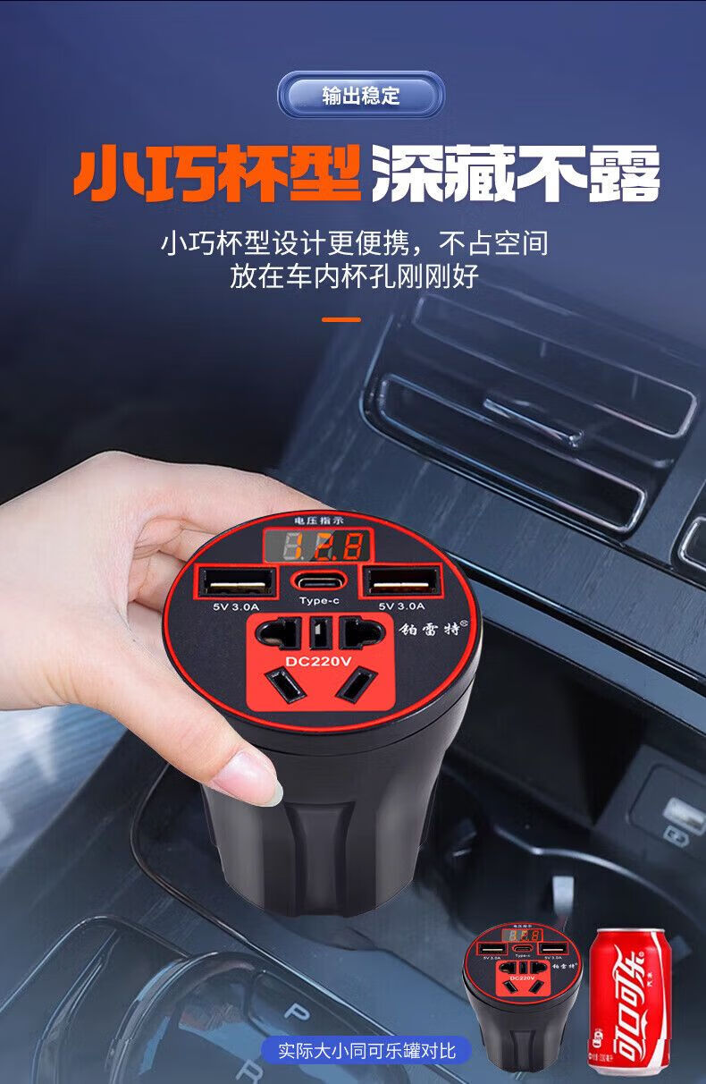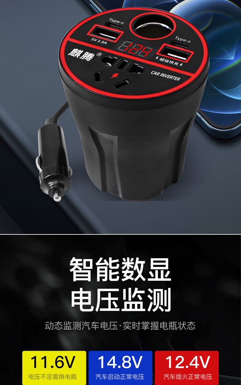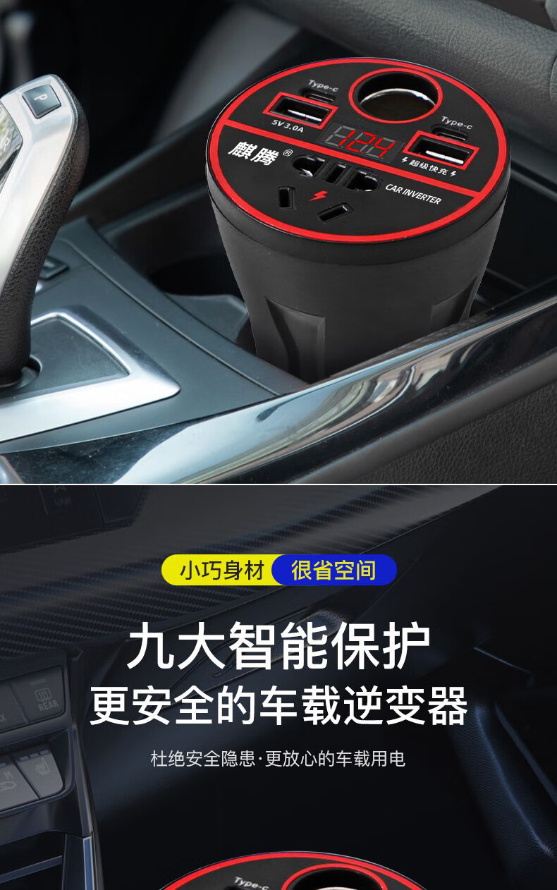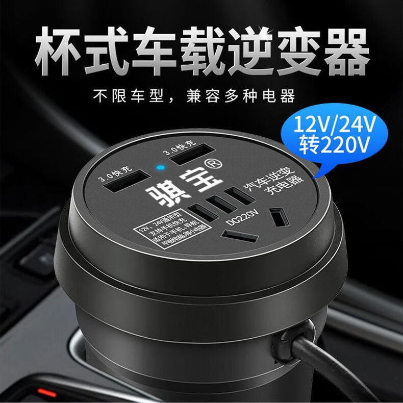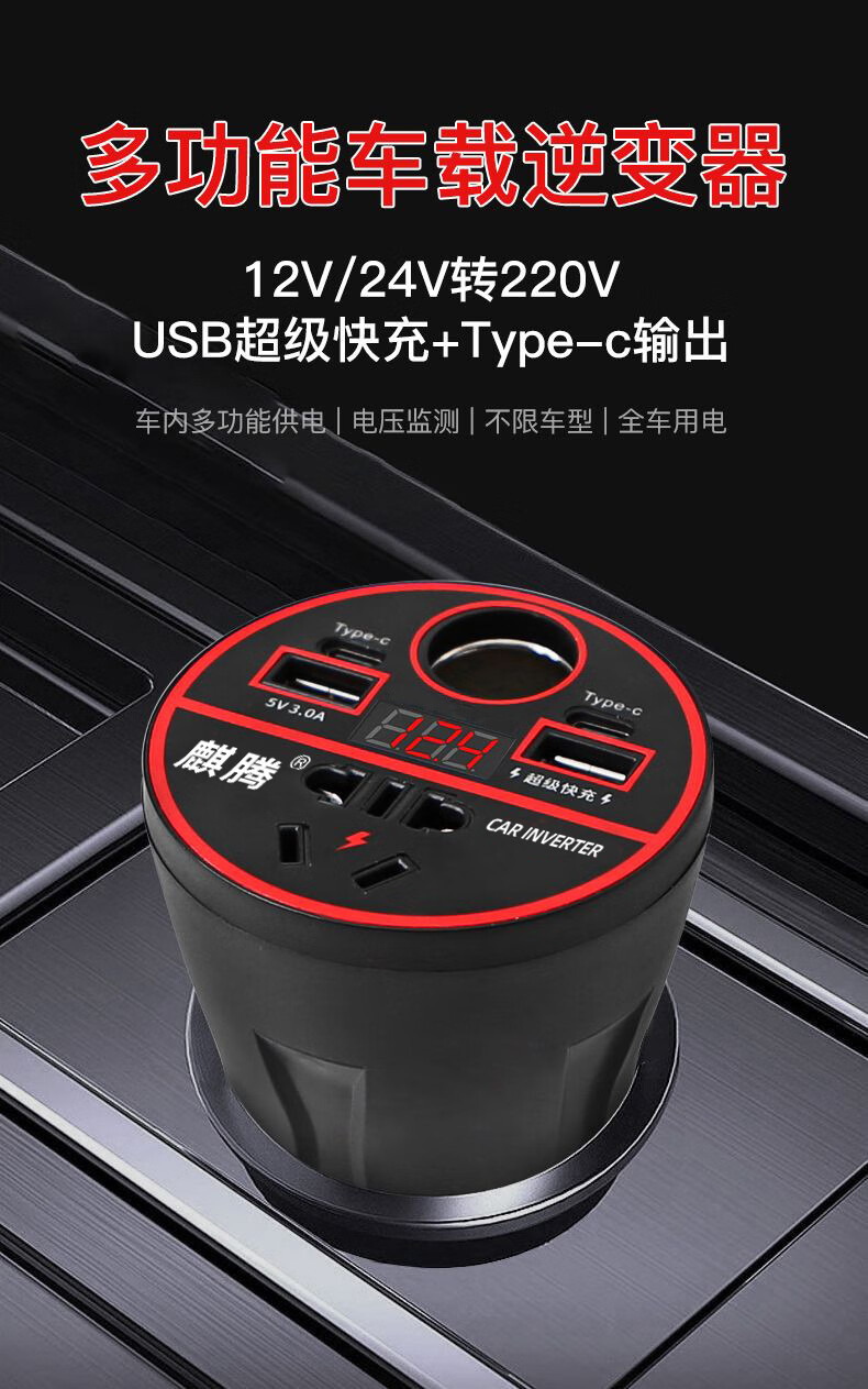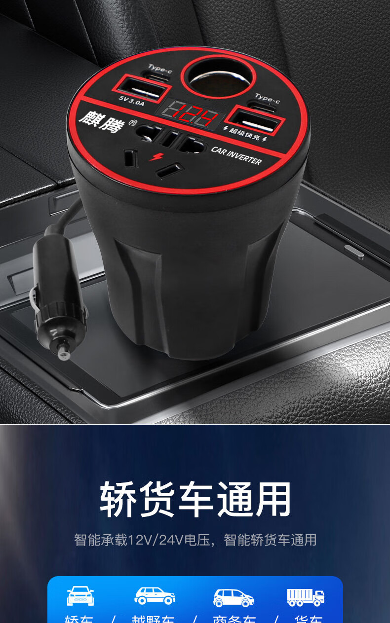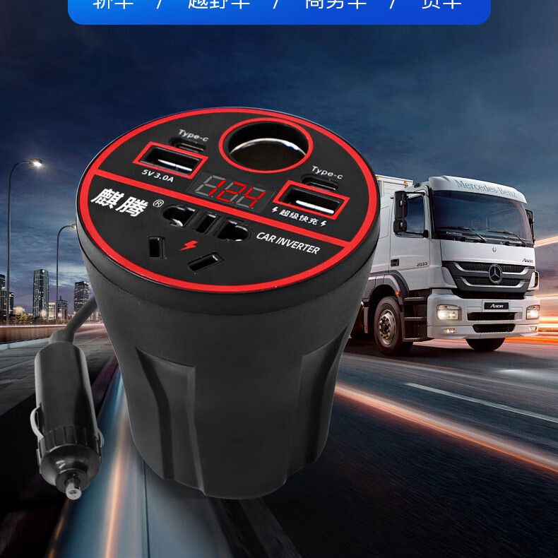 Car-mounted inverter for cars and trucks 12v/24v to 220v fast charging cup type design with digital display cigarette lighter socket Luxurious cup type - with digital display flash charging + fast charging
