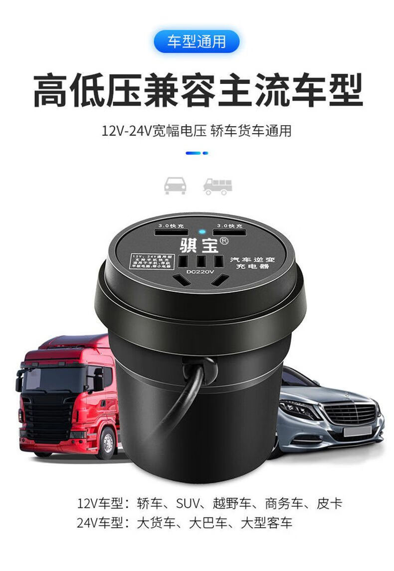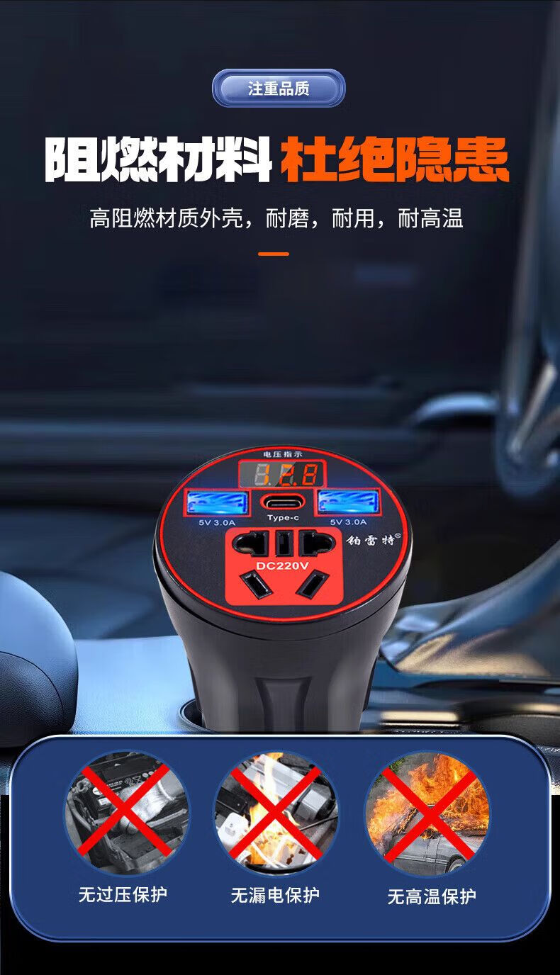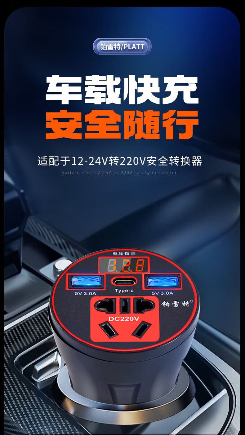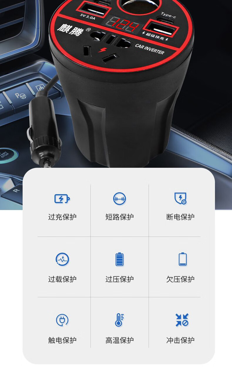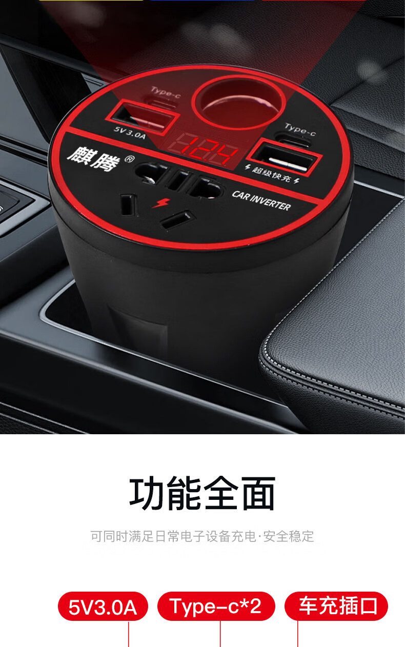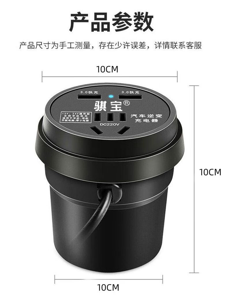 Car-mounted inverter for cars and trucks 12v/24v to 220v fast charging cup type design with digital display cigarette lighter socket Luxurious cup type - with digital display flash charging + fast charging