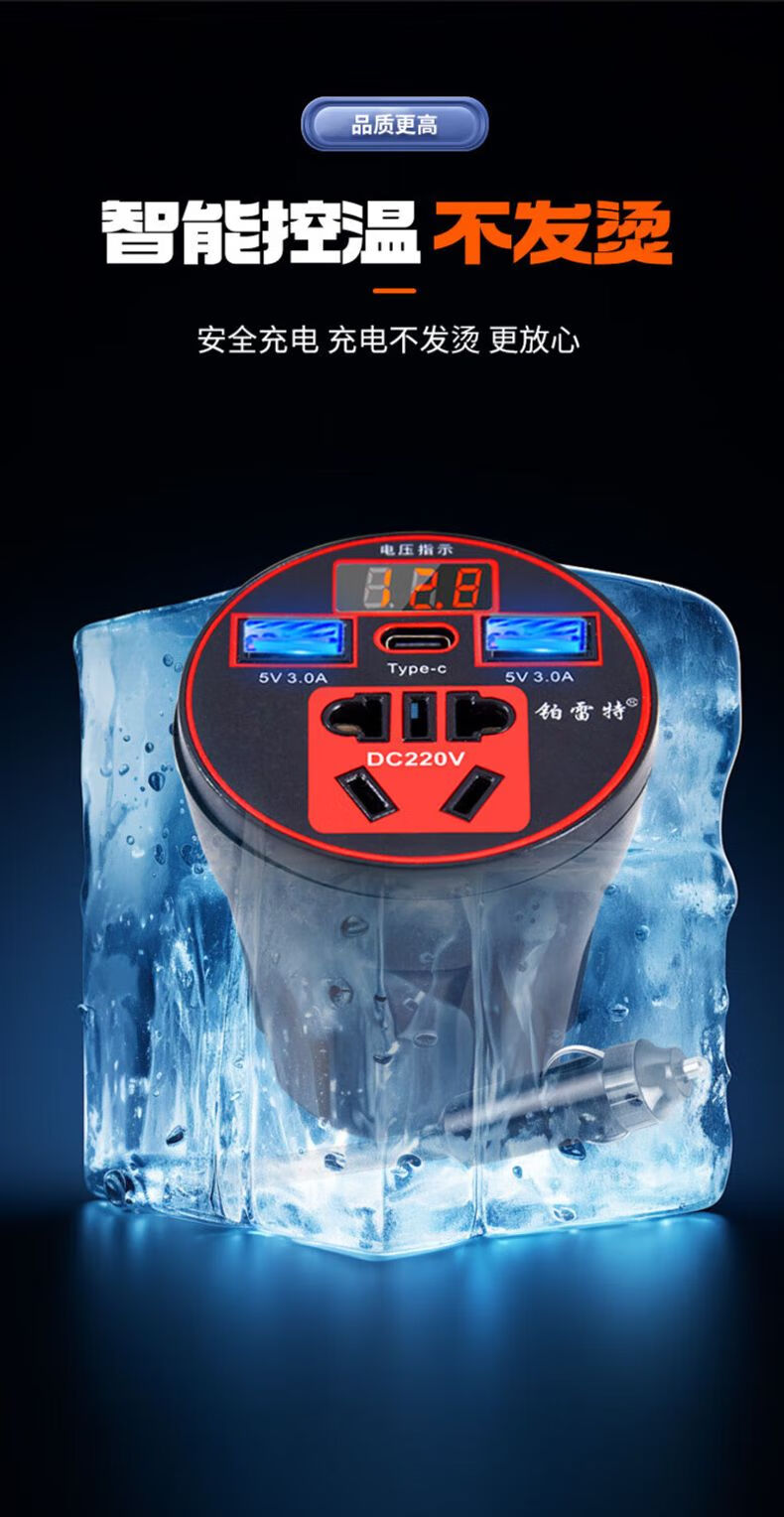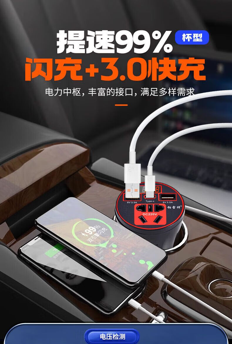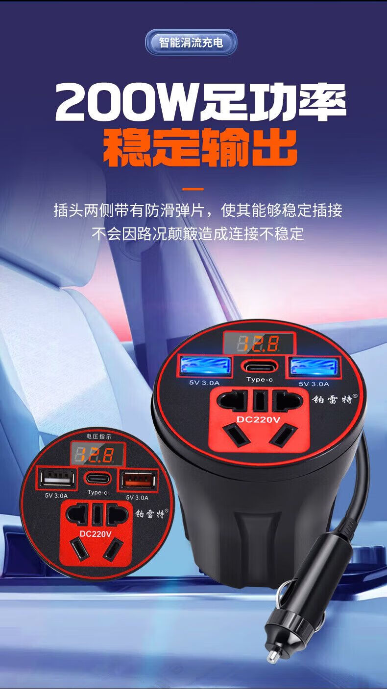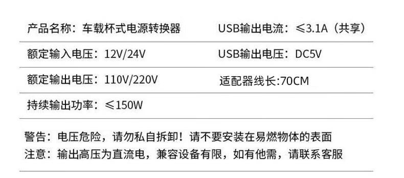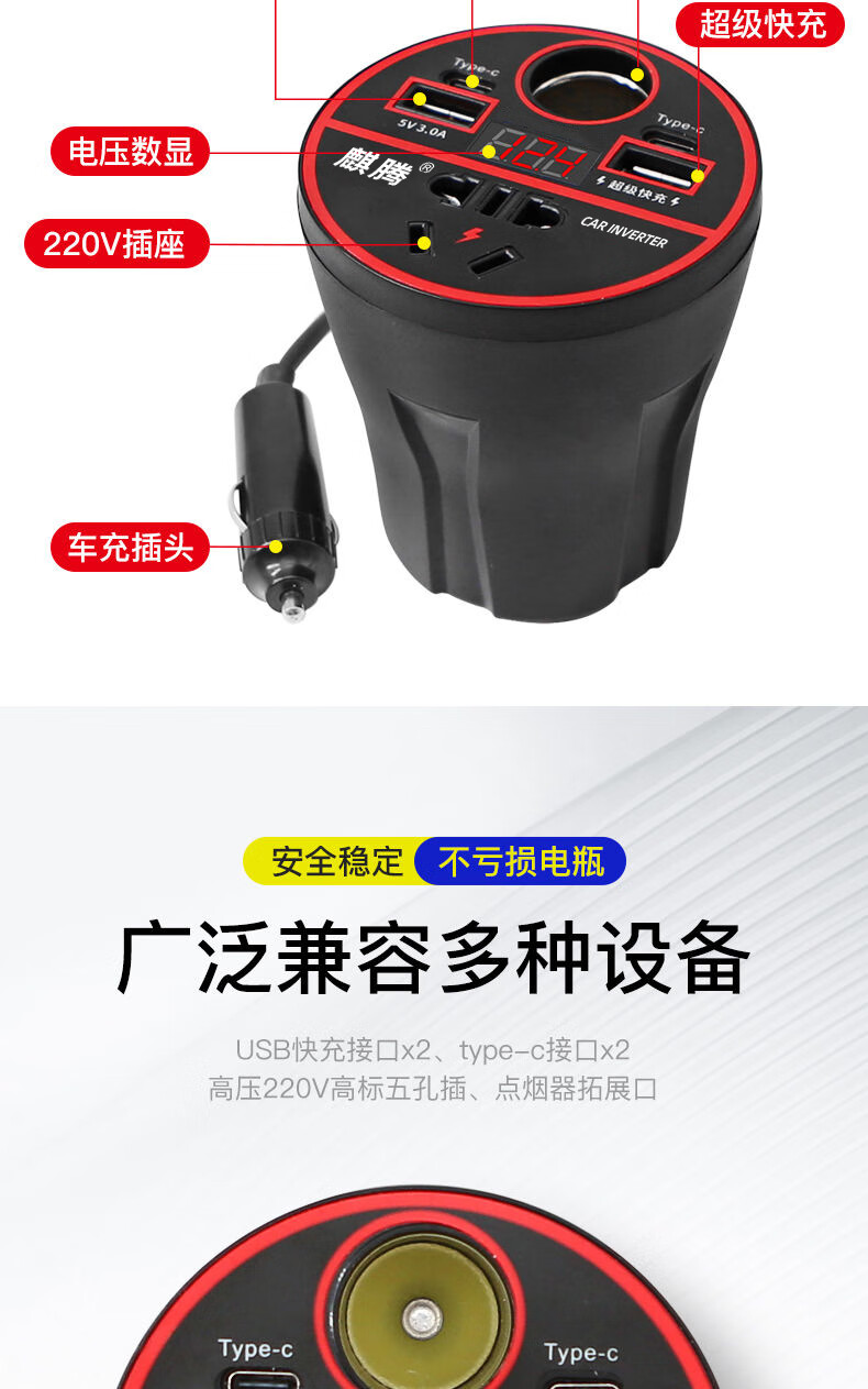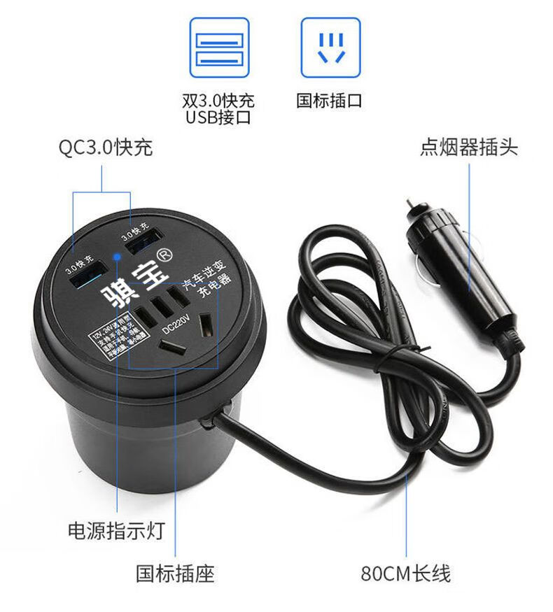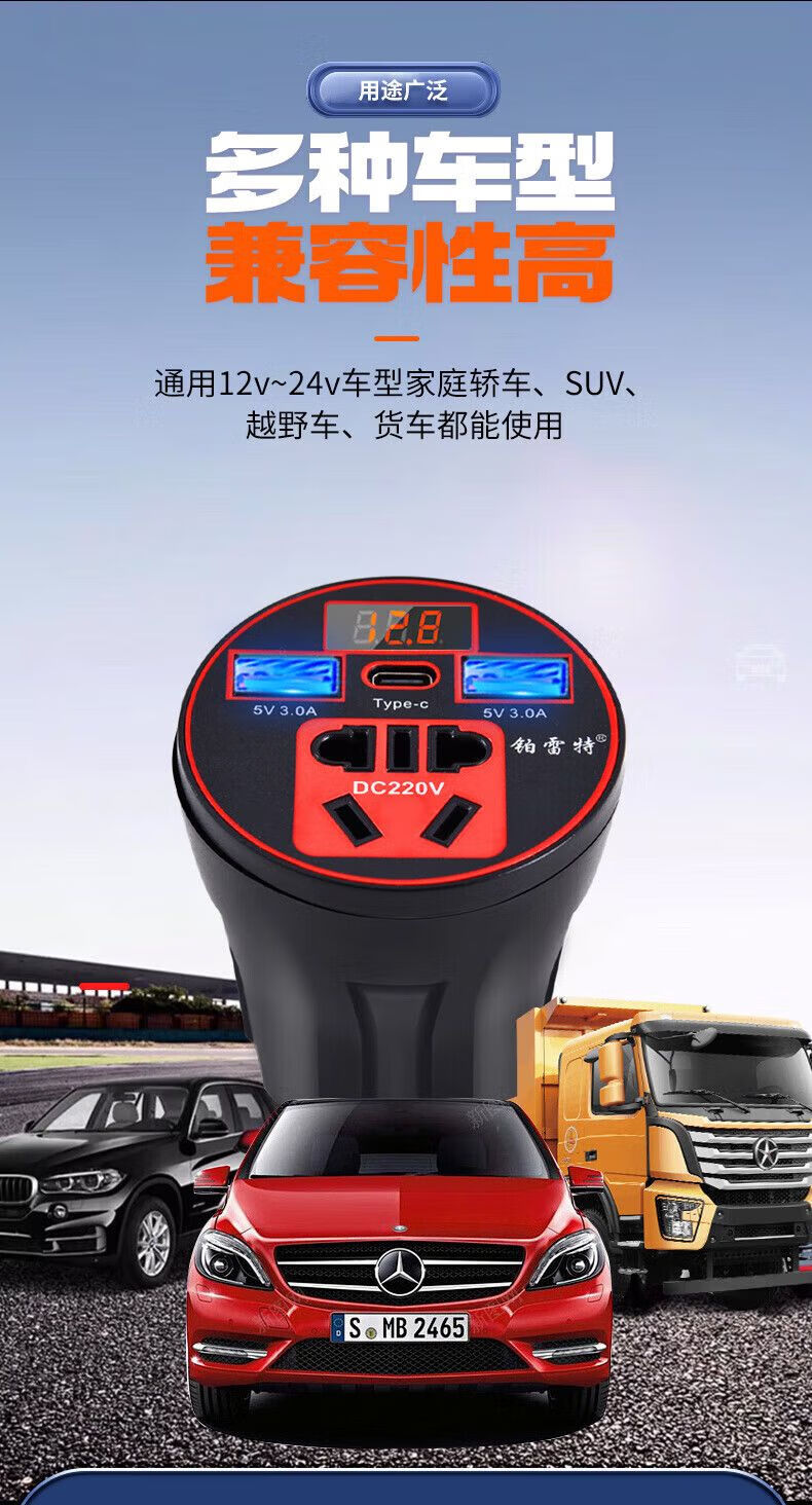 Car-mounted inverter for cars and trucks 12v/24v to 220v fast charging cup type design with digital display cigarette lighter socket Luxurious cup type - with digital display flash charging + fast charging
