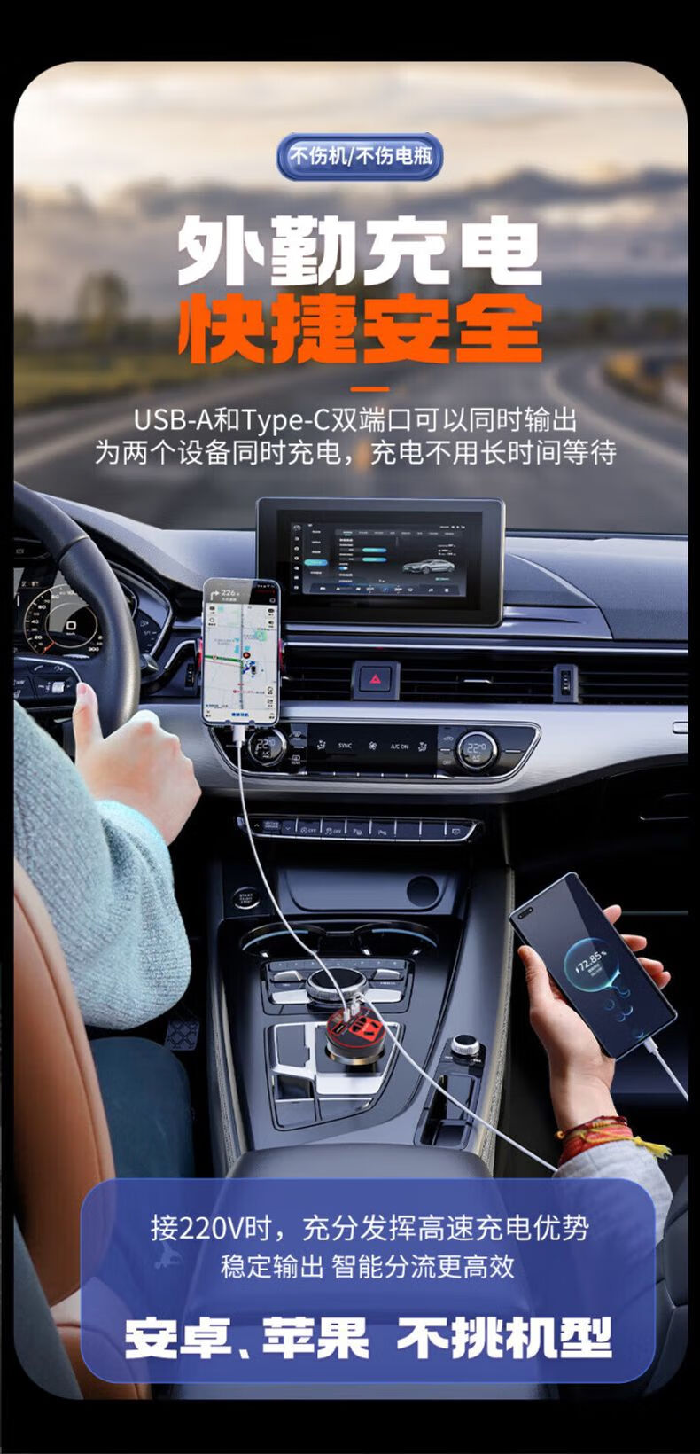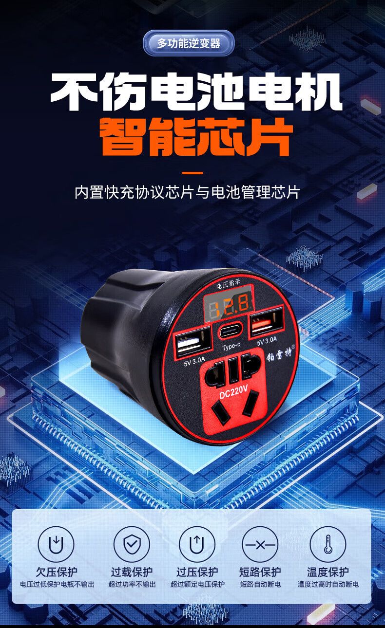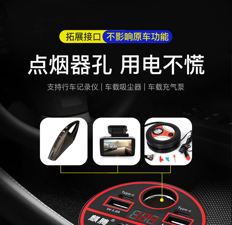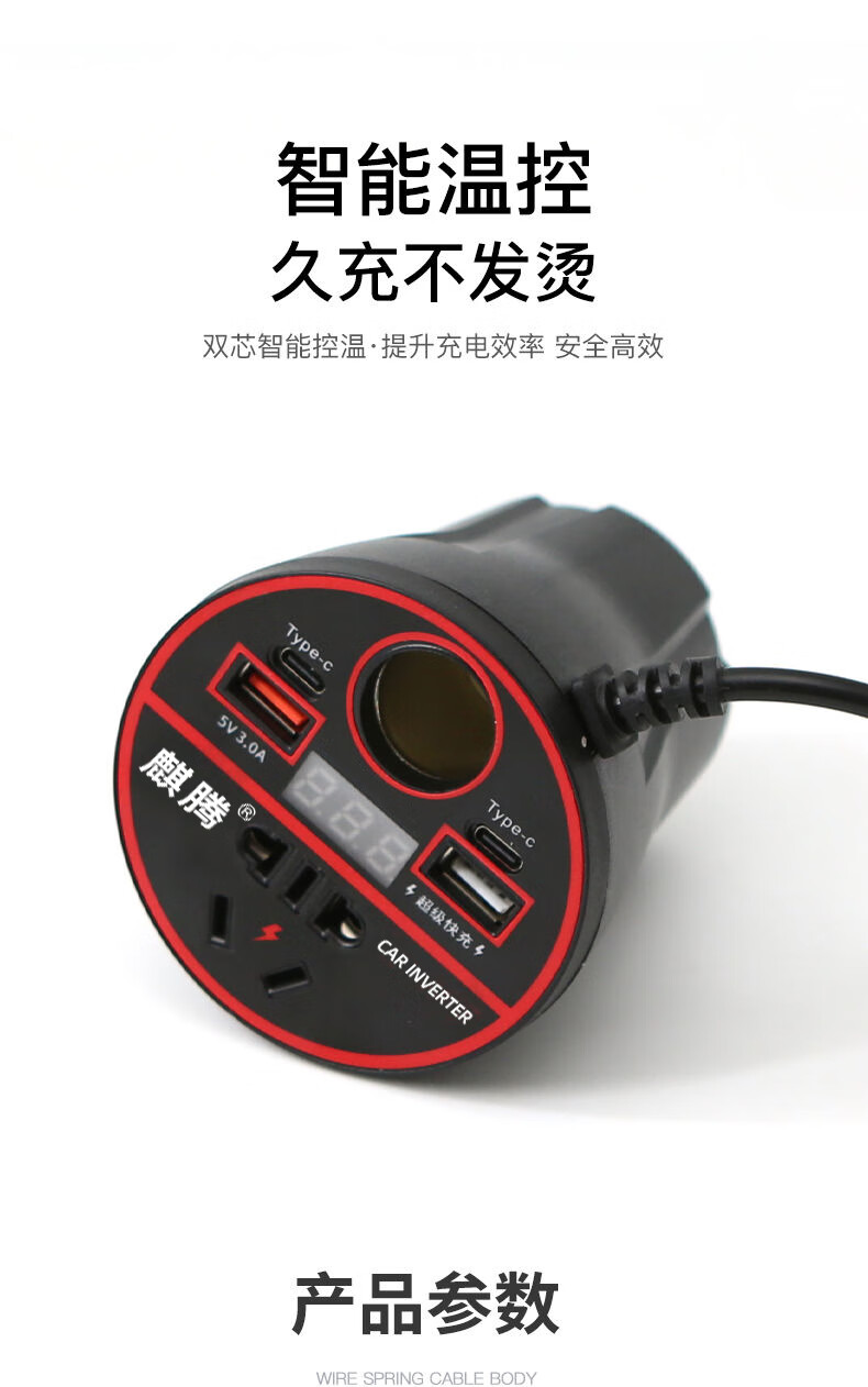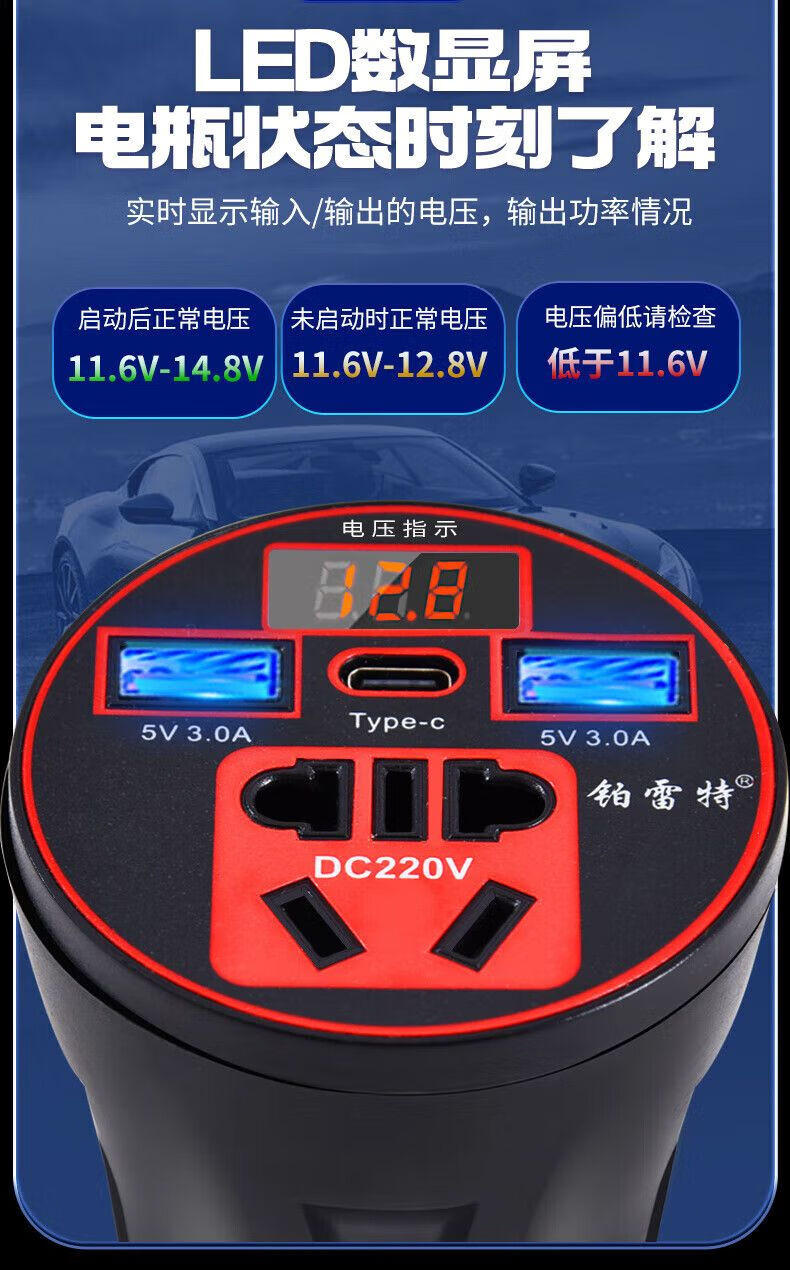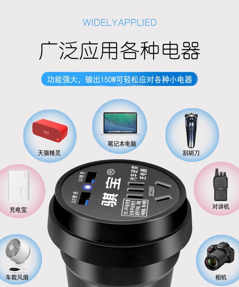 Car-mounted inverter for cars and trucks 12v/24v to 220v fast charging cup type design with digital display cigarette lighter socket Luxurious cup type - with digital display flash charging + fast charging