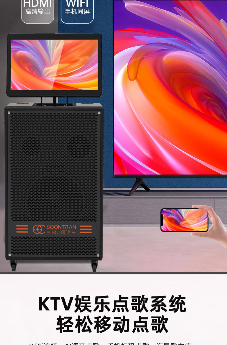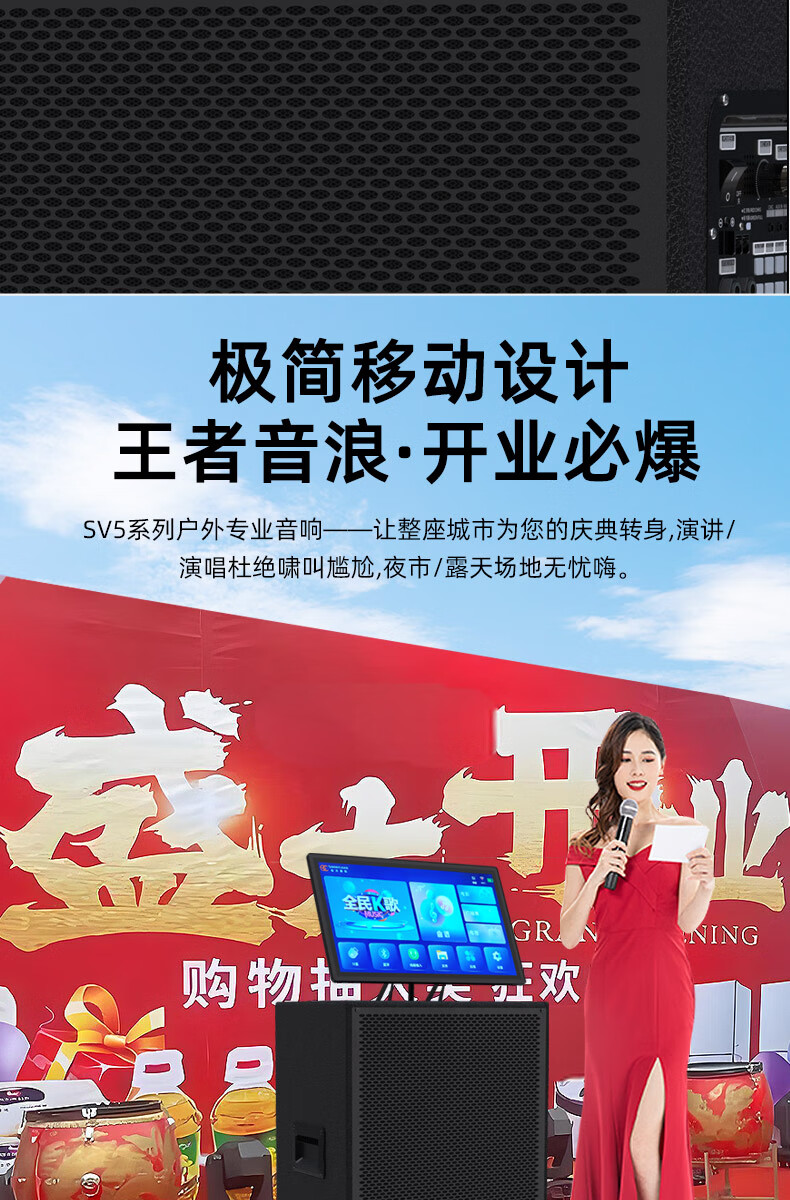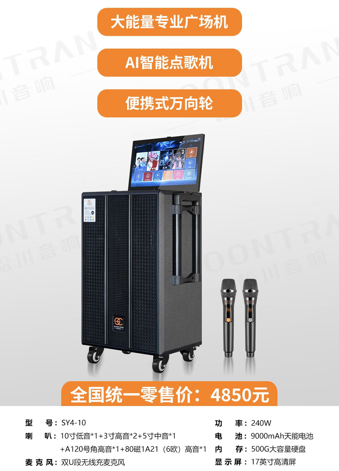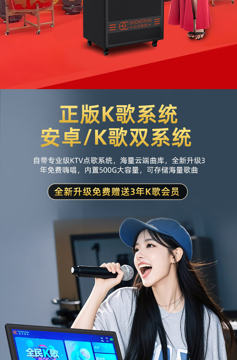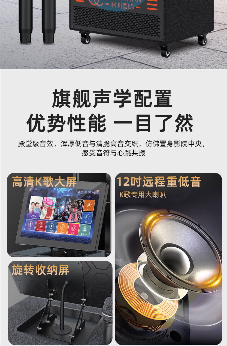 Songchuan International SV5 outdoor mobile trolley karaoke Bluetooth speaker charging square dance mobile stage with wireless microphone 10-inch high power + dual U-segment bel canto microphones two pieces