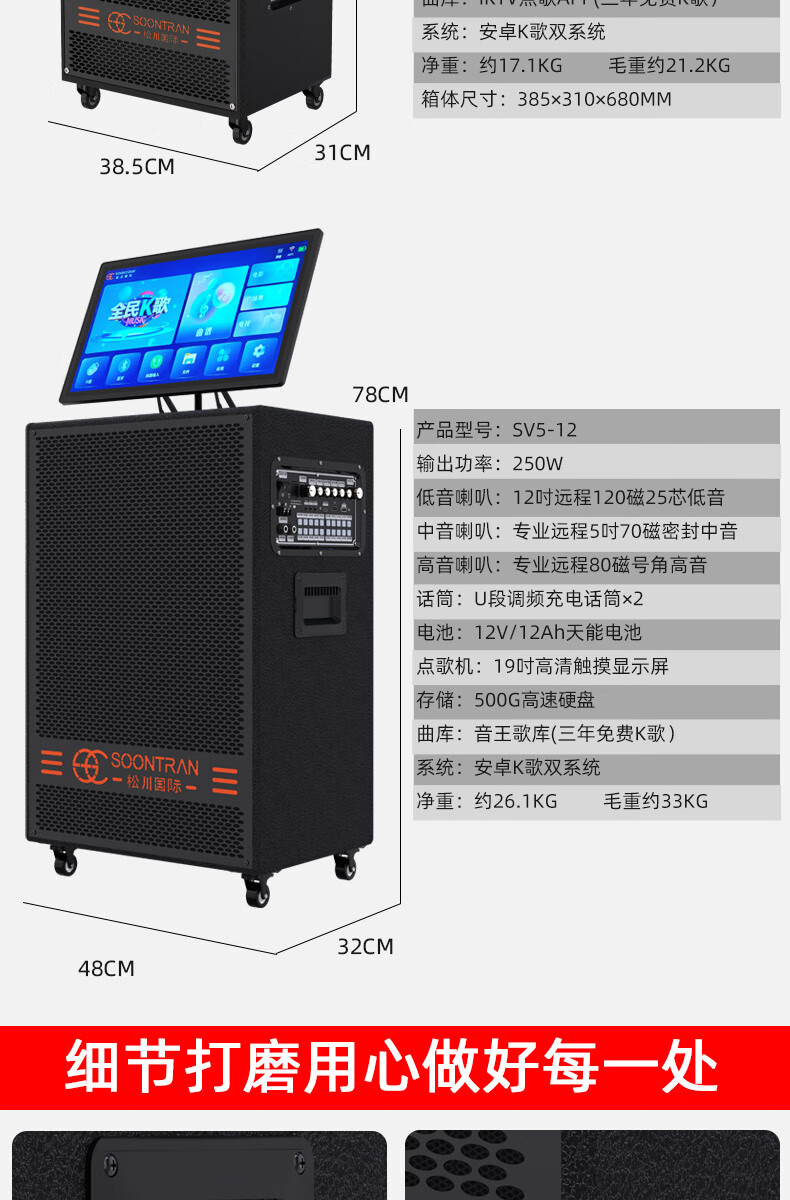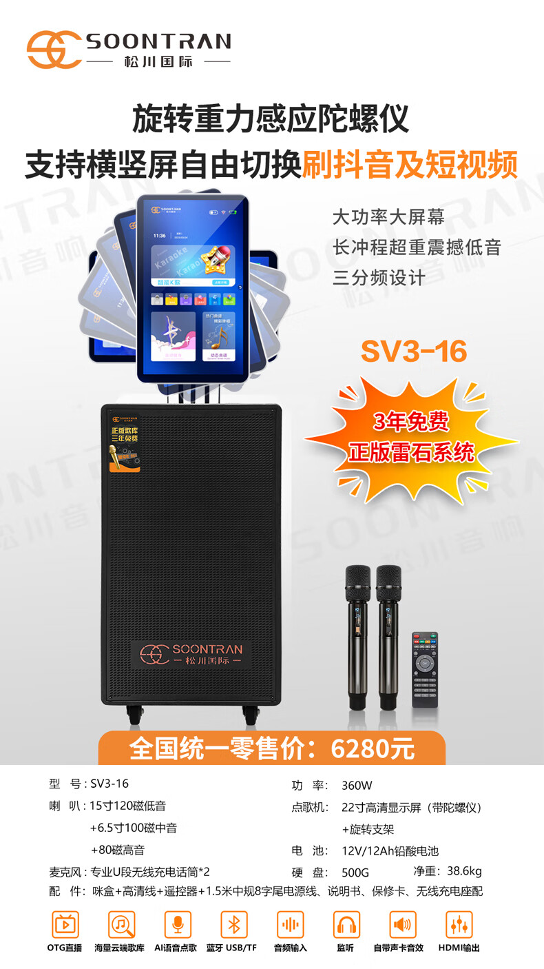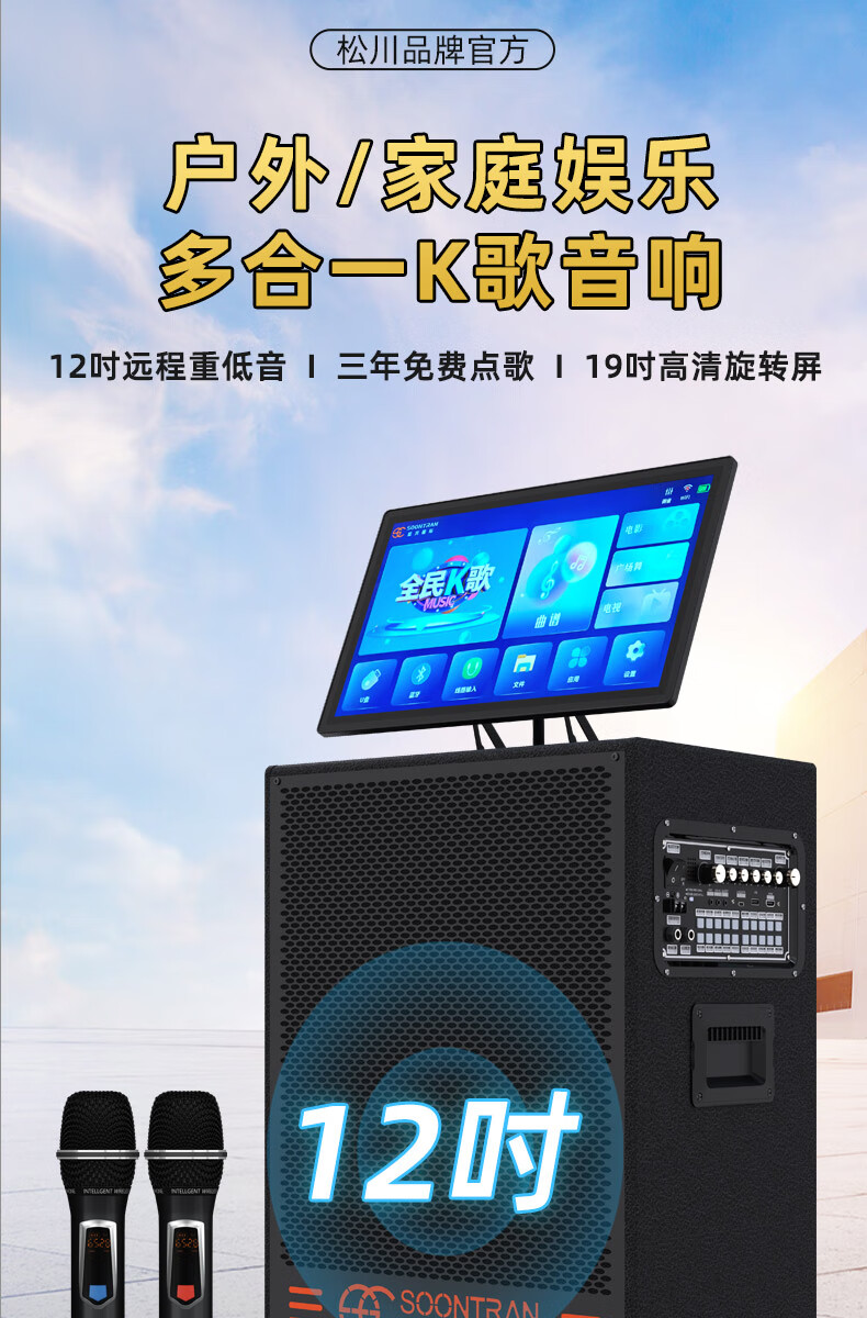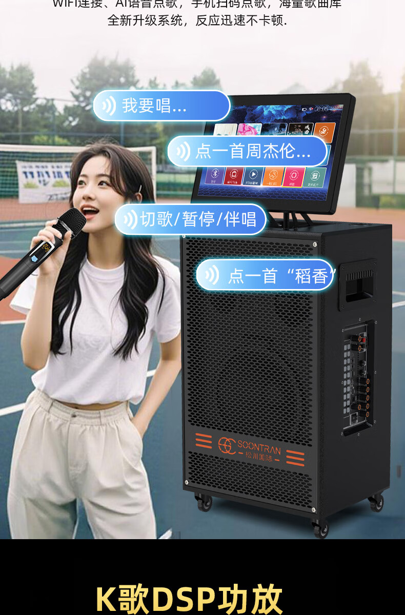 Songchuan International SV5 outdoor mobile trolley karaoke Bluetooth speaker charging square dance mobile stage with wireless microphone 10-inch high power + dual U-segment bel canto microphones two pieces
