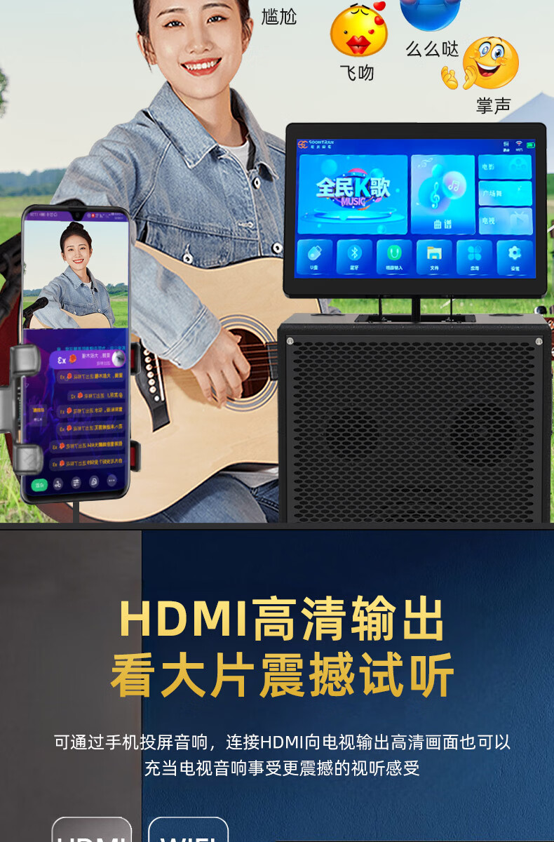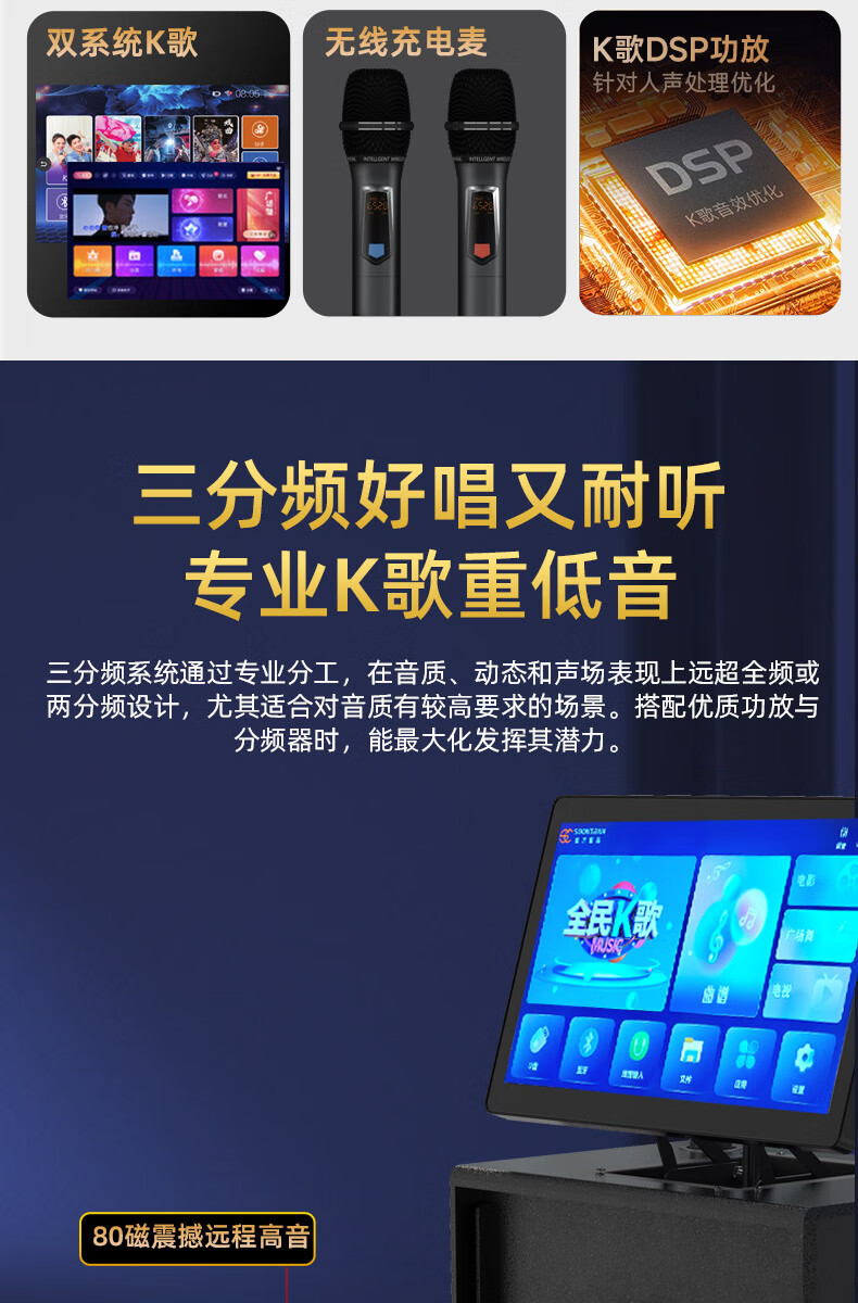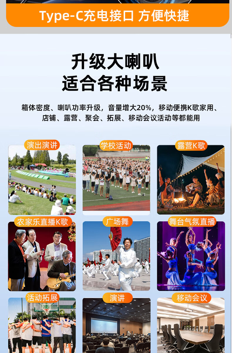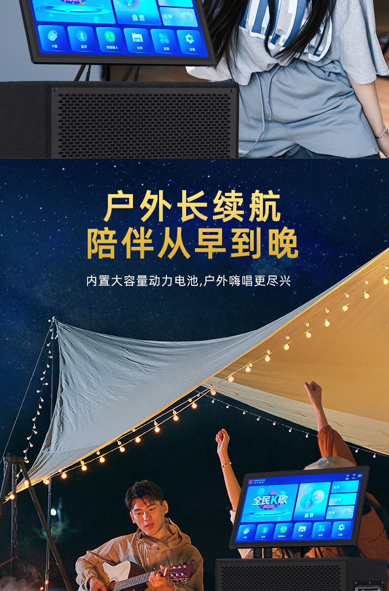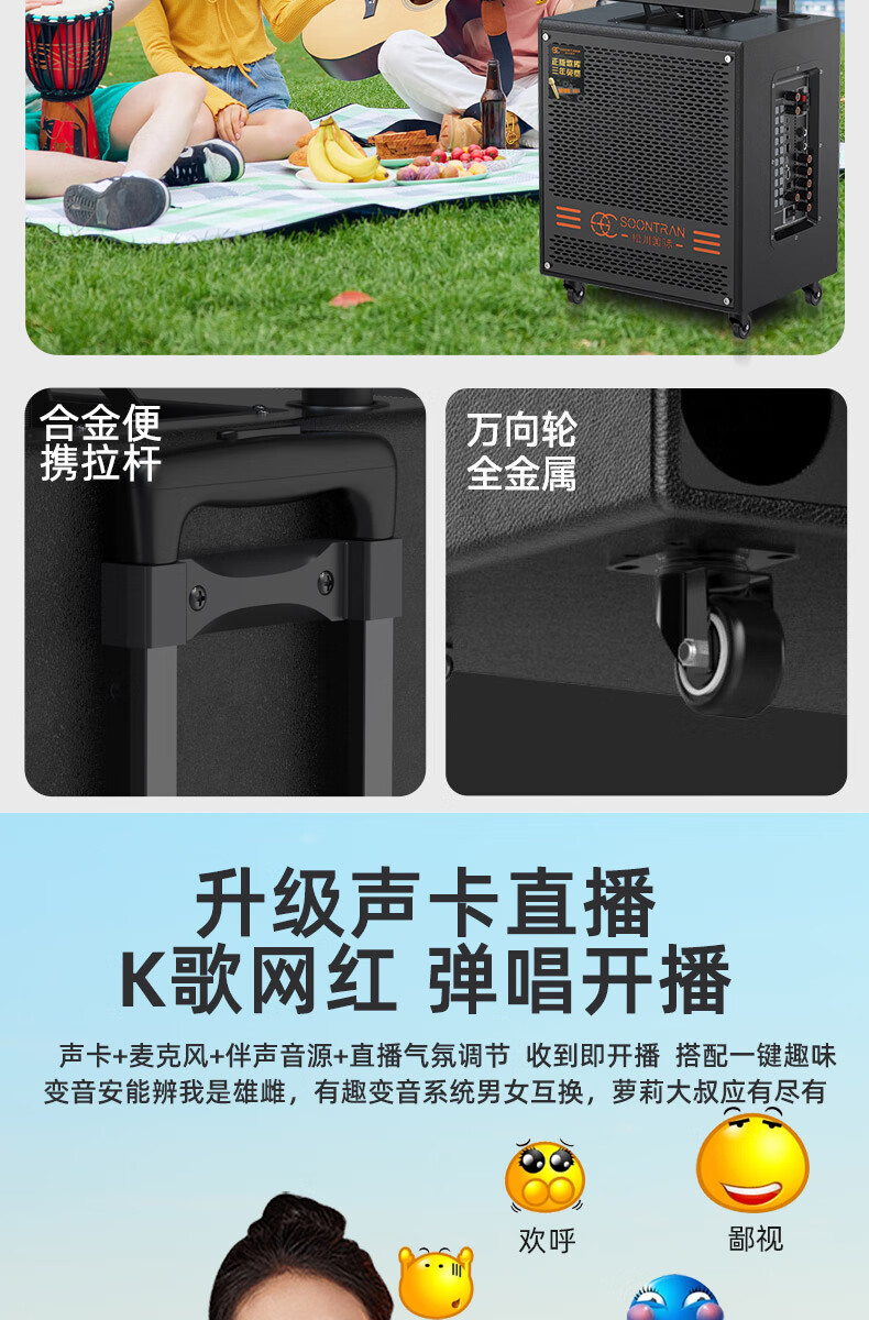 Songchuan International SV5 outdoor mobile trolley karaoke Bluetooth speaker charging square dance mobile stage with wireless microphone 10-inch high power + dual U-segment bel canto microphones two pieces
