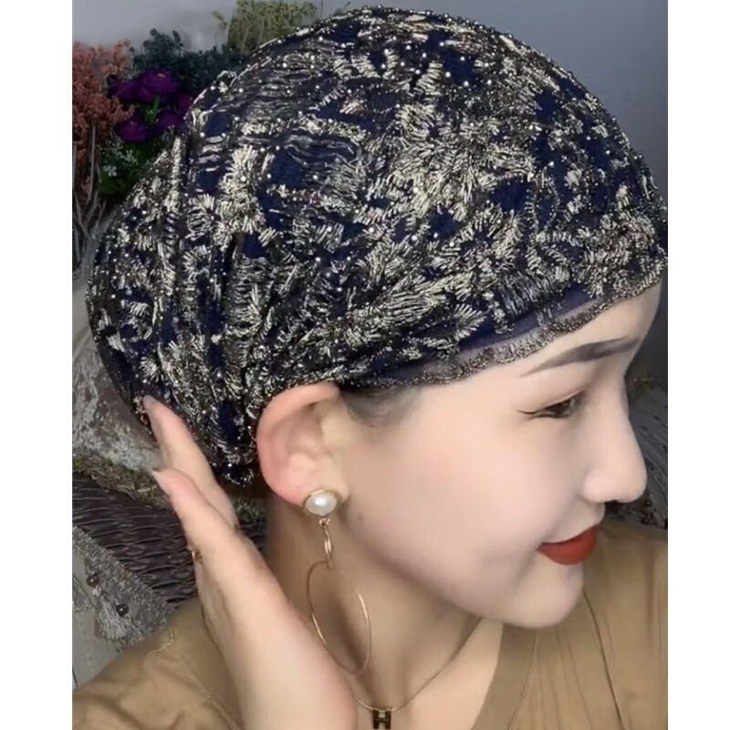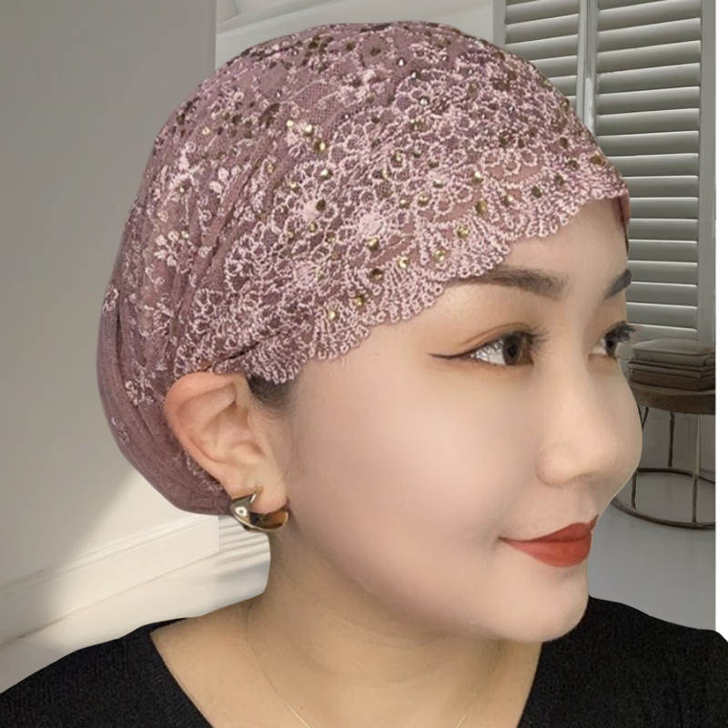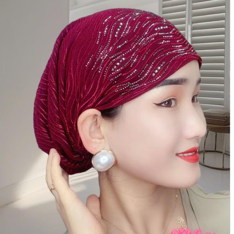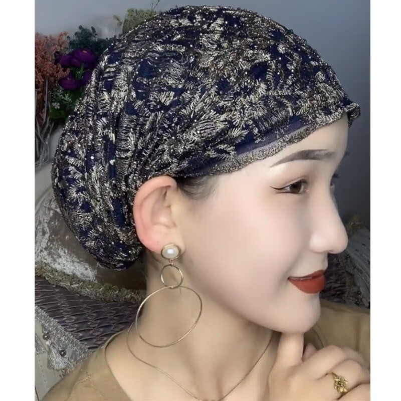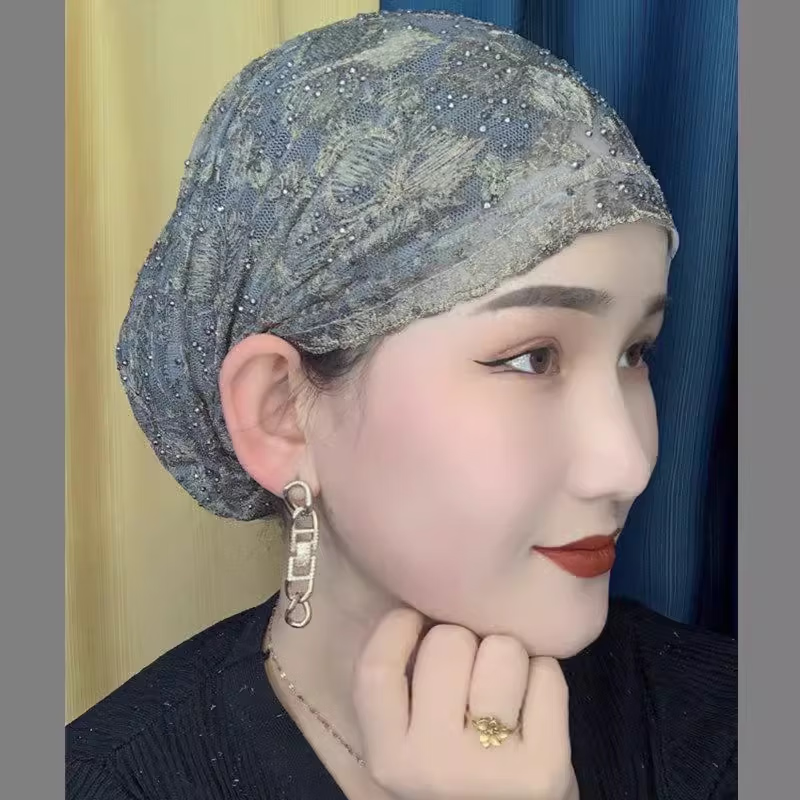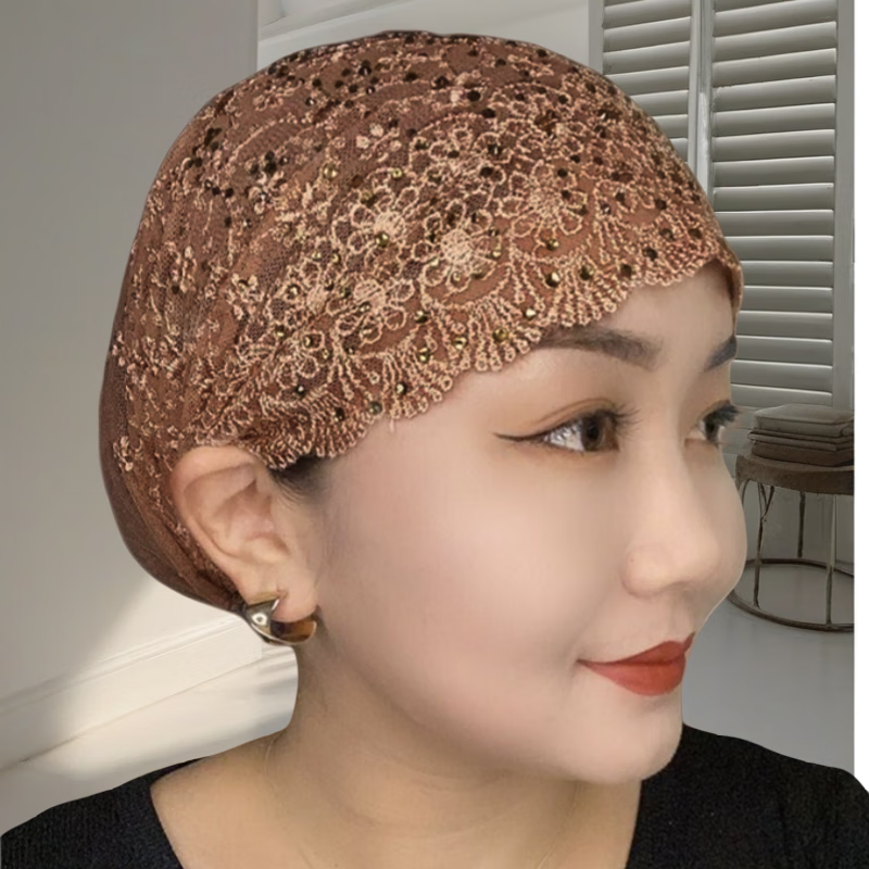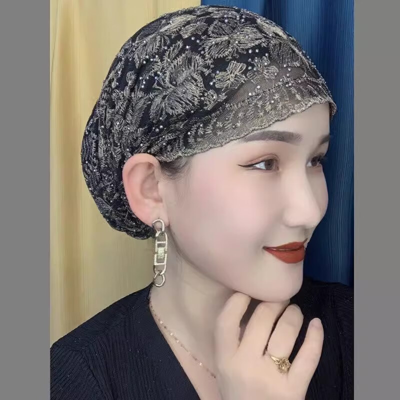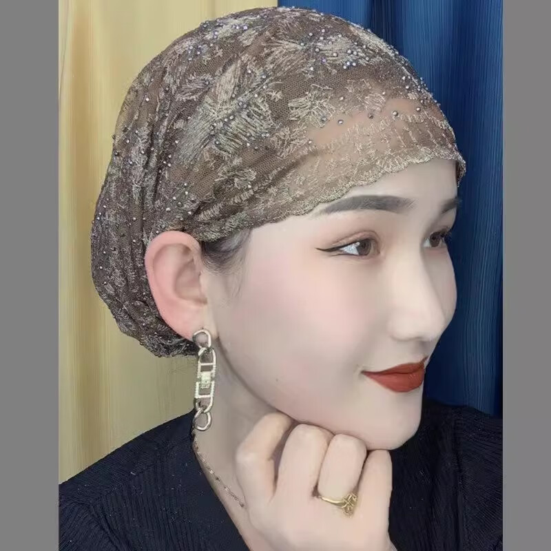 Summer Thin Baotou Hat, Hot Diamond Embroidered Mom Hat, Fashionable Hair Covering Pullover Hat, Pile Hat, Ethnic Gauze Hat, Brown, One Size Fits All, Elastic