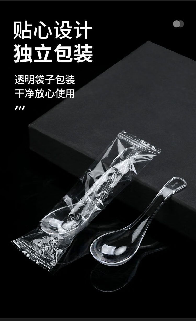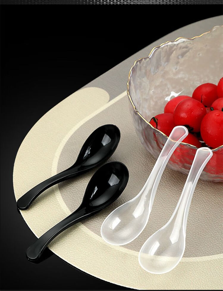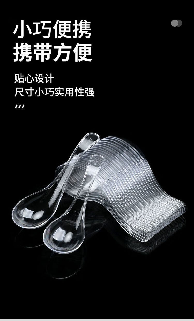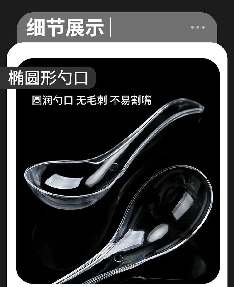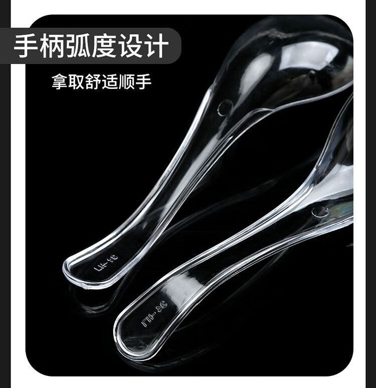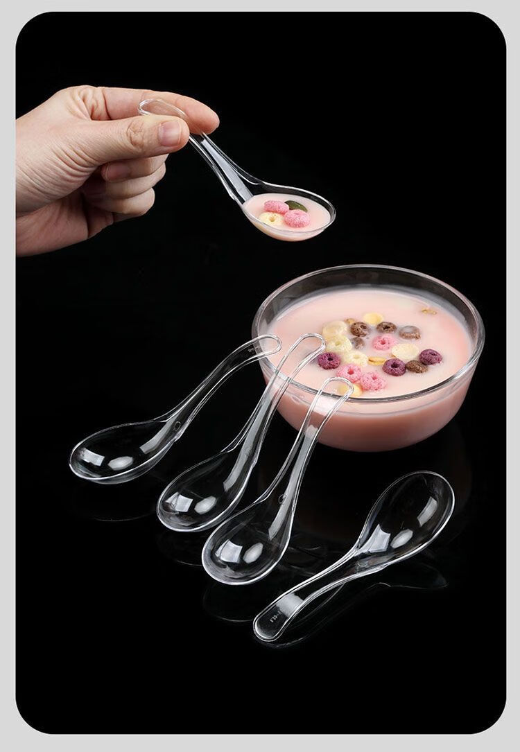 Kangenjia disposable thickened spoon plastic soup spoon take-out fast food rice spoon commercial transparent dessert spoon spoon soup transparent ps material fifty pieces per bag thickened carton packed 200 pieces
