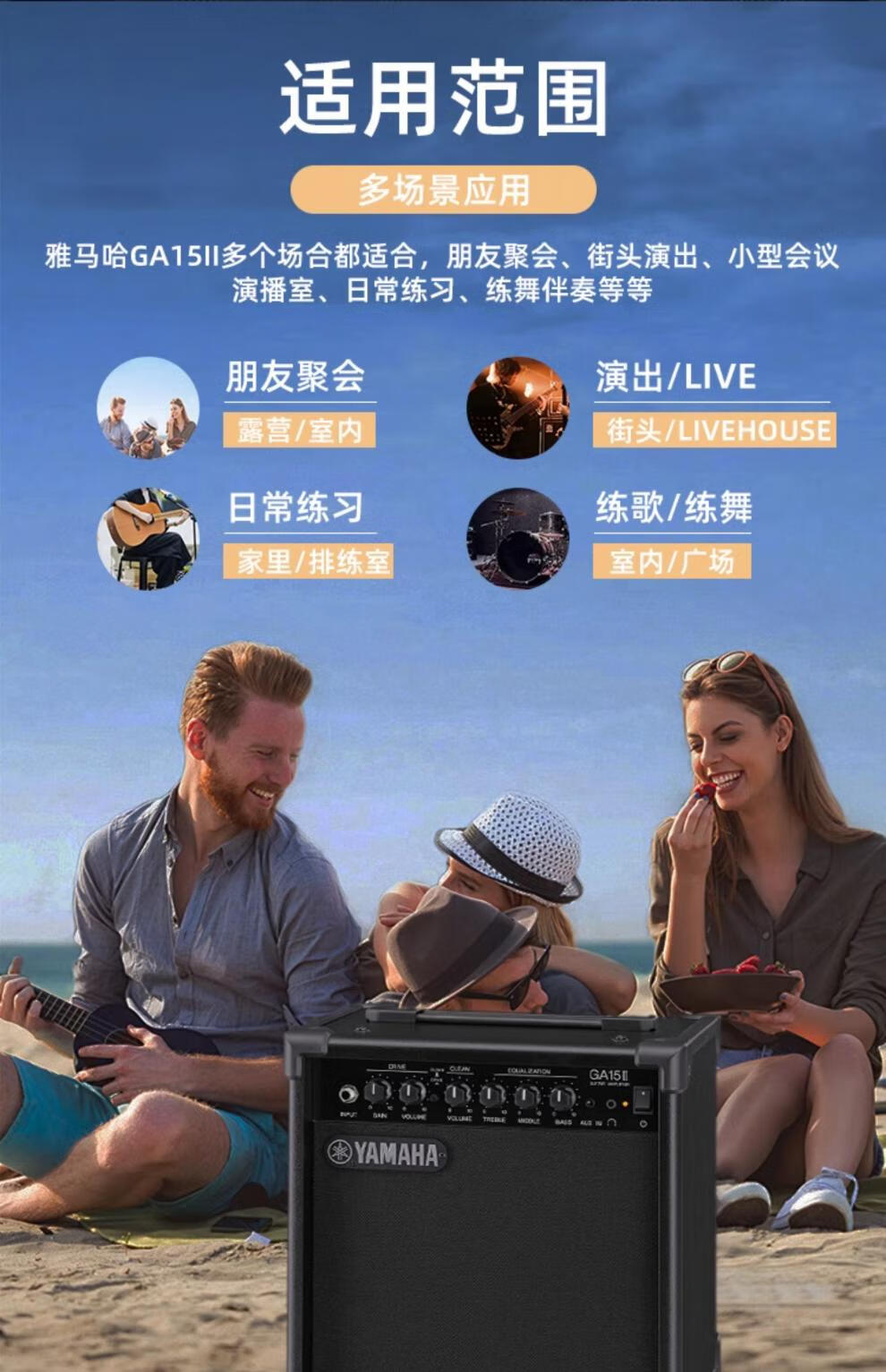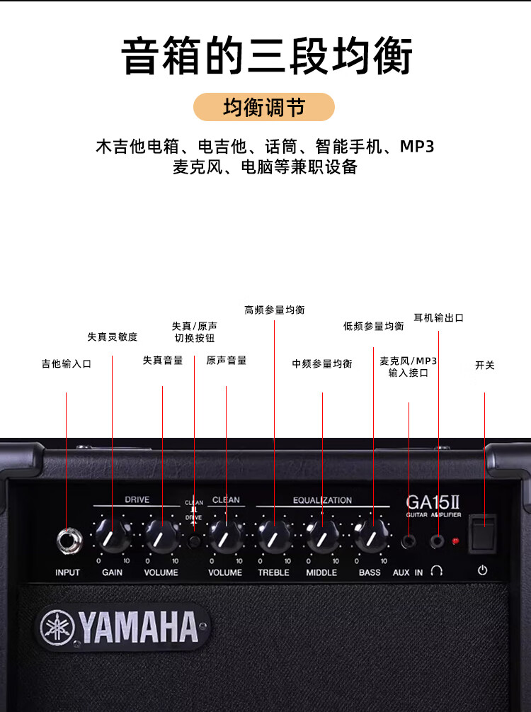 Yamaha (YAMAHA) guitar speaker GA15II folk acoustic guitar electric guitar bass special playing and singing audio with effector GA15II guitar speaker + speaker bag