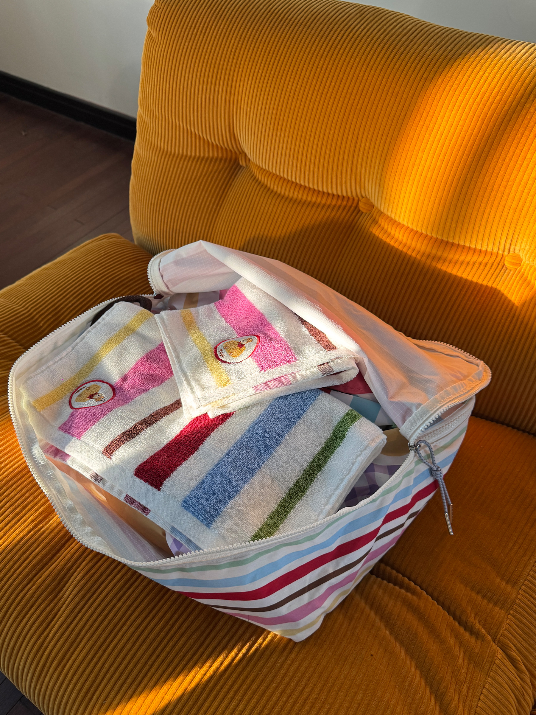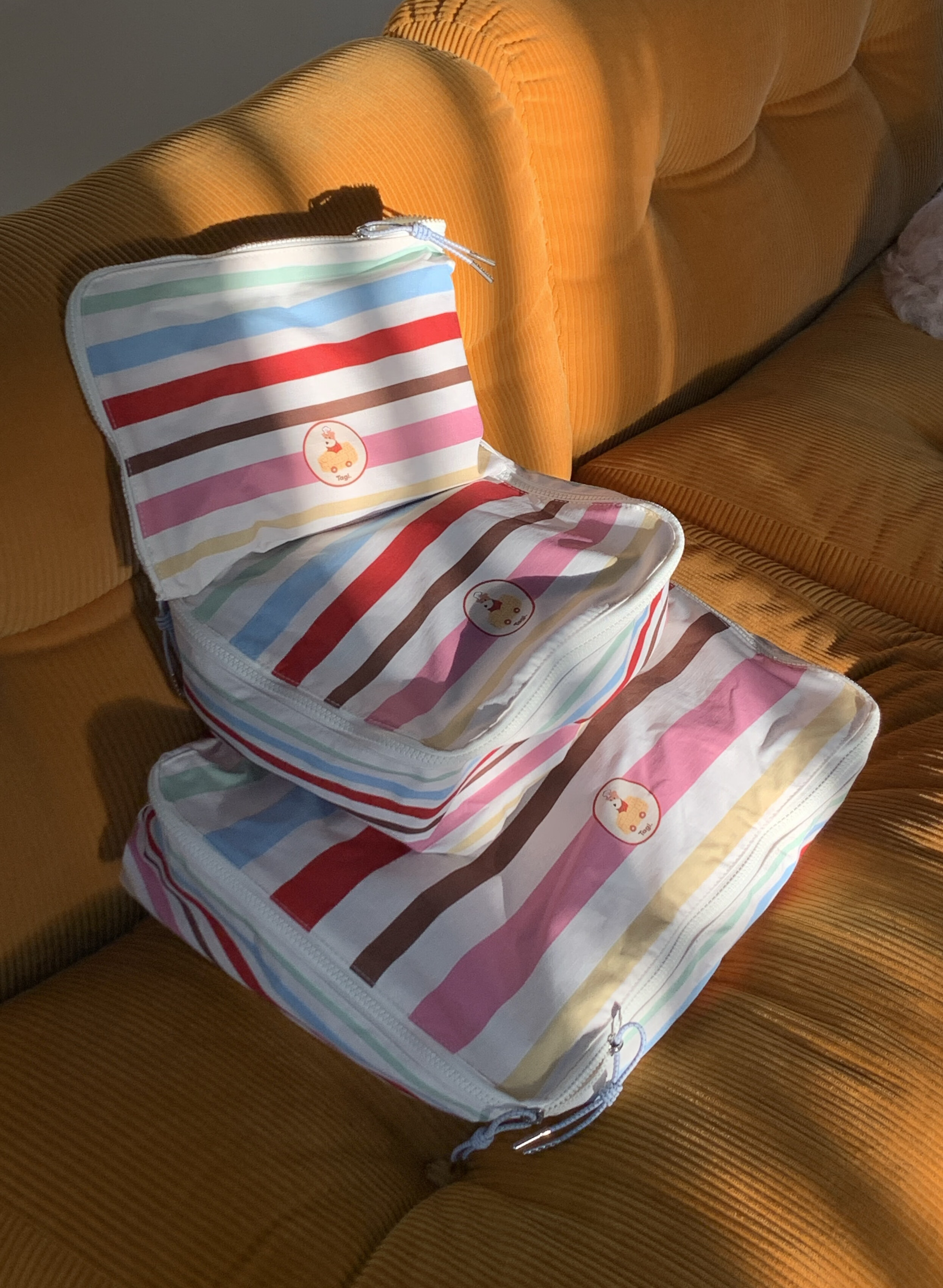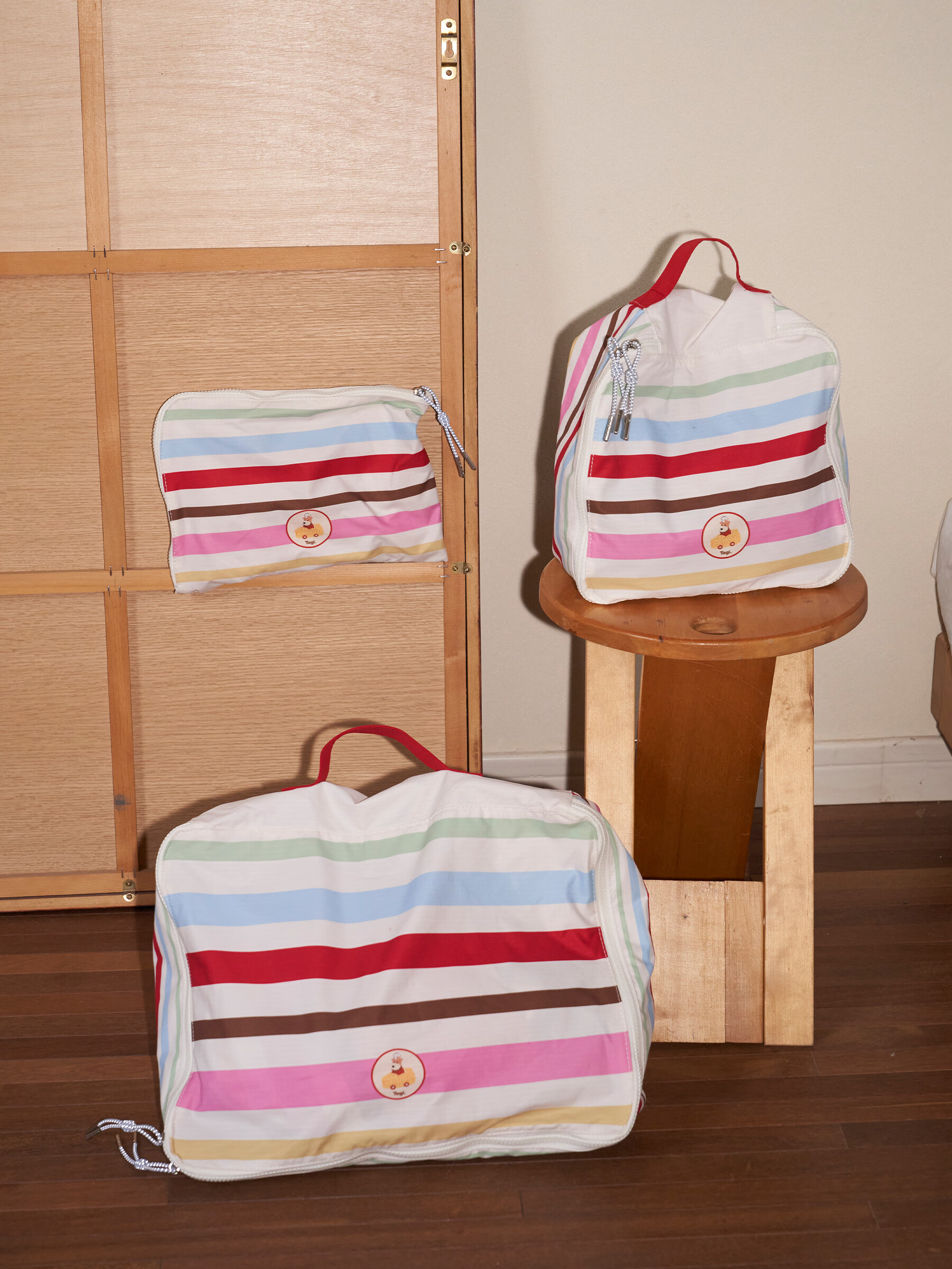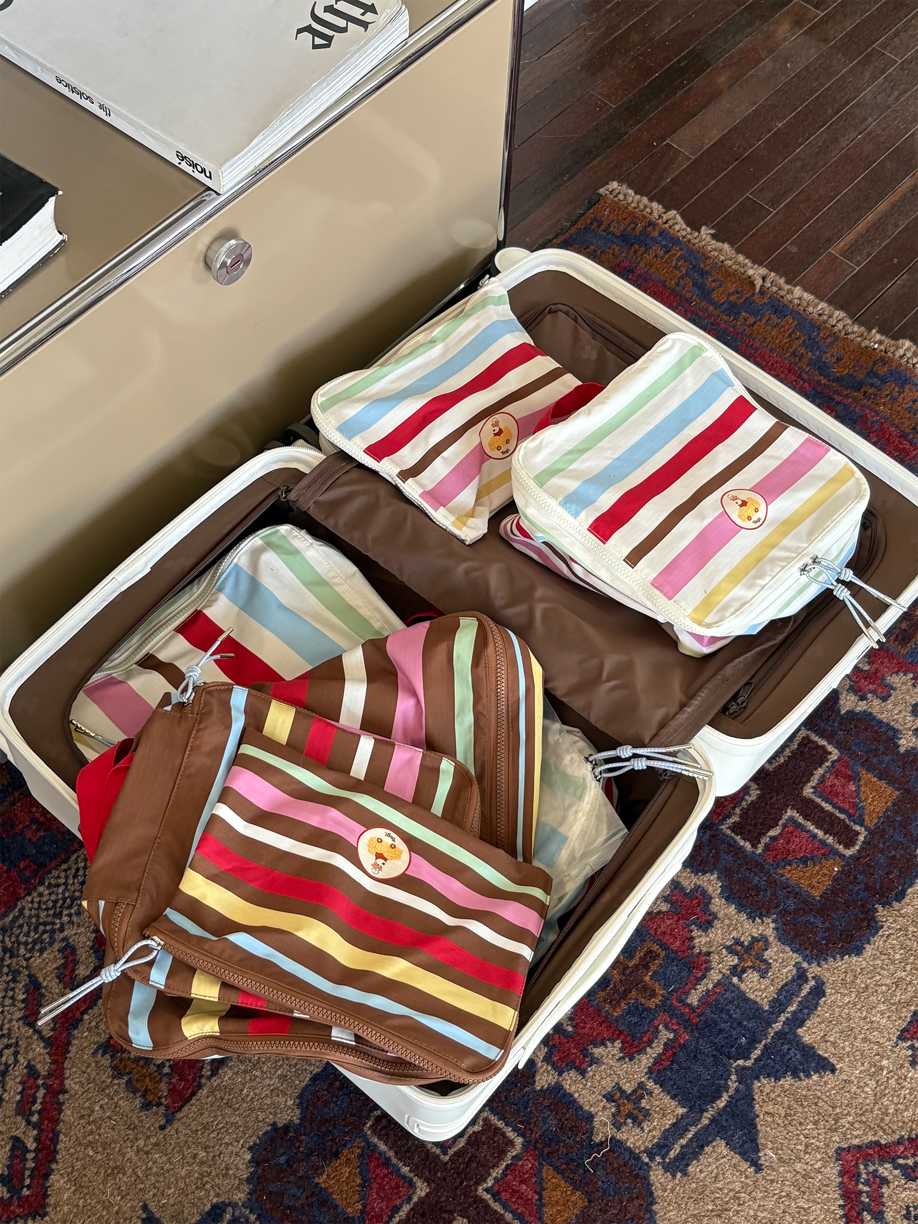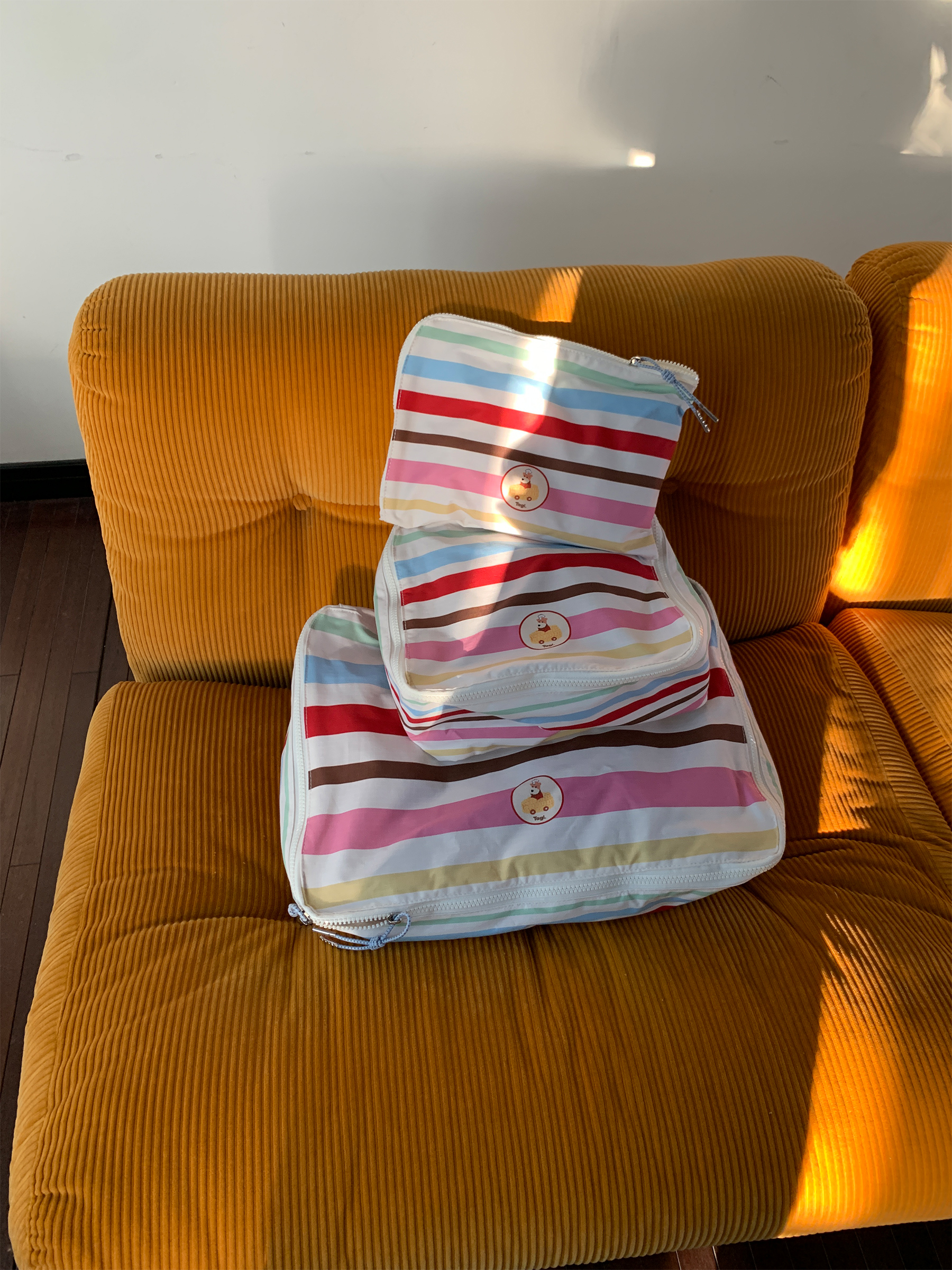 Tagi.Puppy autumn and winter cute portable storage striped toiletry bag storage travel bag striped vanilla popcorn medium size