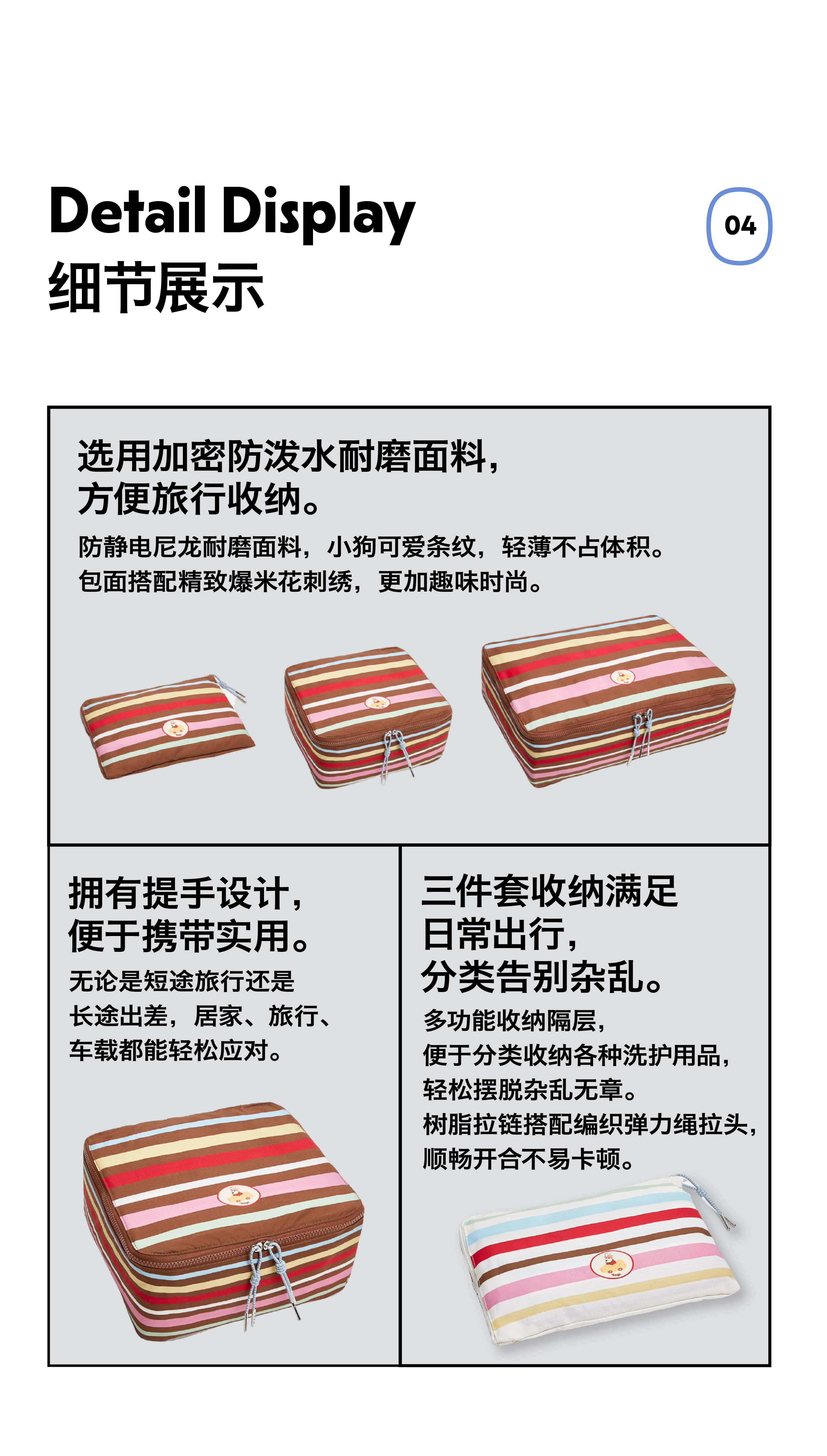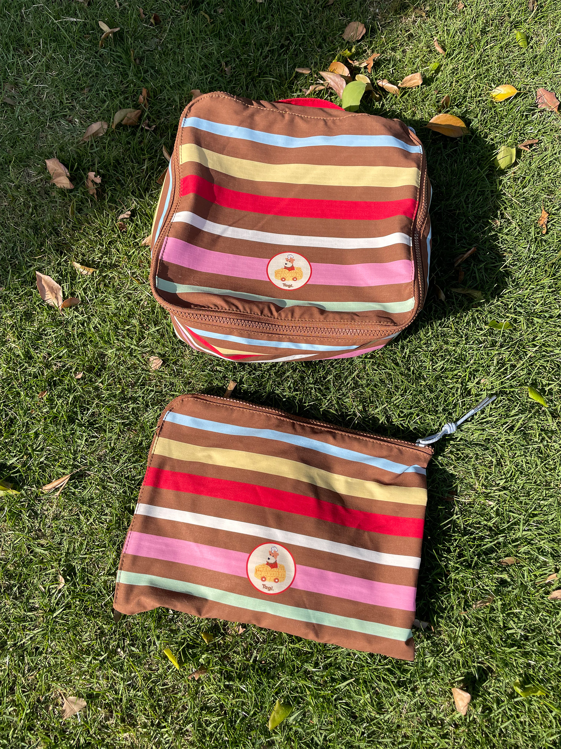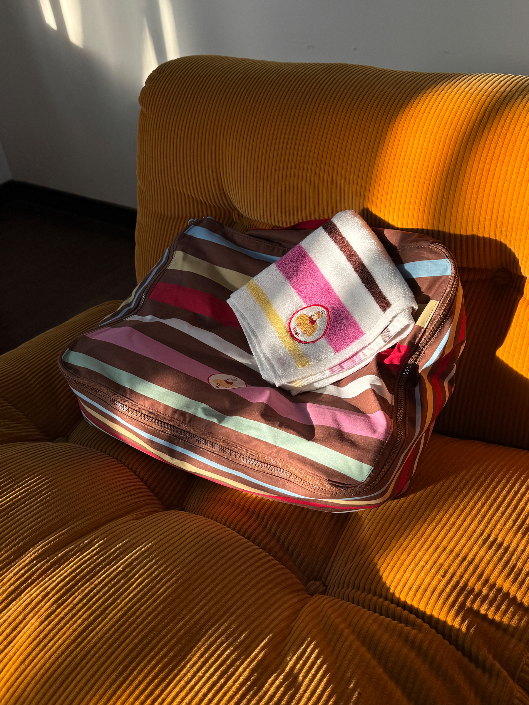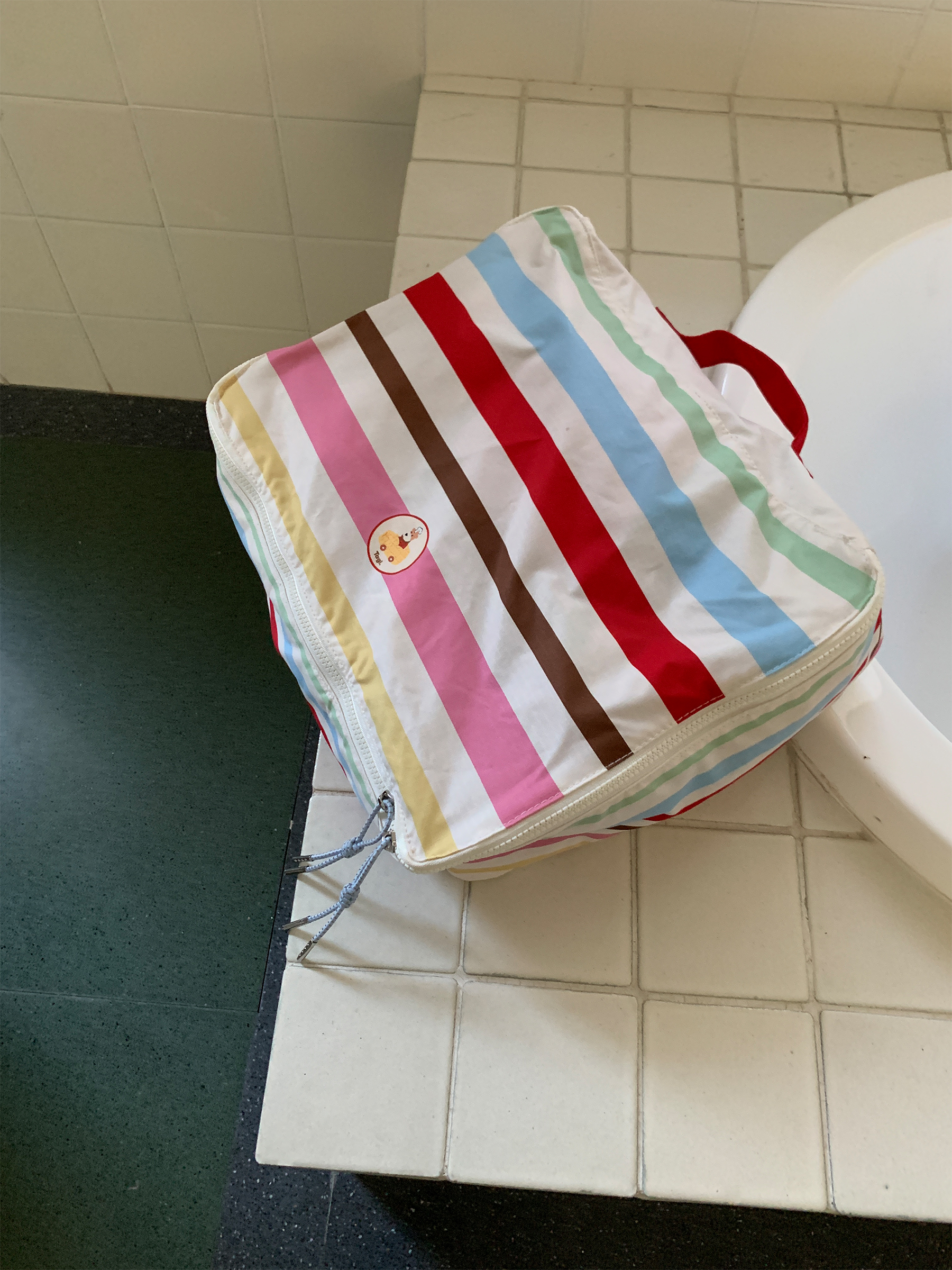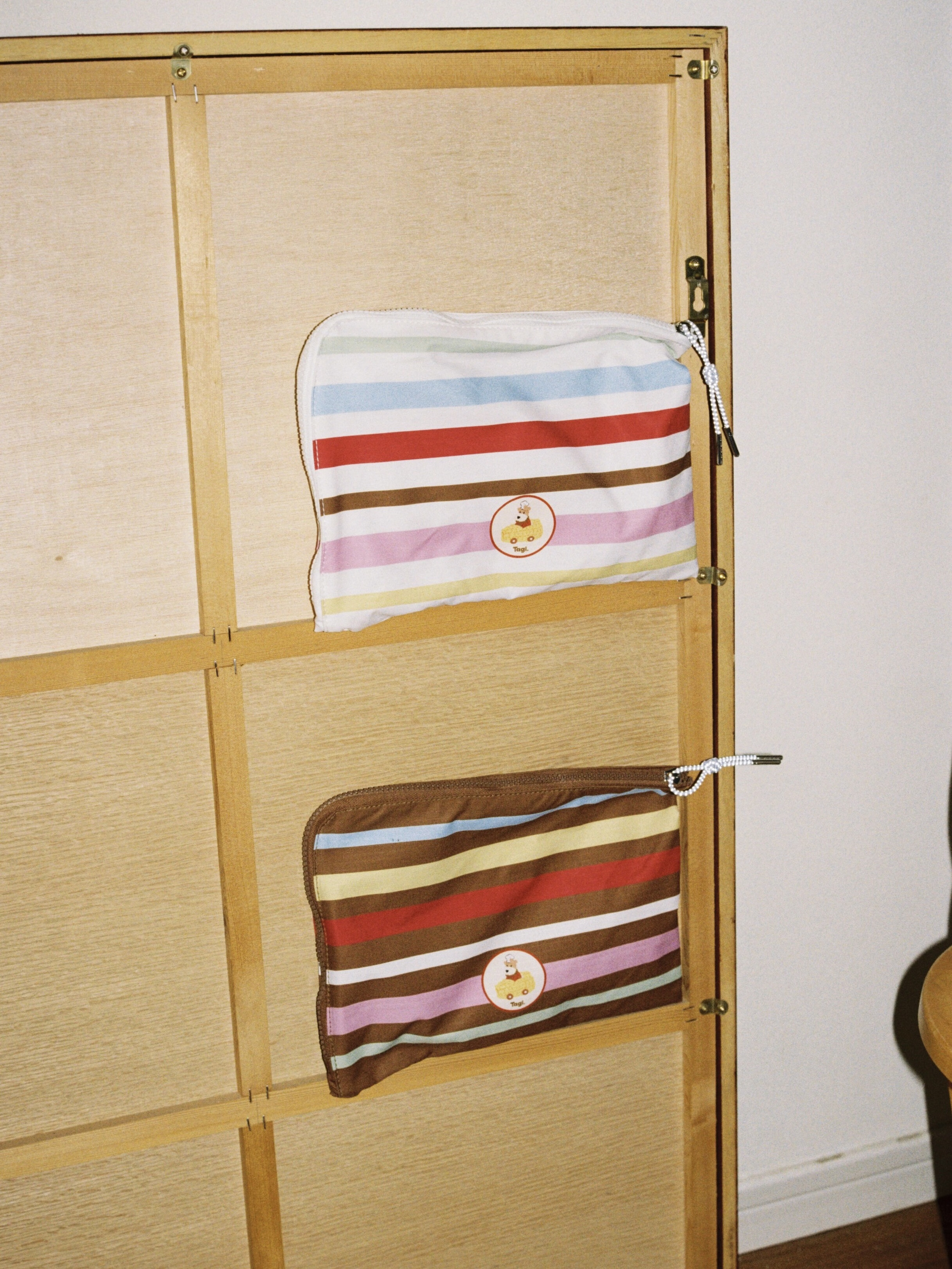 Tagi.Puppy autumn and winter cute portable storage striped toiletry bag storage travel bag striped vanilla popcorn medium size