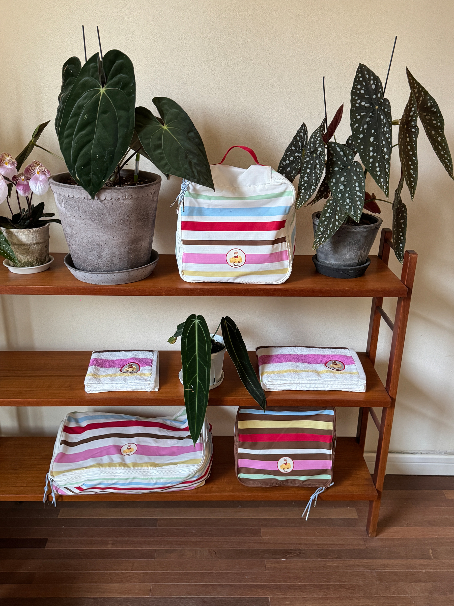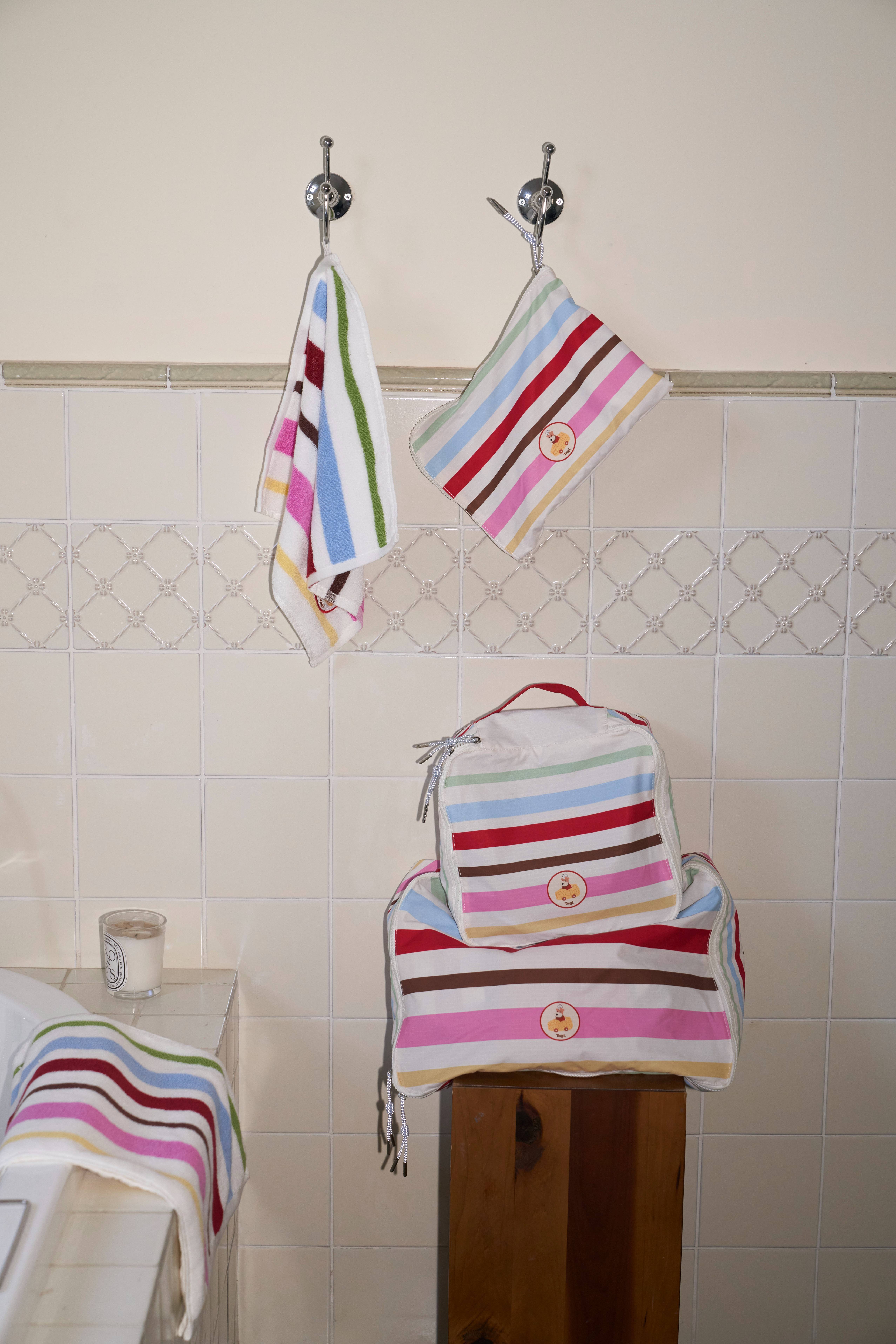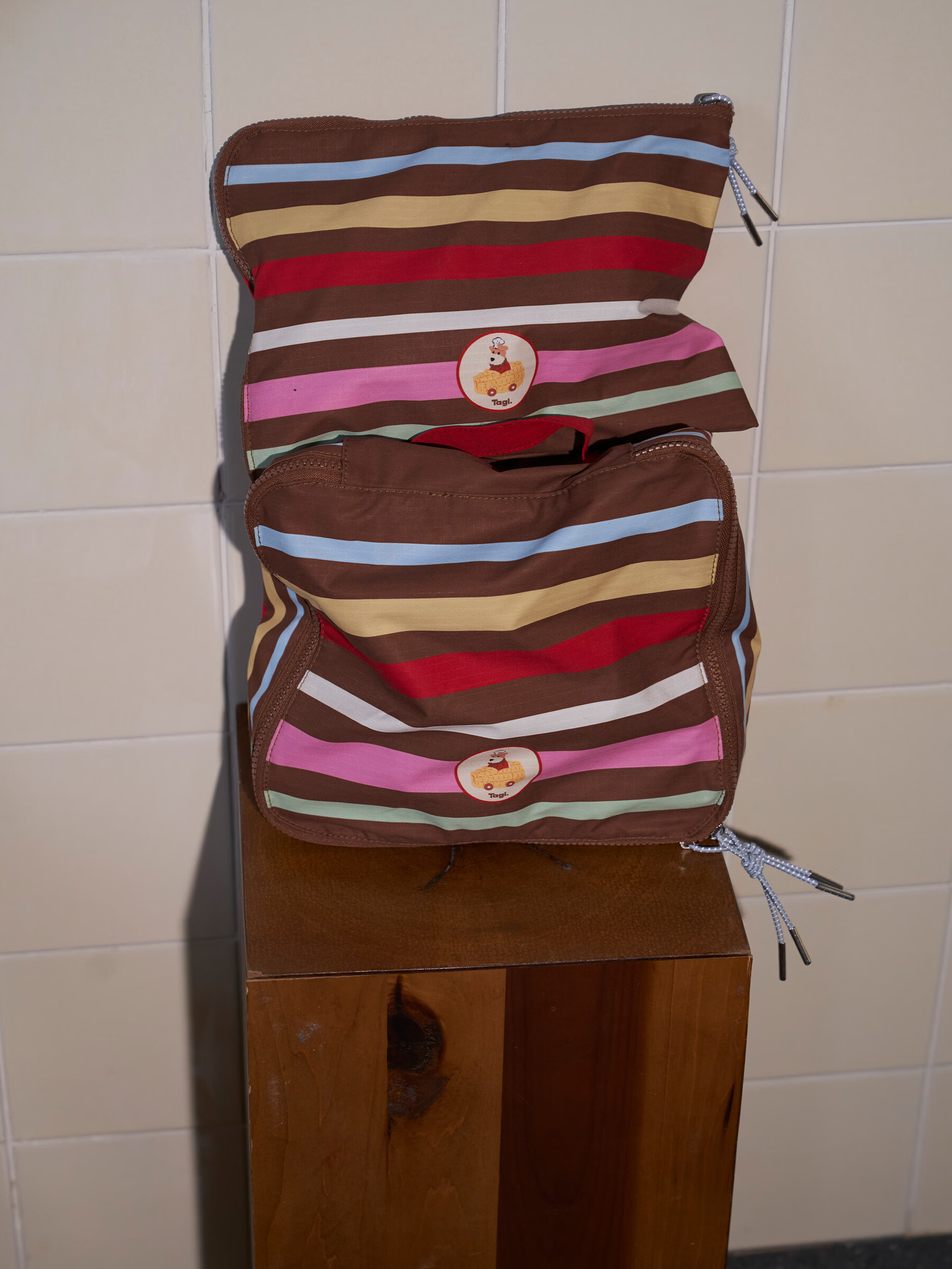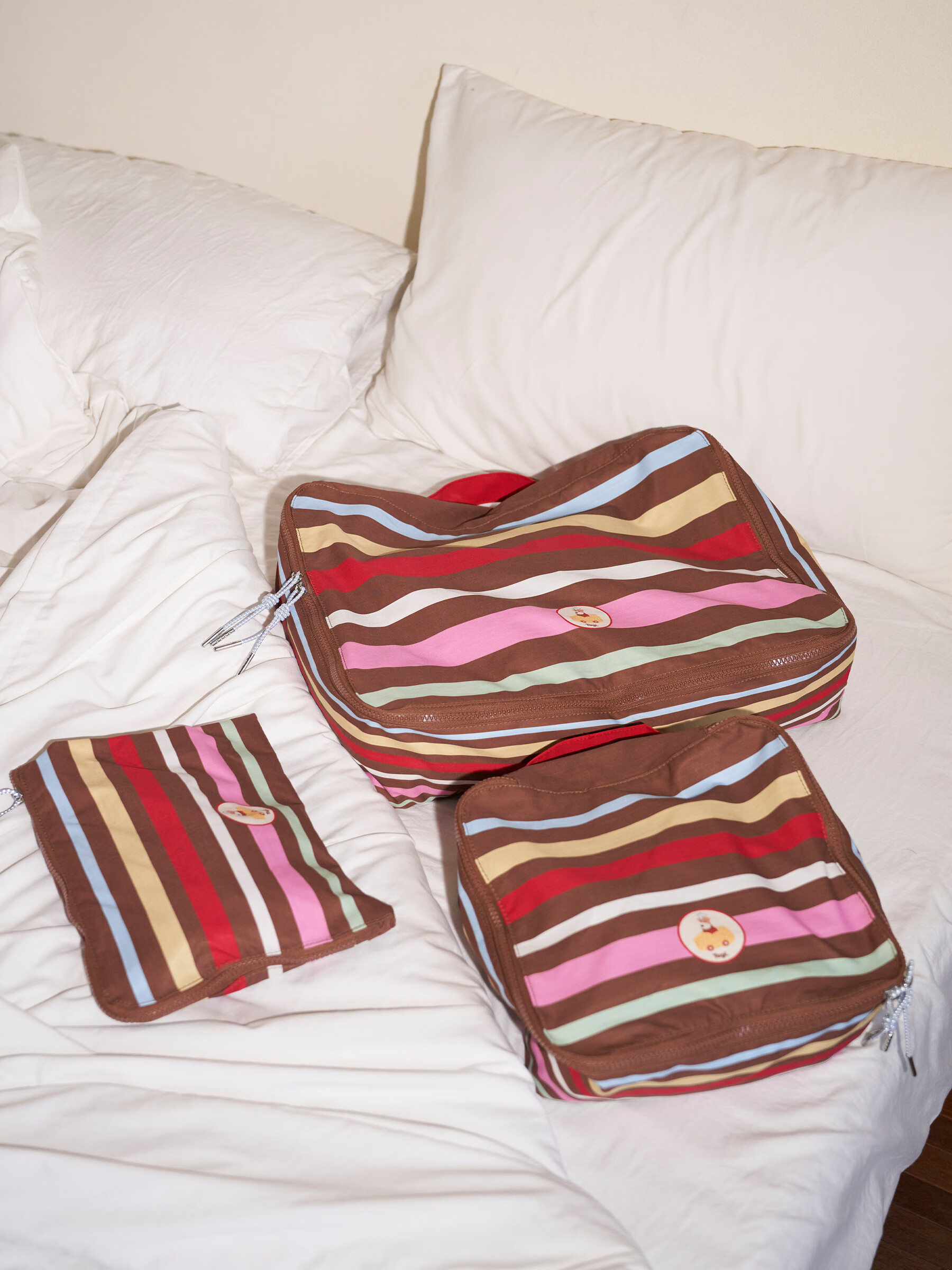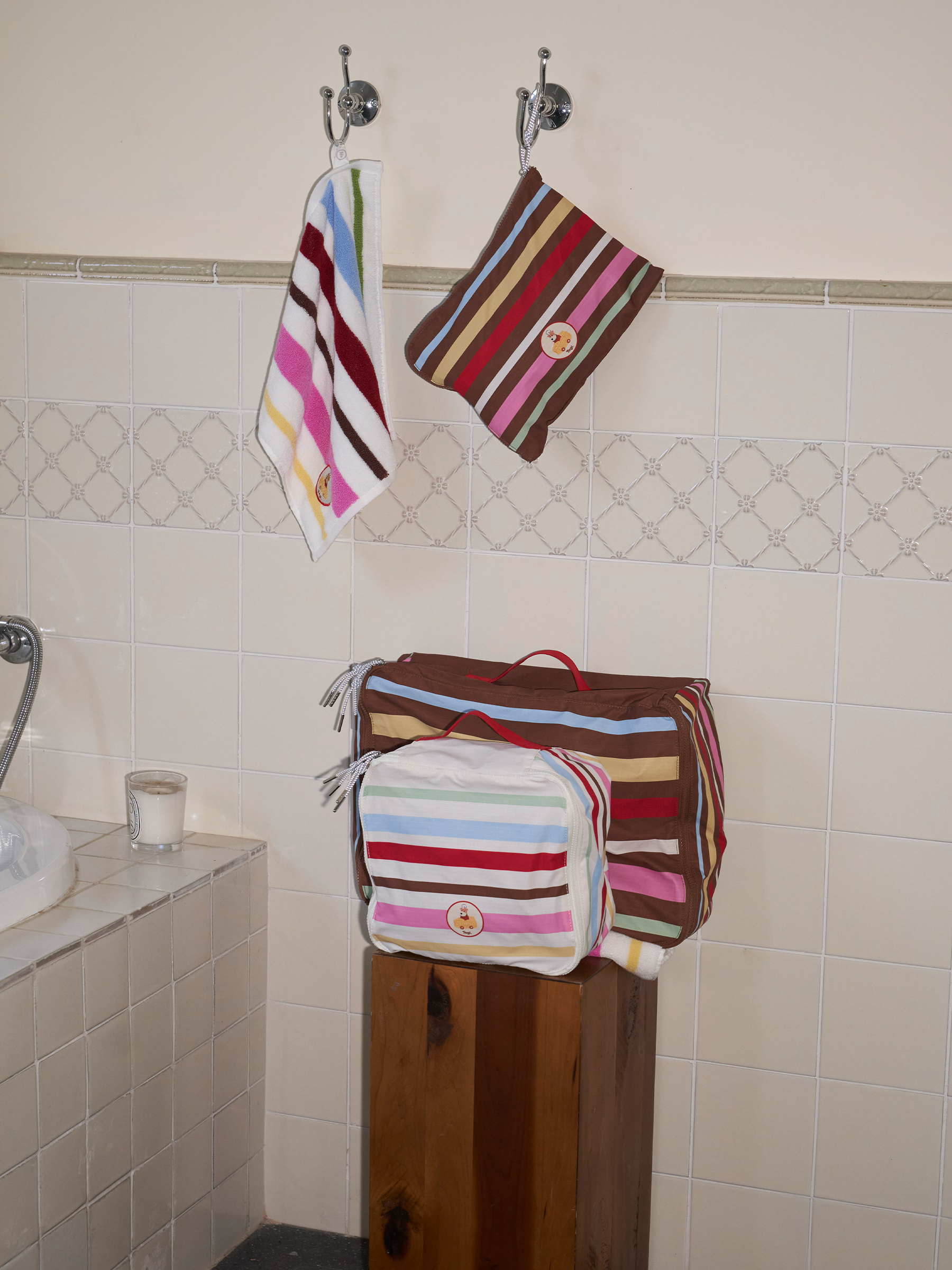 Tagi.Puppy autumn and winter cute portable storage striped toiletry bag storage travel bag striped vanilla popcorn medium size