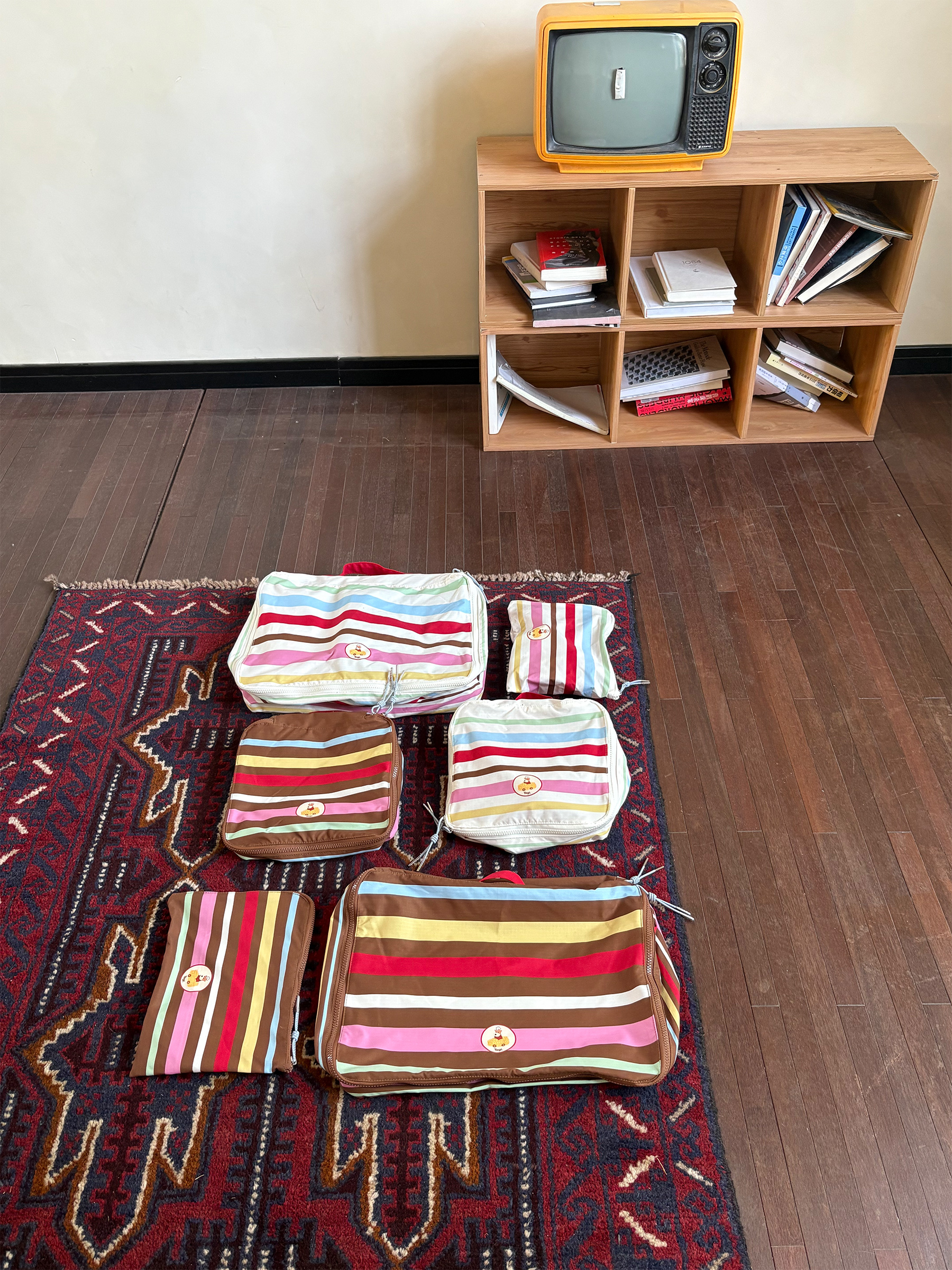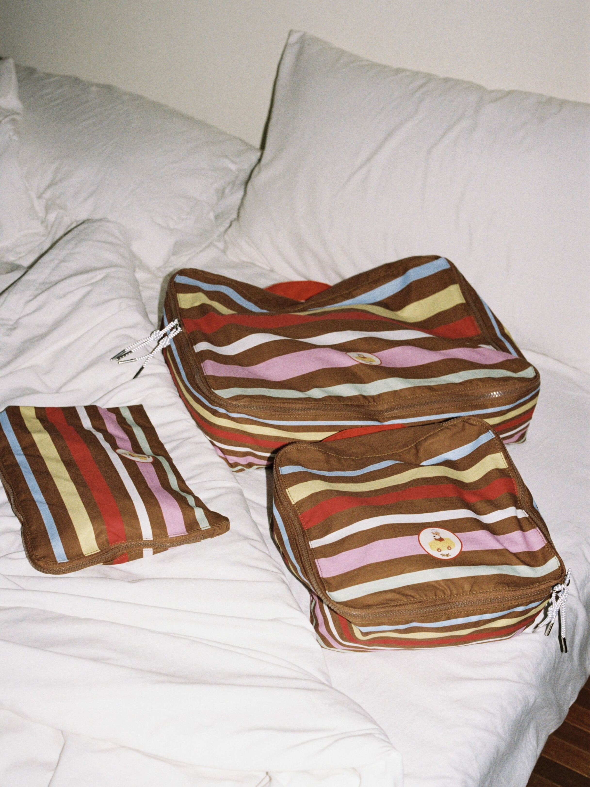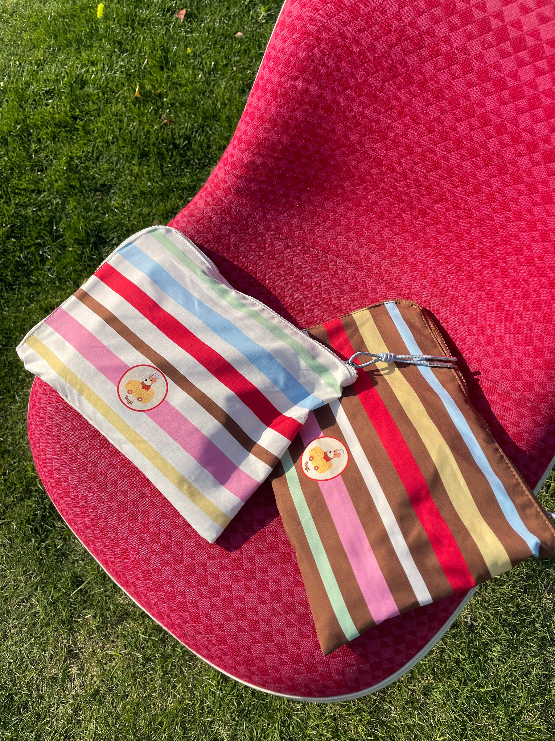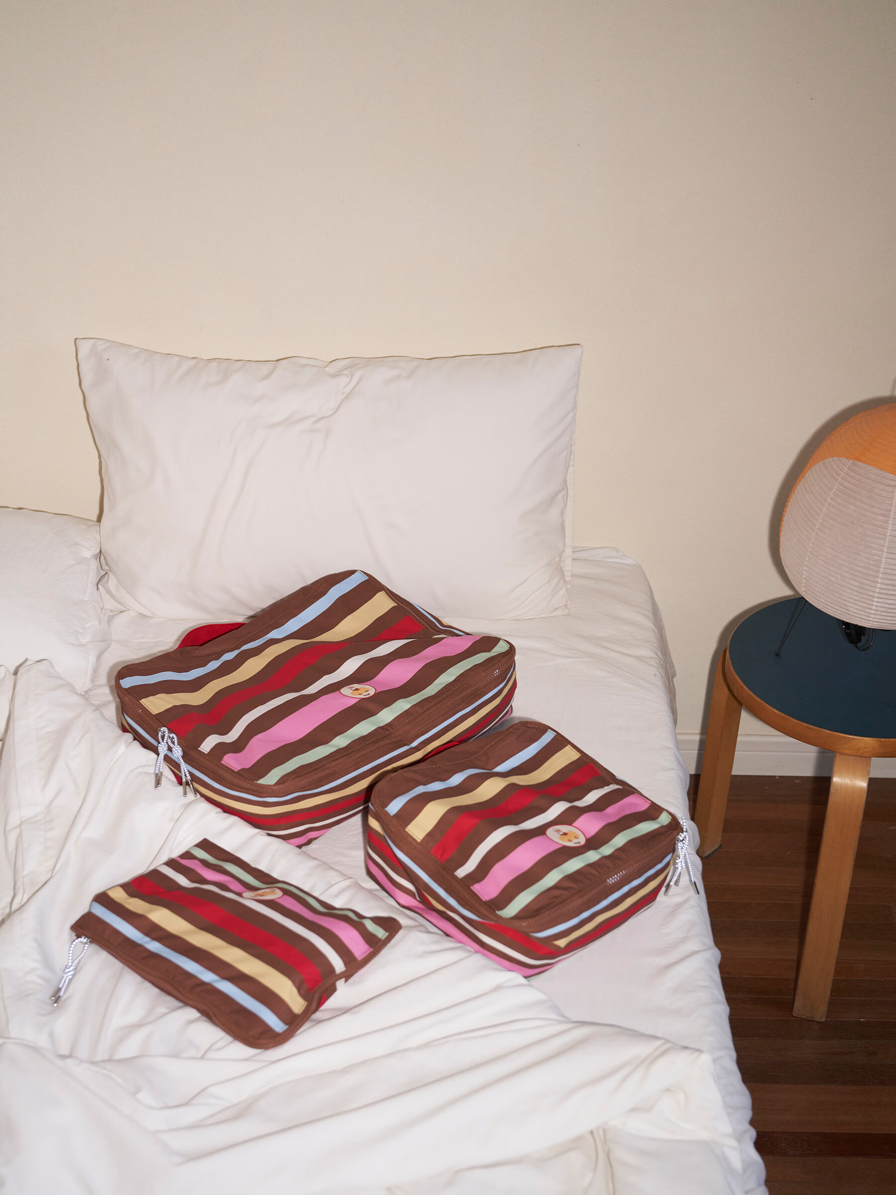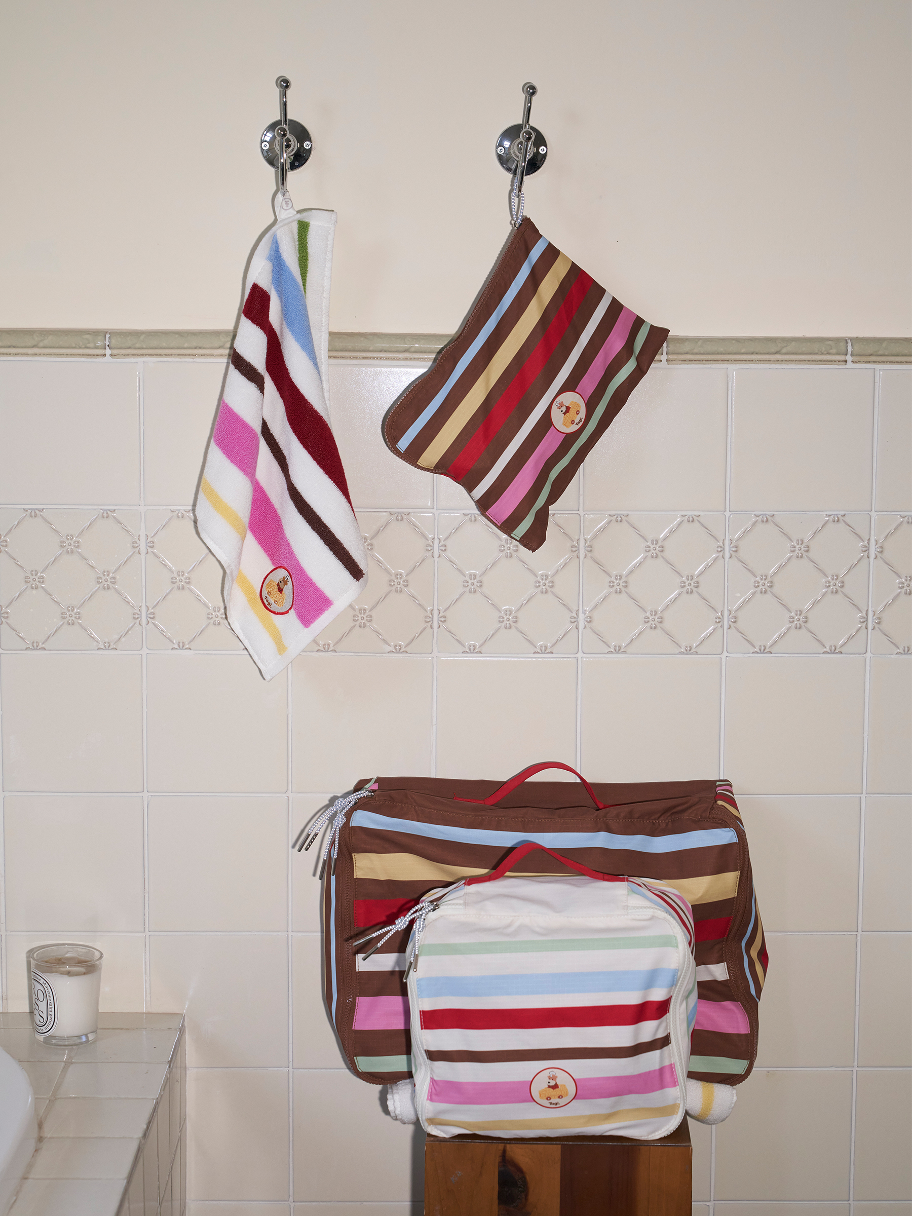 Tagi.Puppy autumn and winter cute portable storage striped toiletry bag storage travel bag striped vanilla popcorn medium size