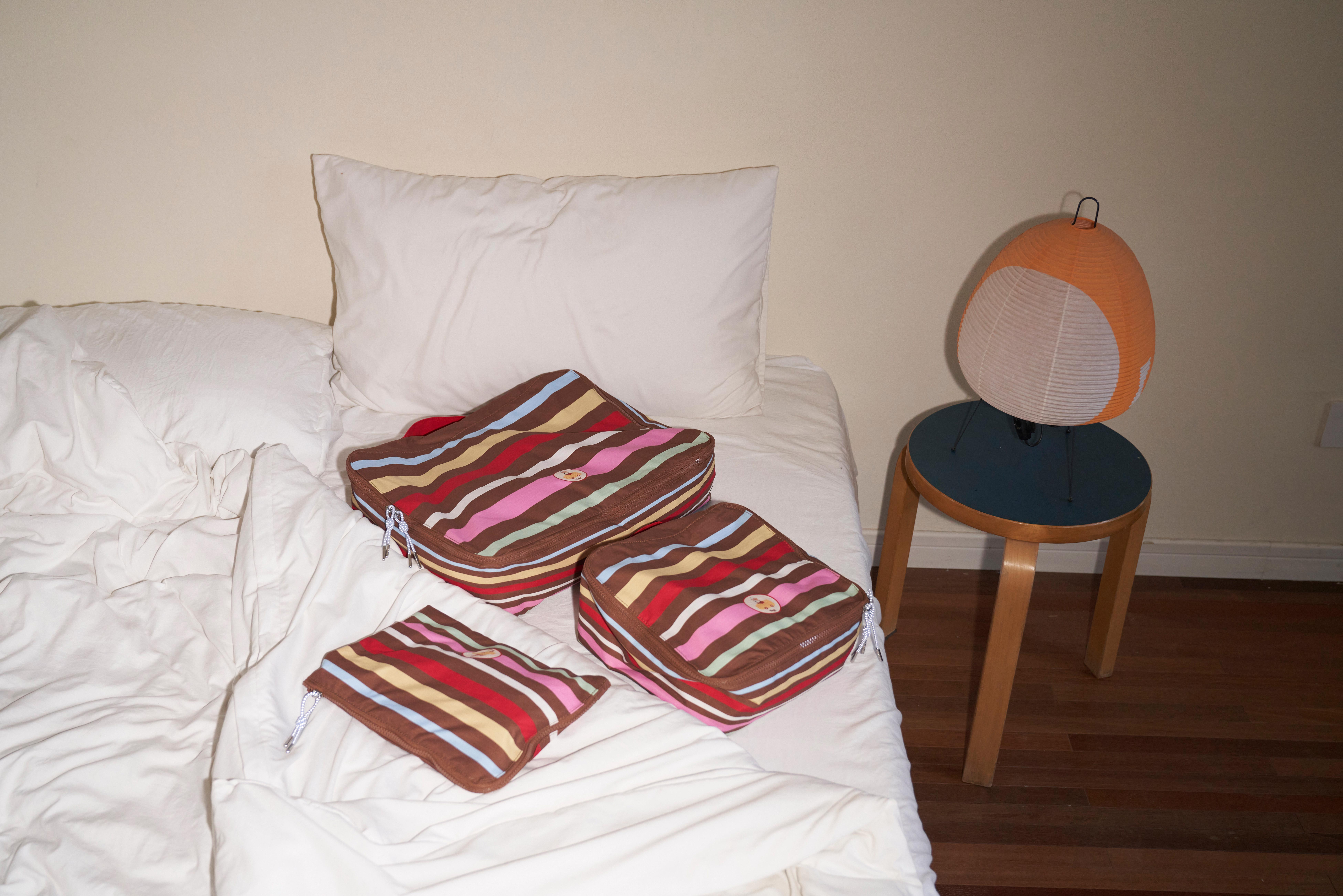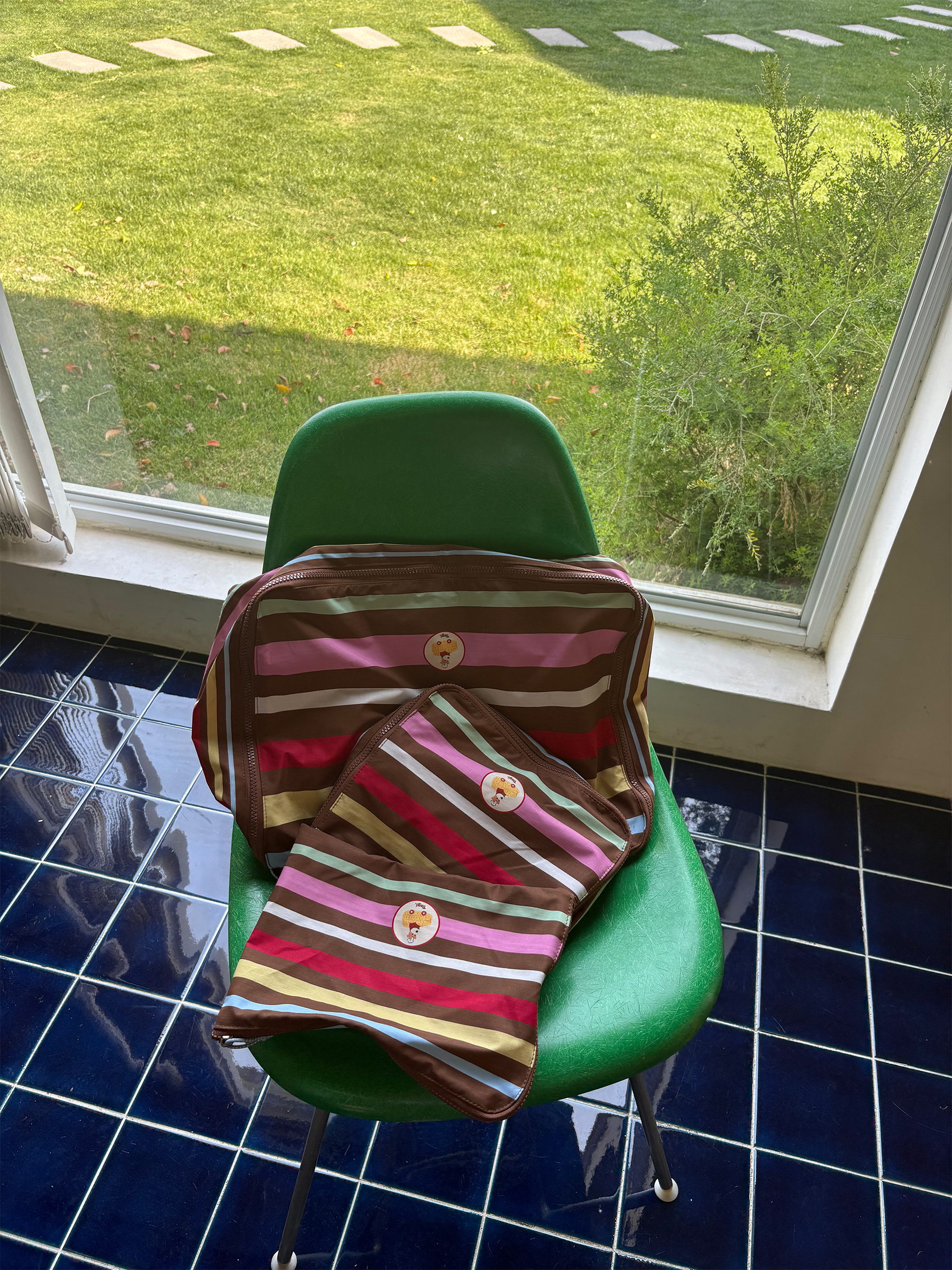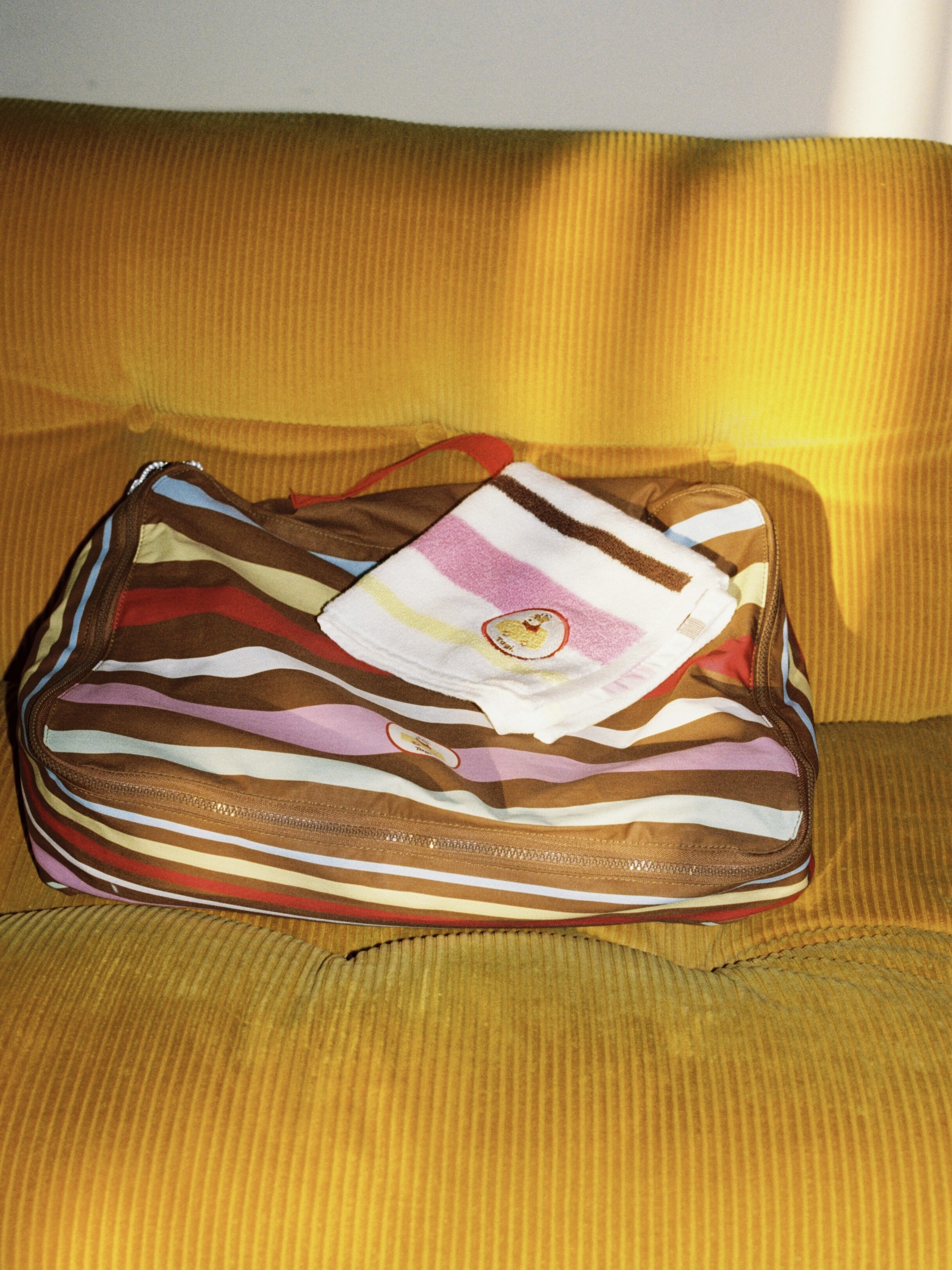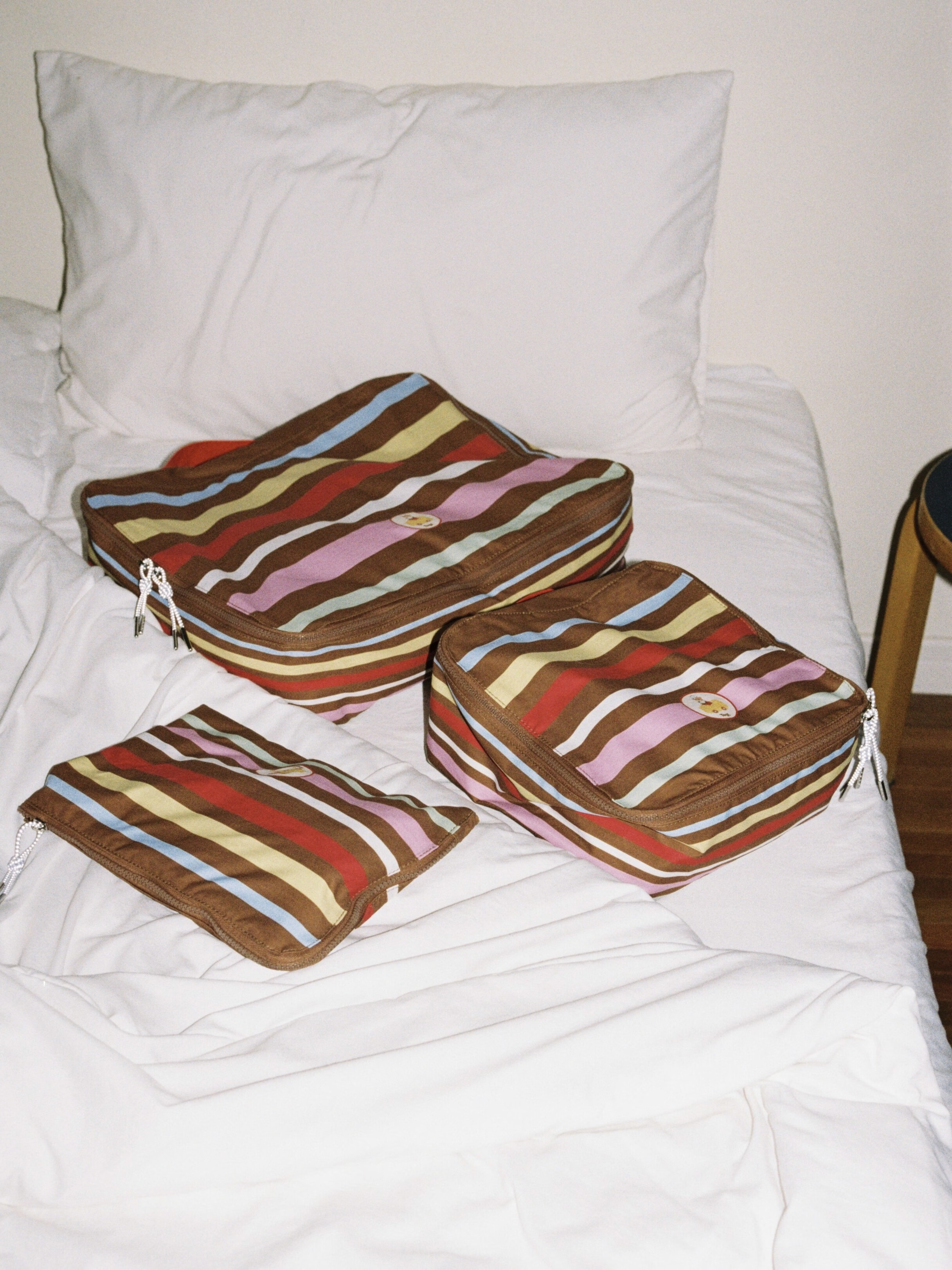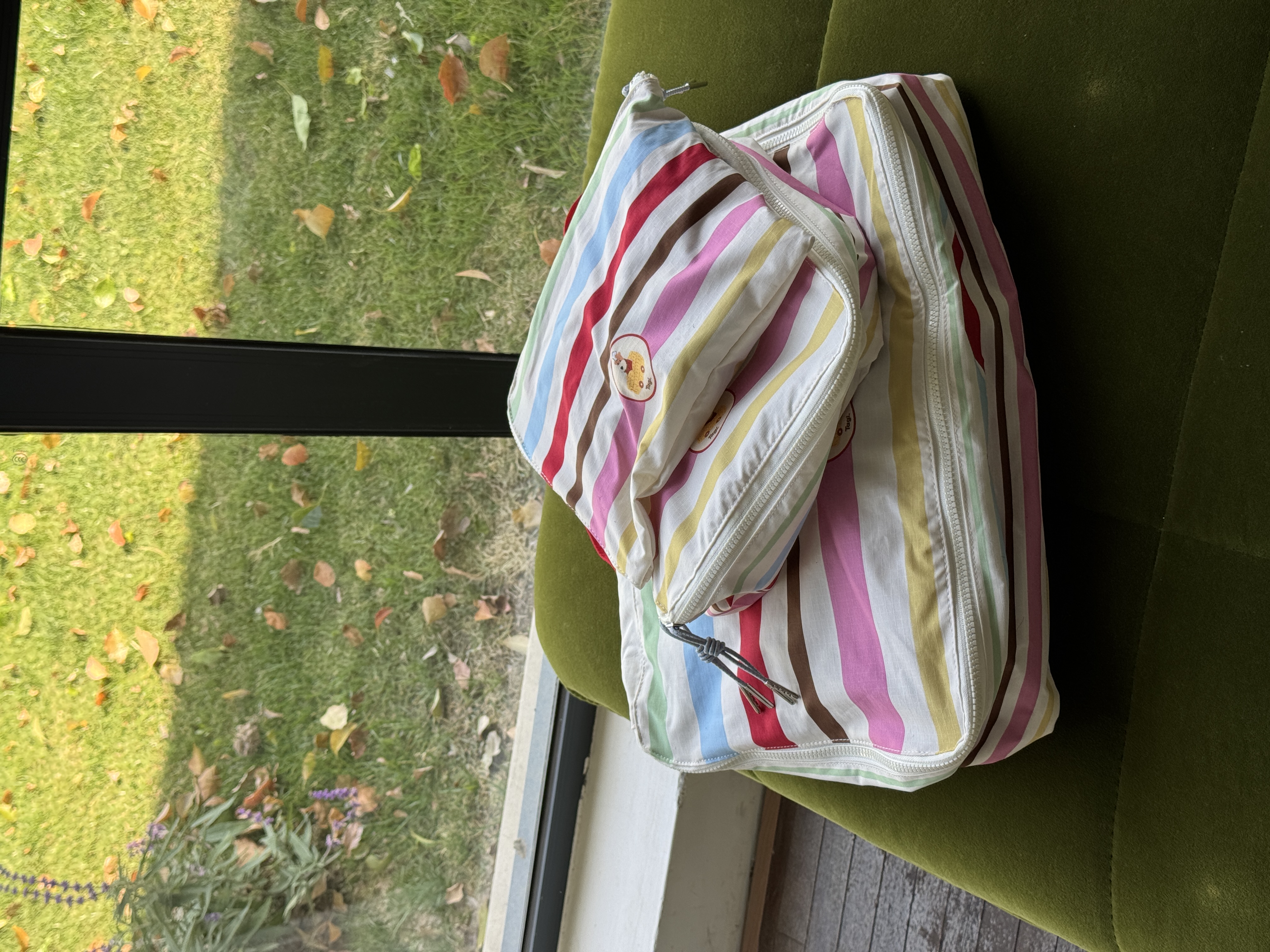 Tagi.Puppy autumn and winter cute portable storage striped toiletry bag storage travel bag striped vanilla popcorn medium size