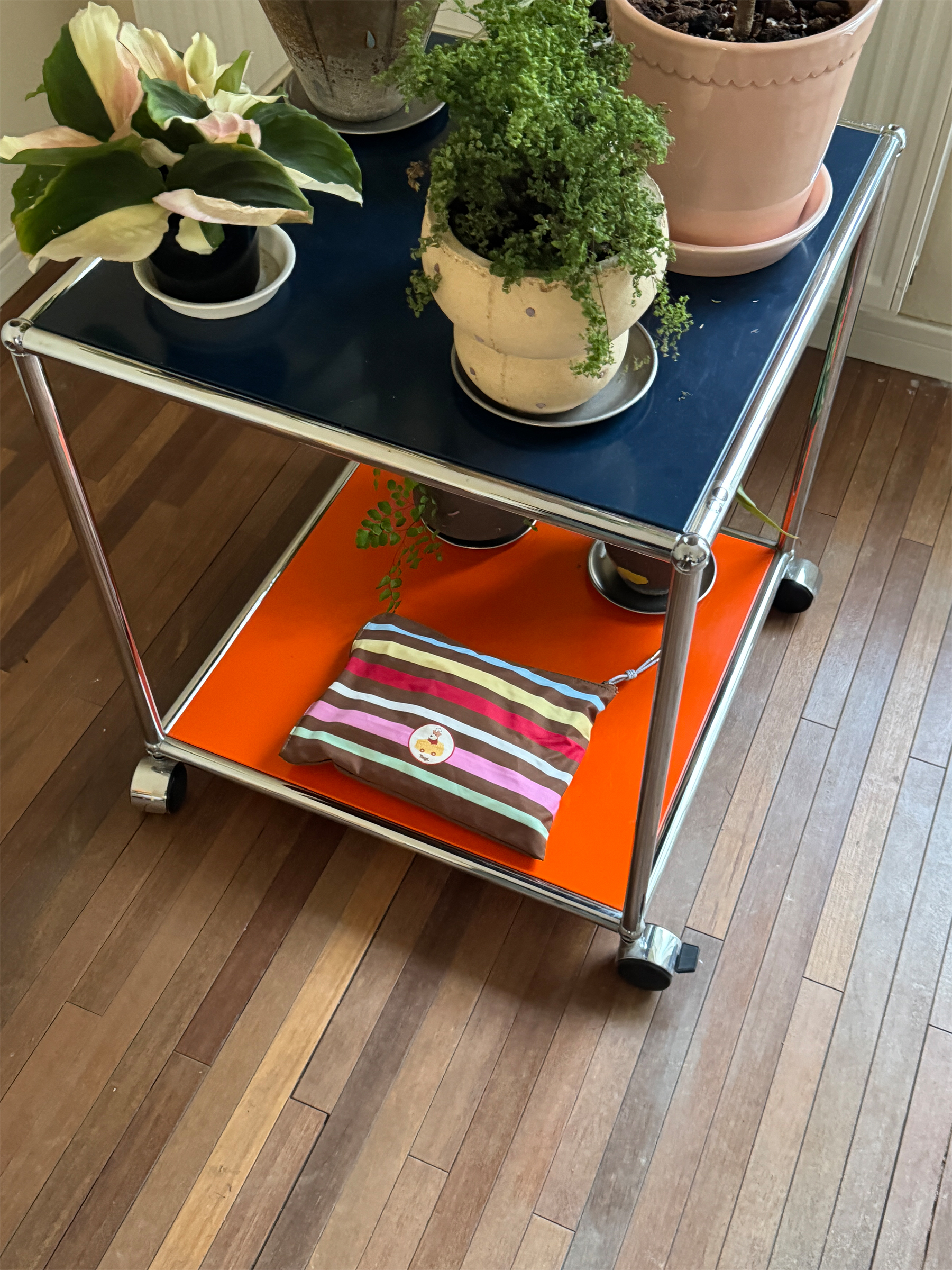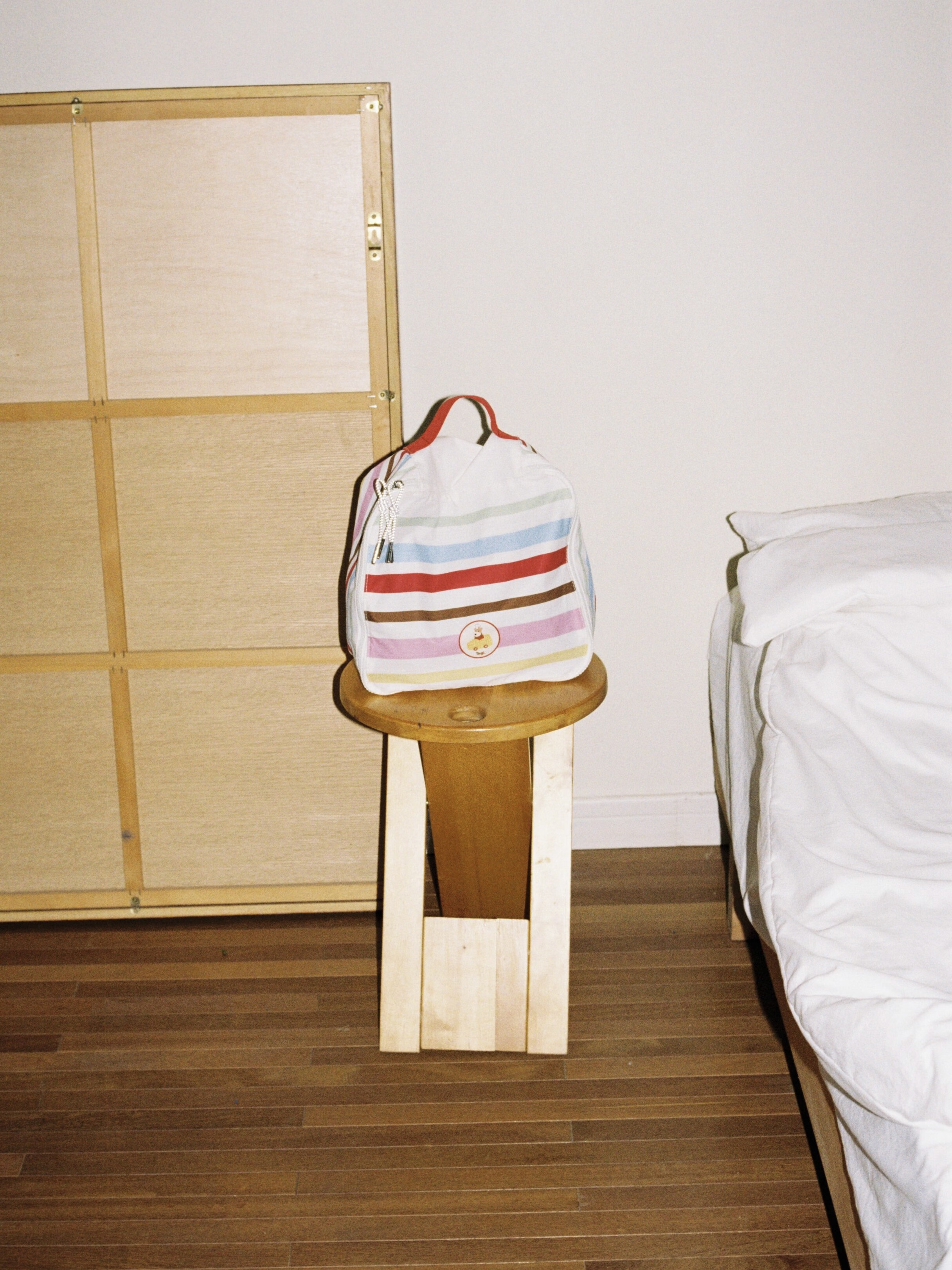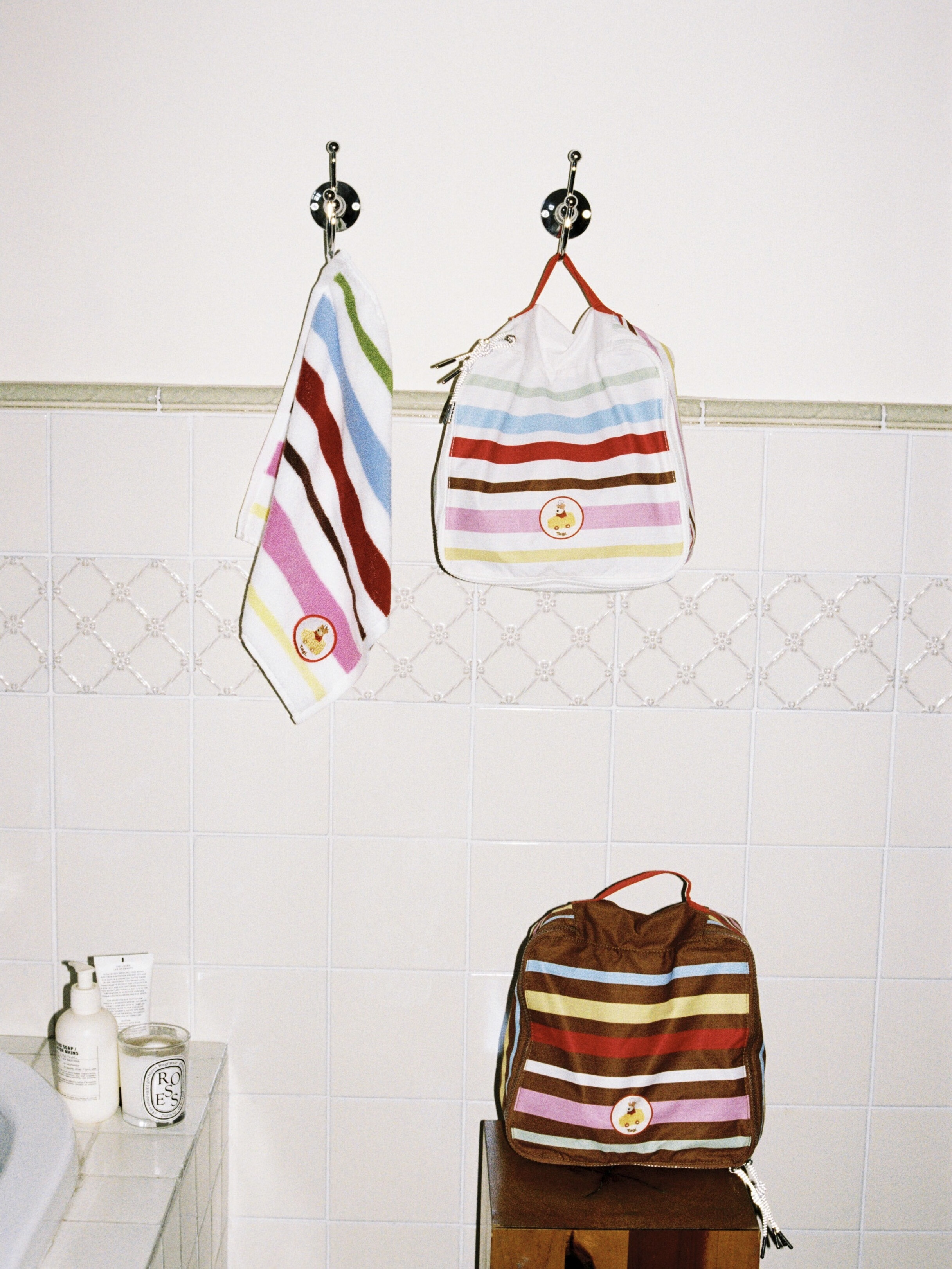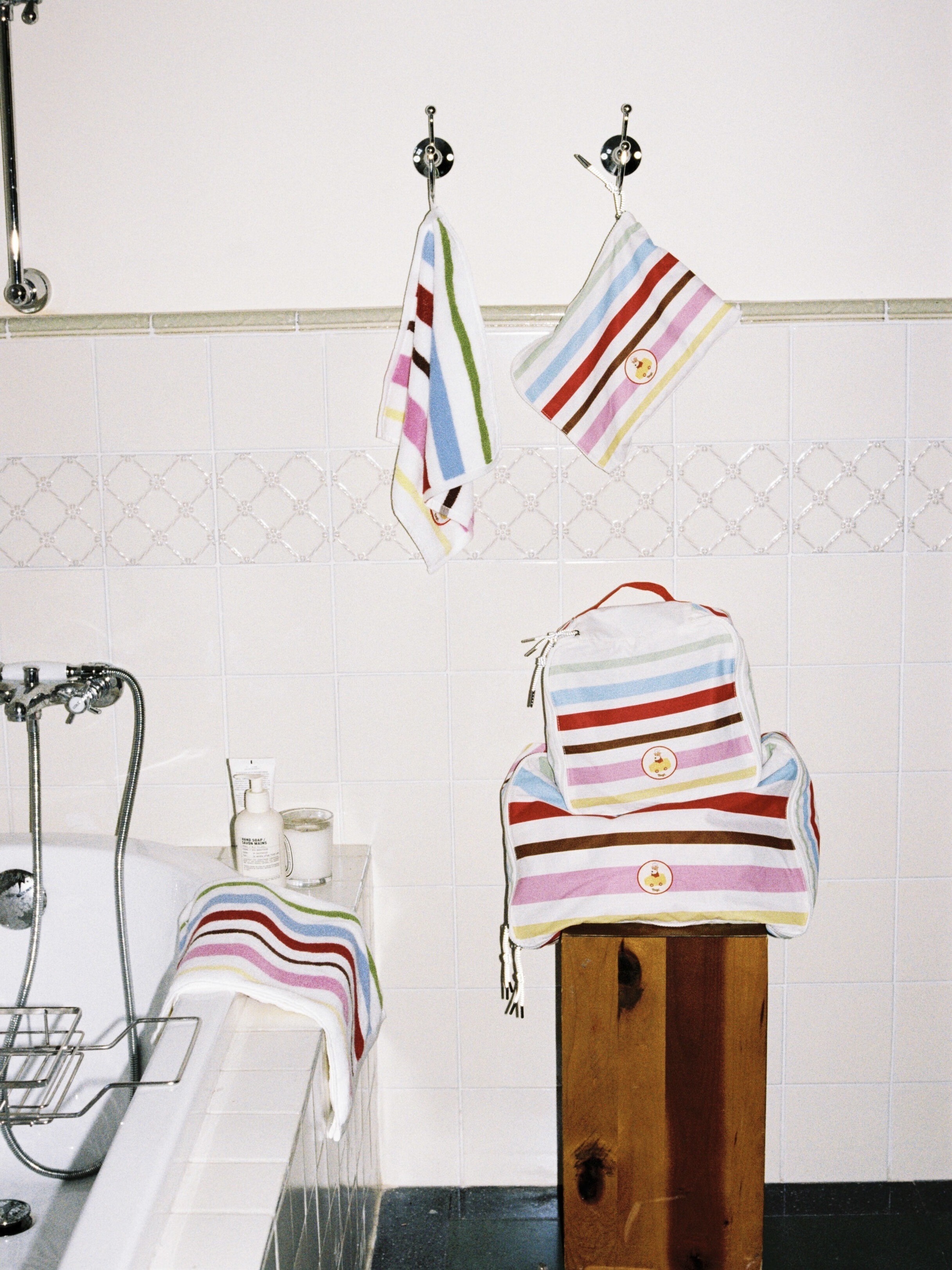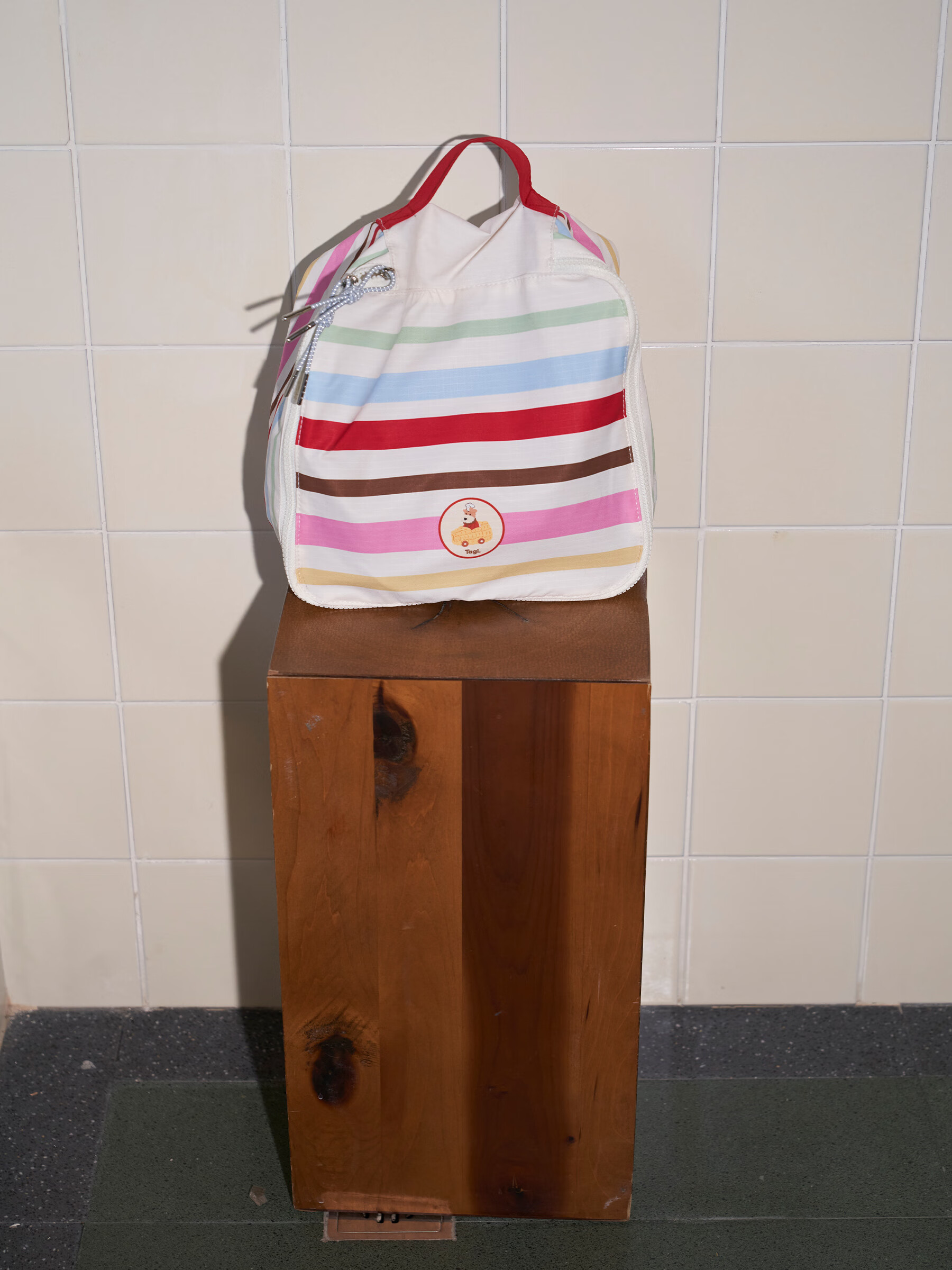 Tagi.Puppy autumn and winter cute portable storage striped toiletry bag storage travel bag striped vanilla popcorn medium size