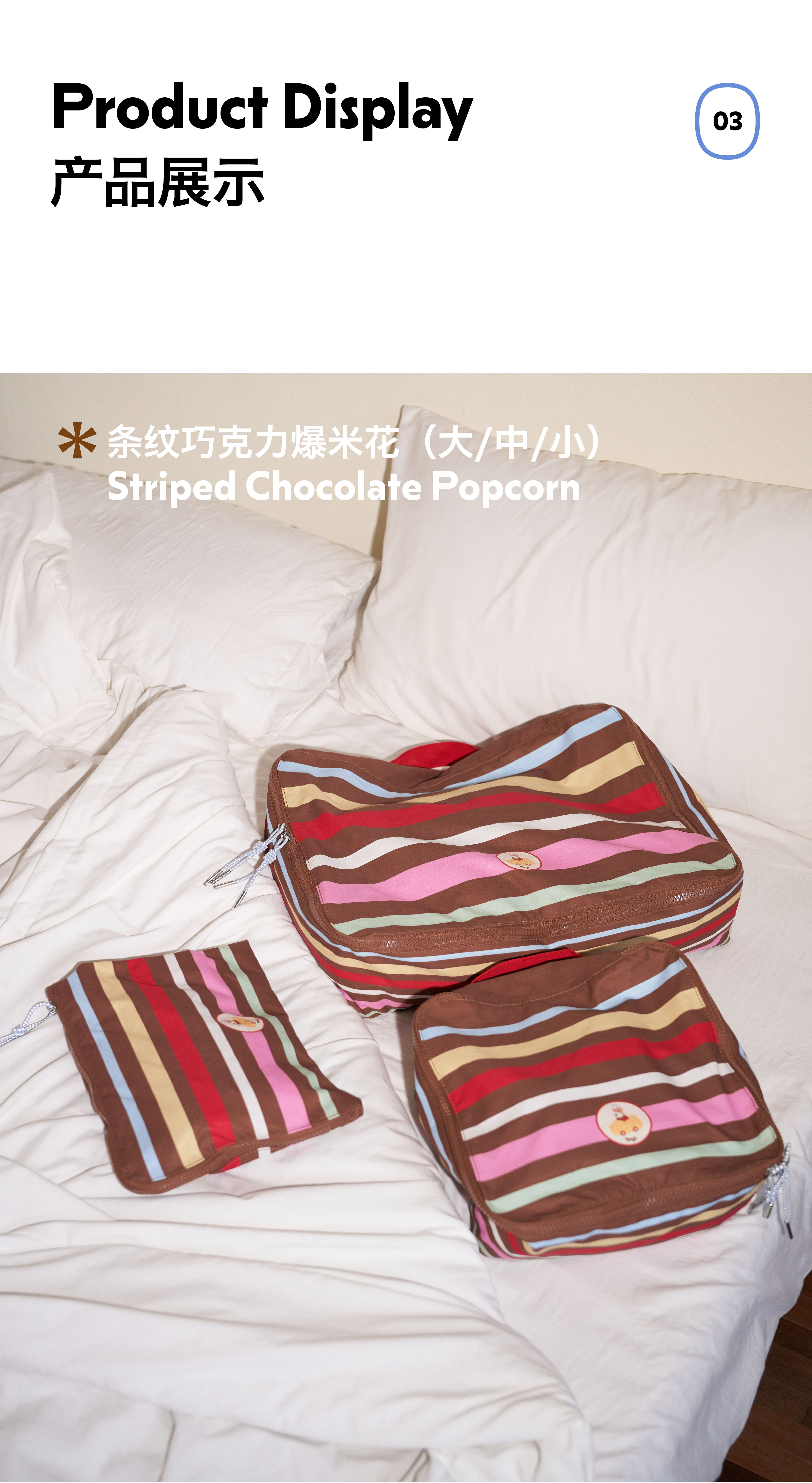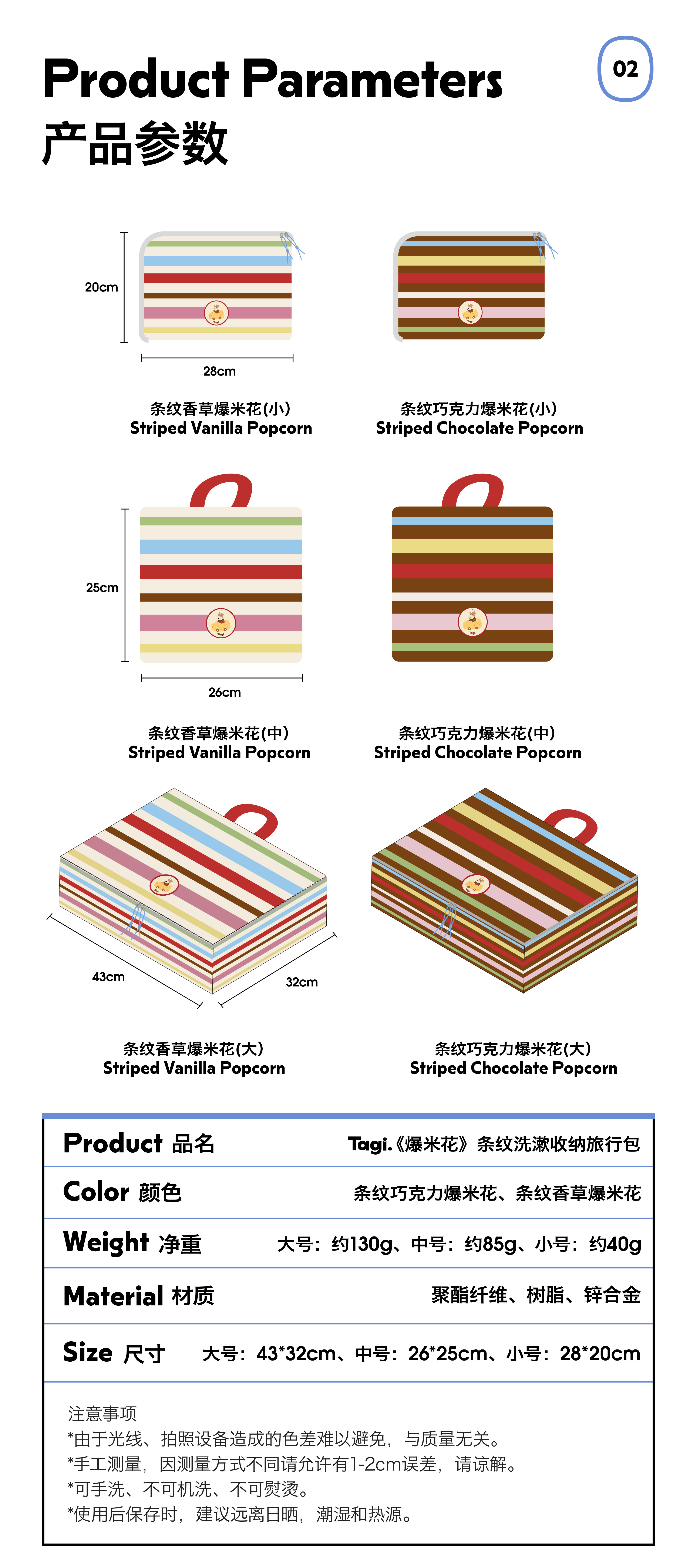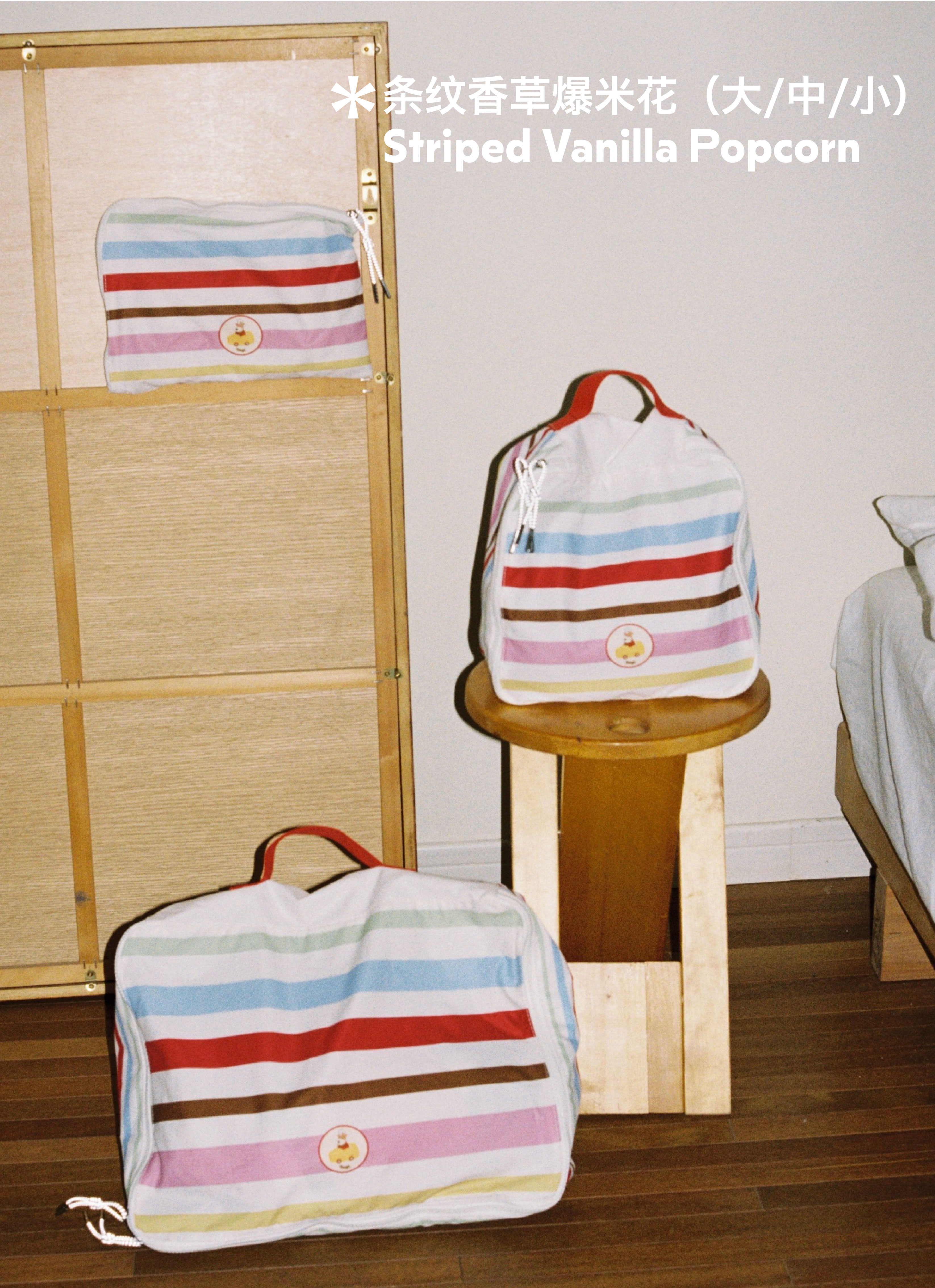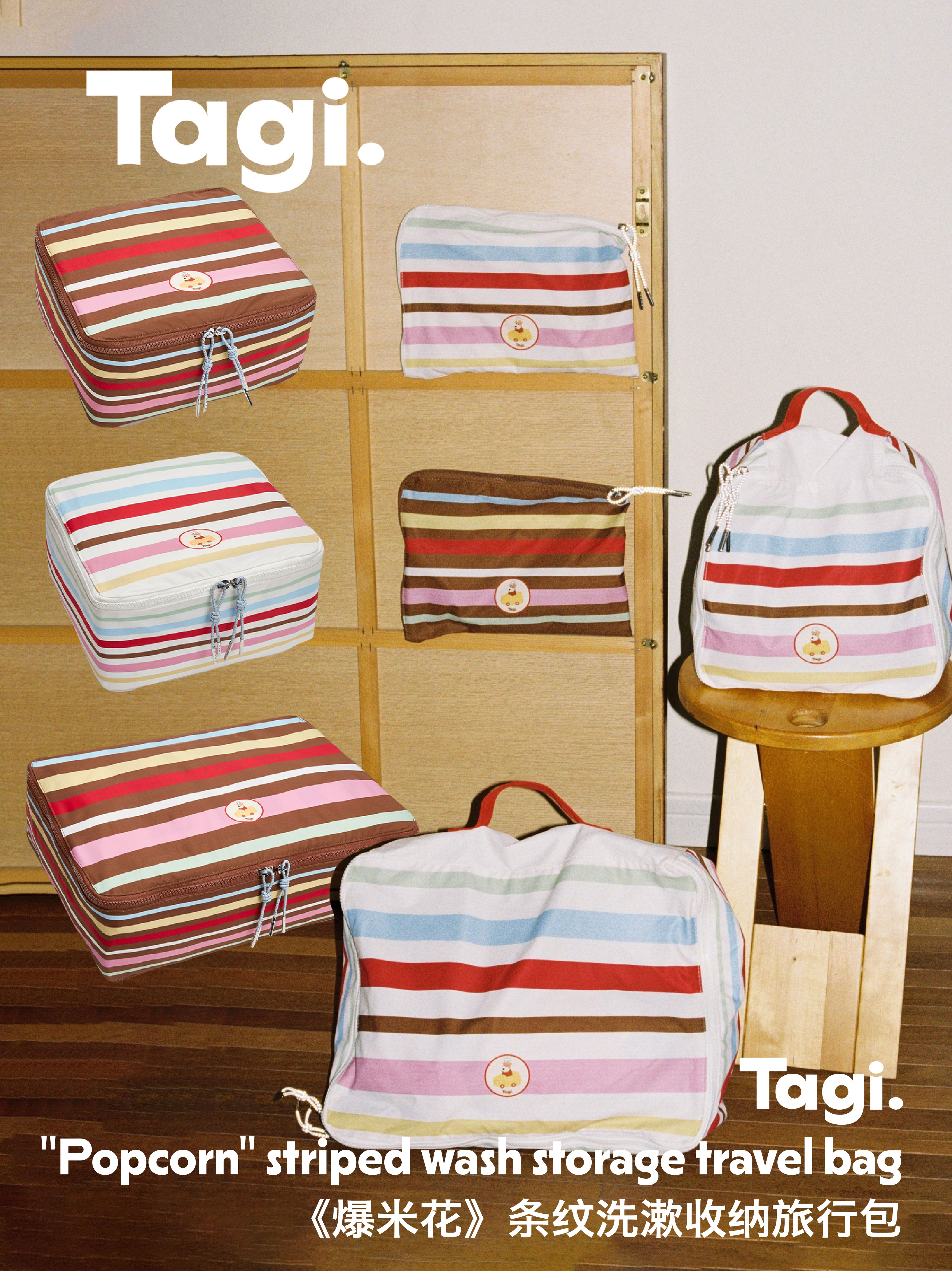 Tagi.<Popcorn>Puppy autumn and winter cute portable storage striped toiletry bag storage travel bag striped vanilla popcorn medium size