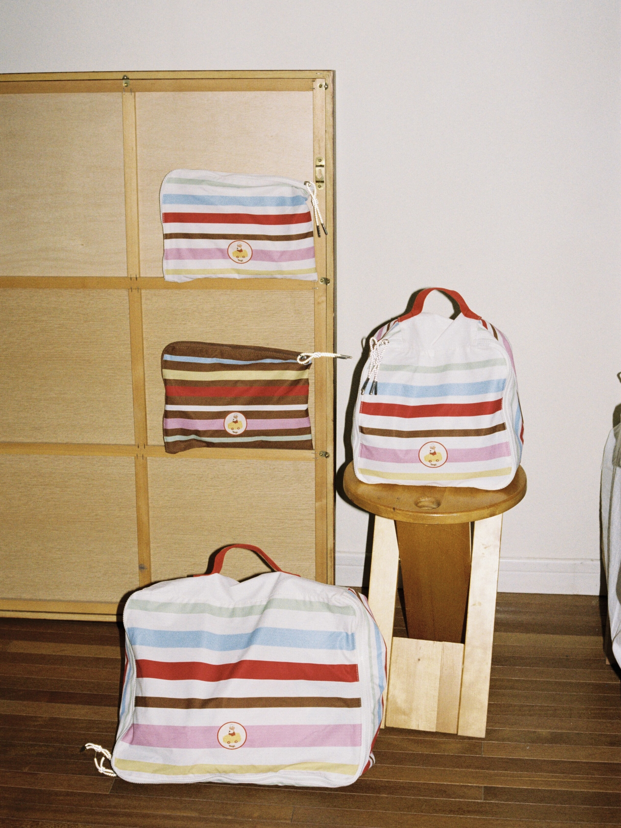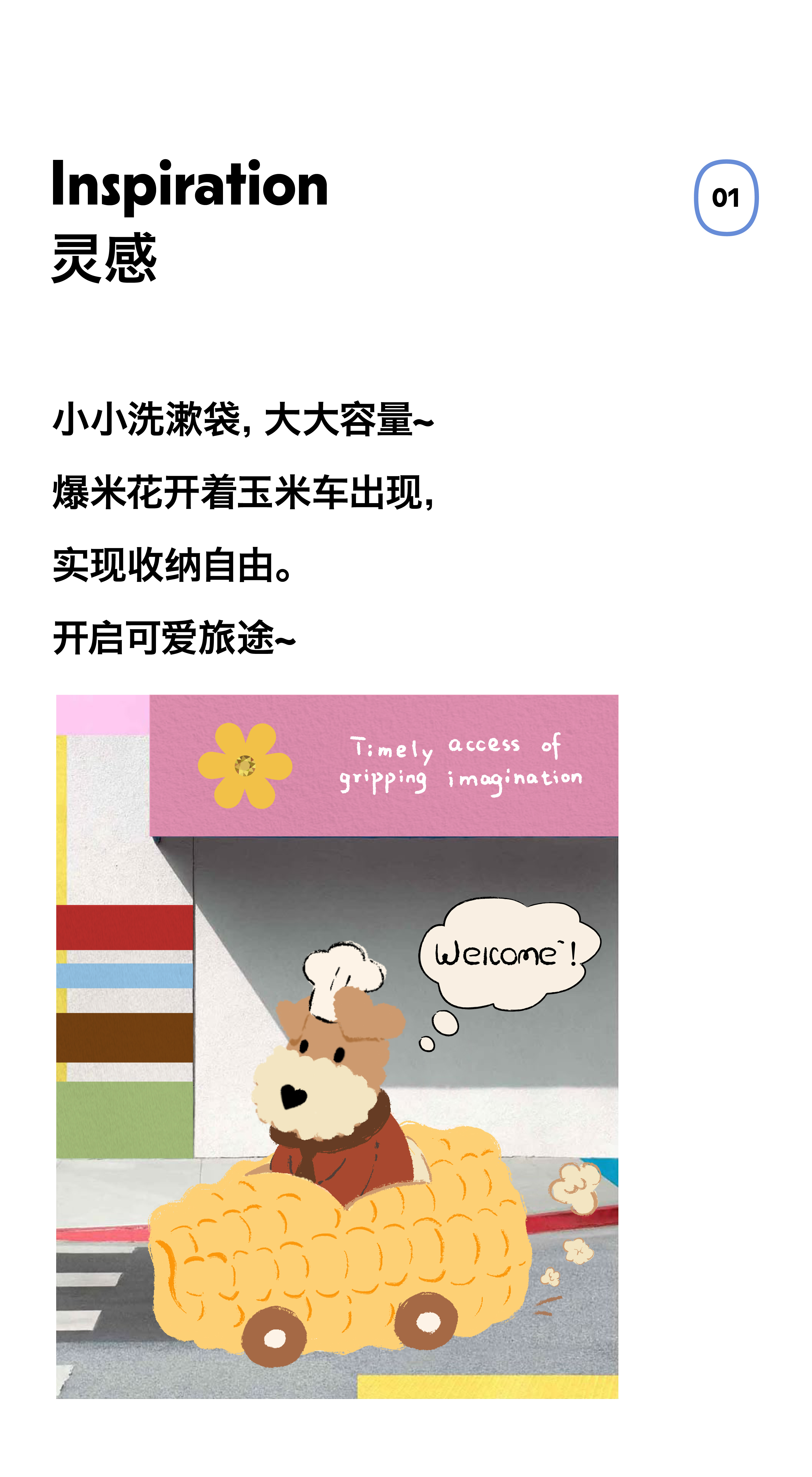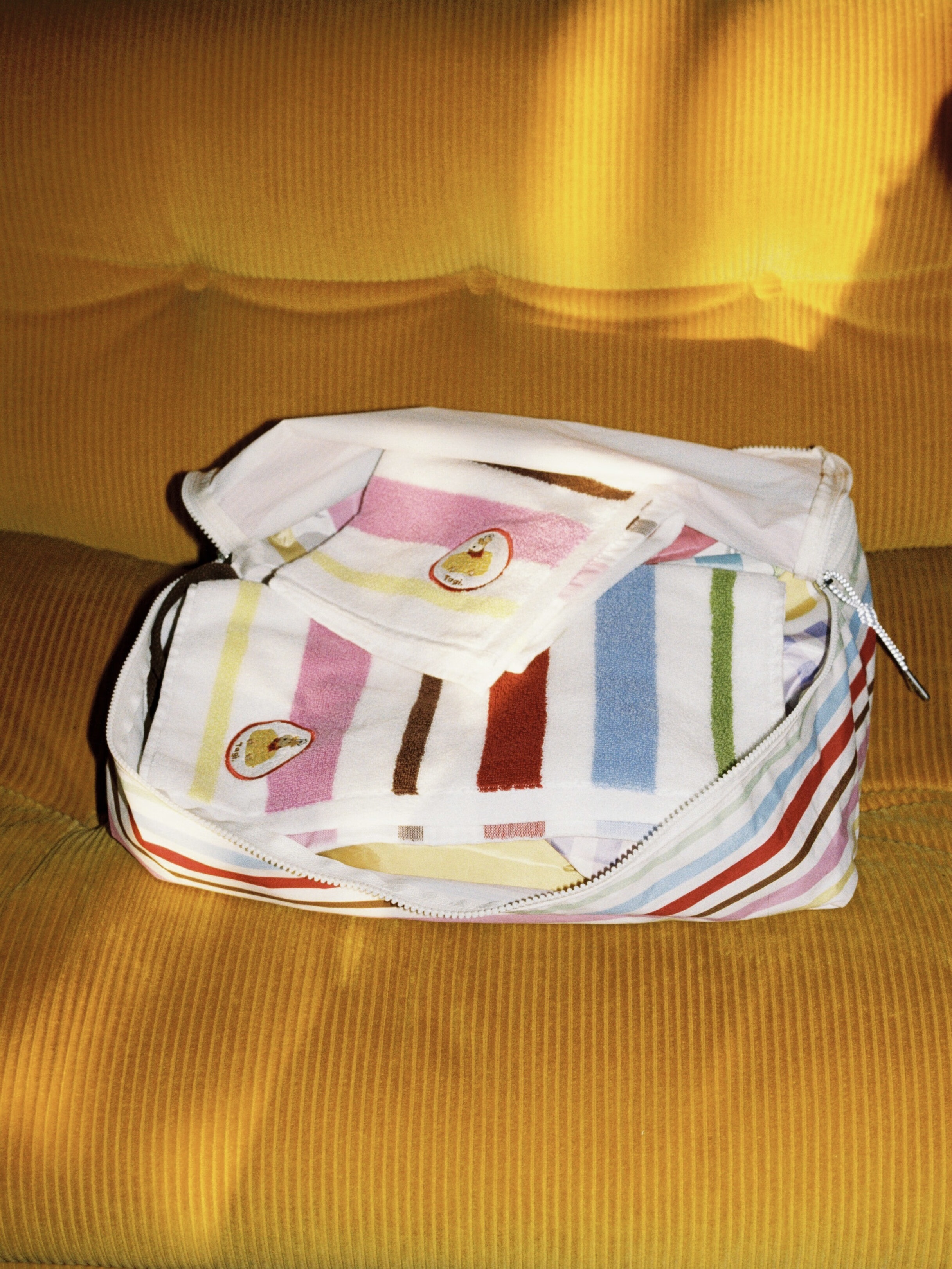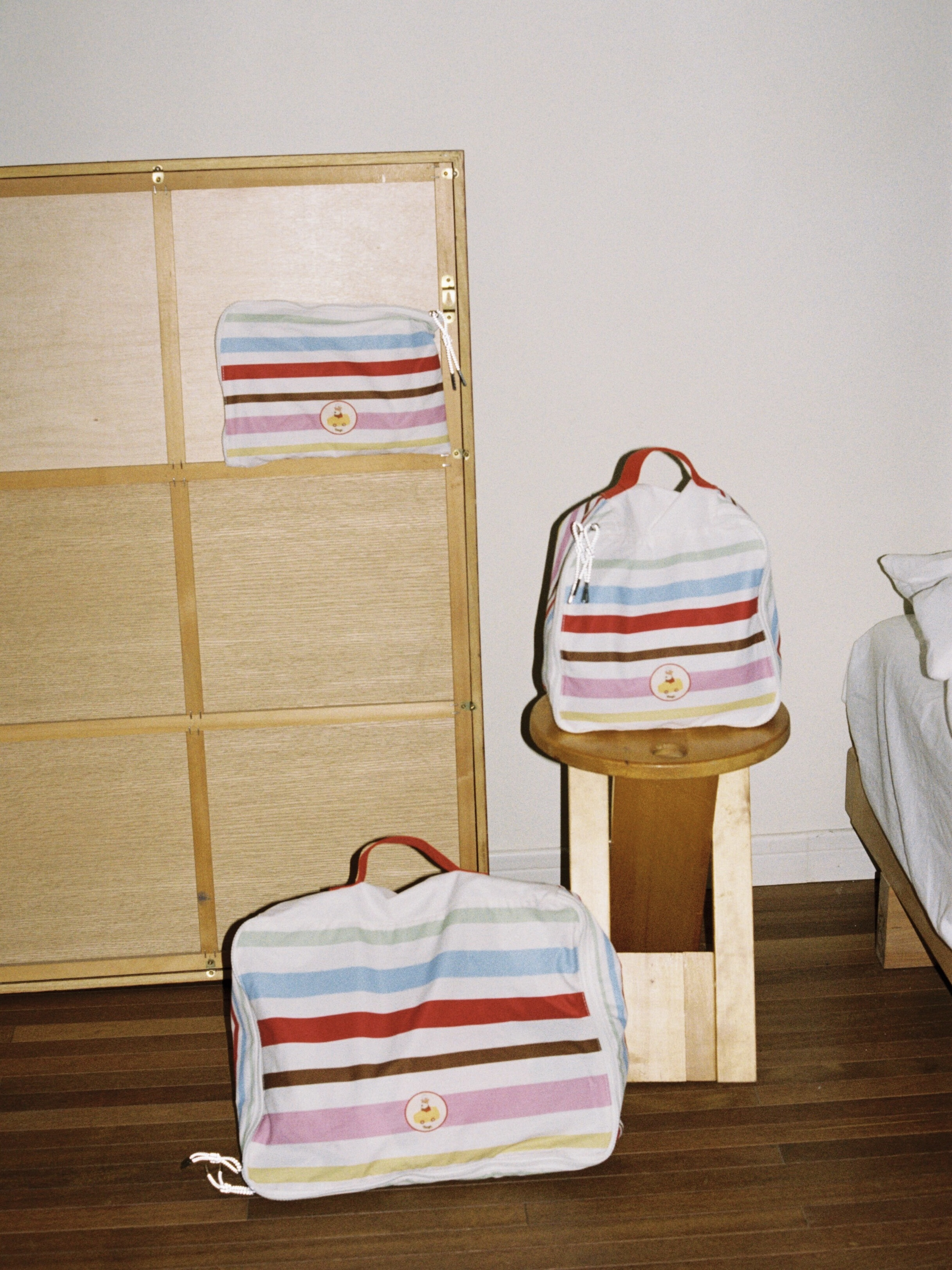 Tagi.<Popcorn>Puppy autumn and winter cute portable storage striped toiletry bag storage travel bag striped vanilla popcorn medium size