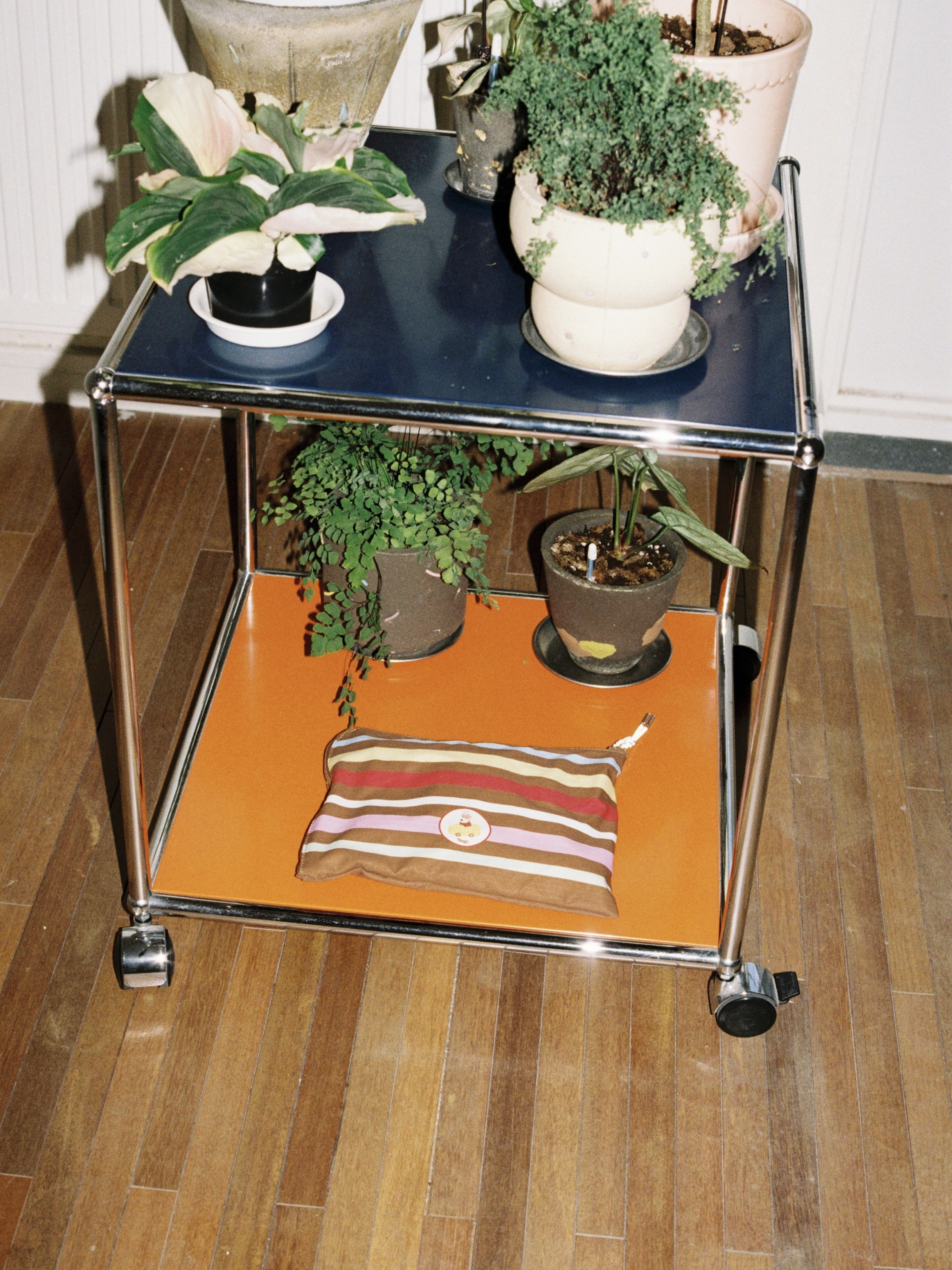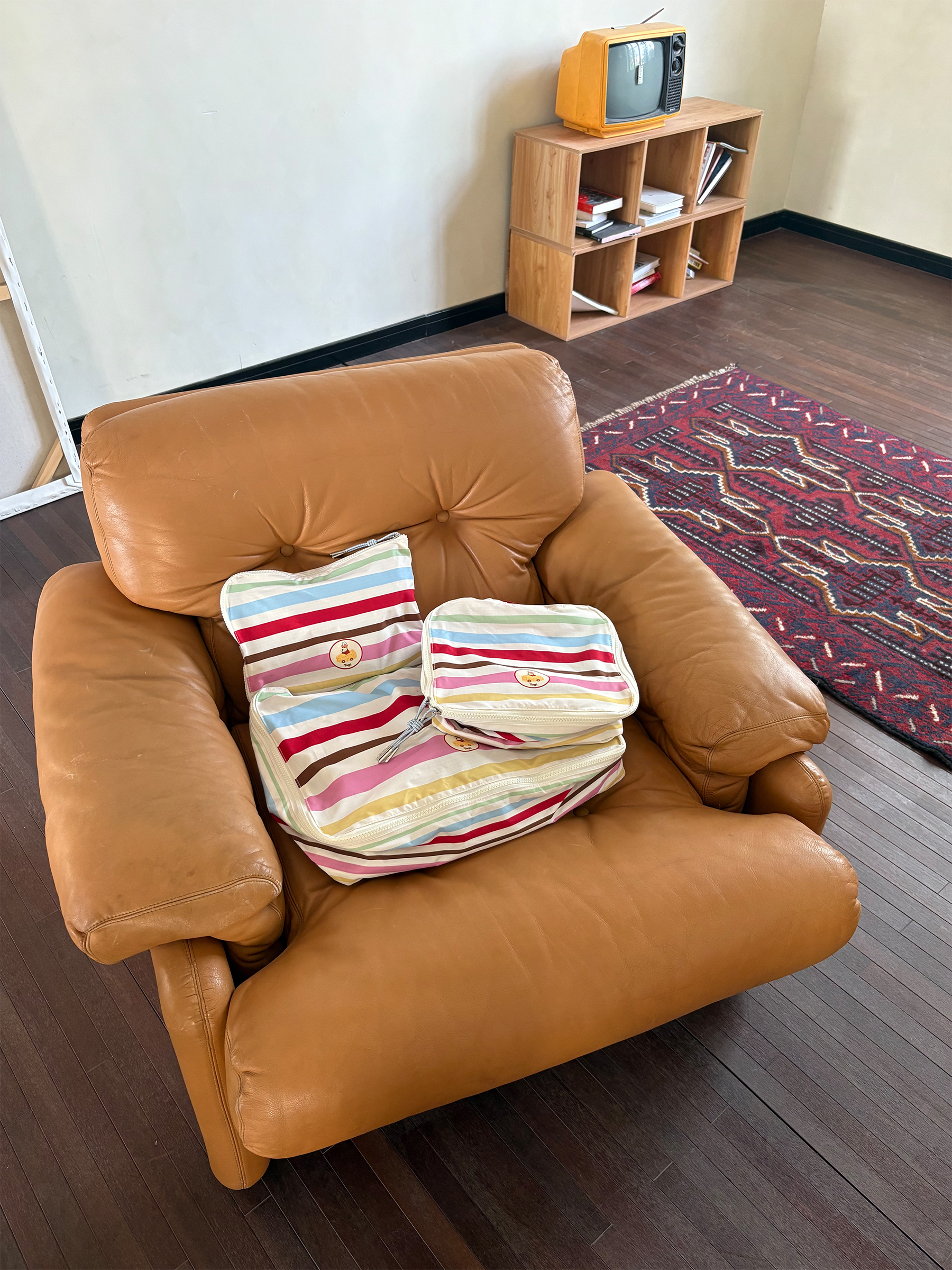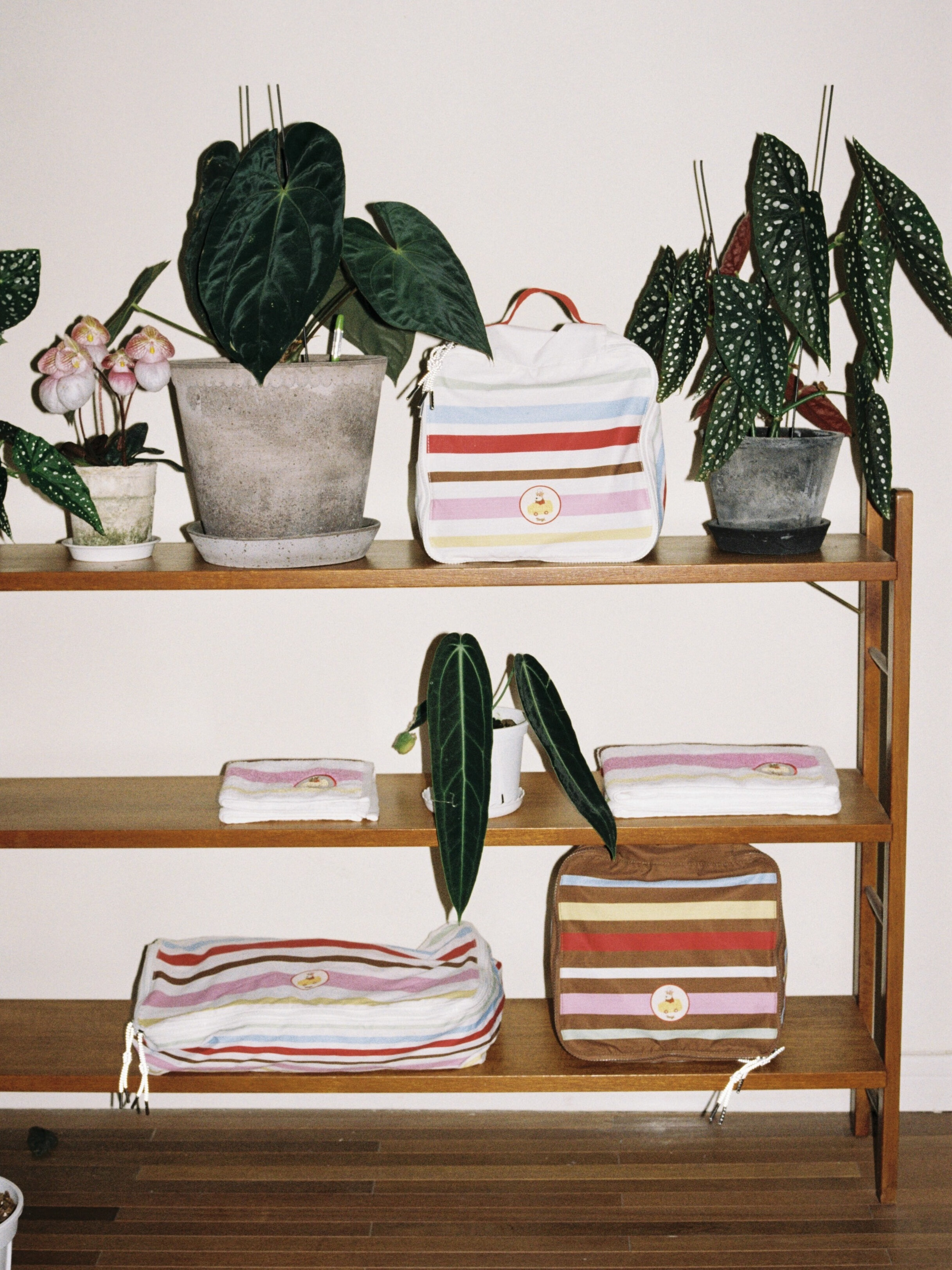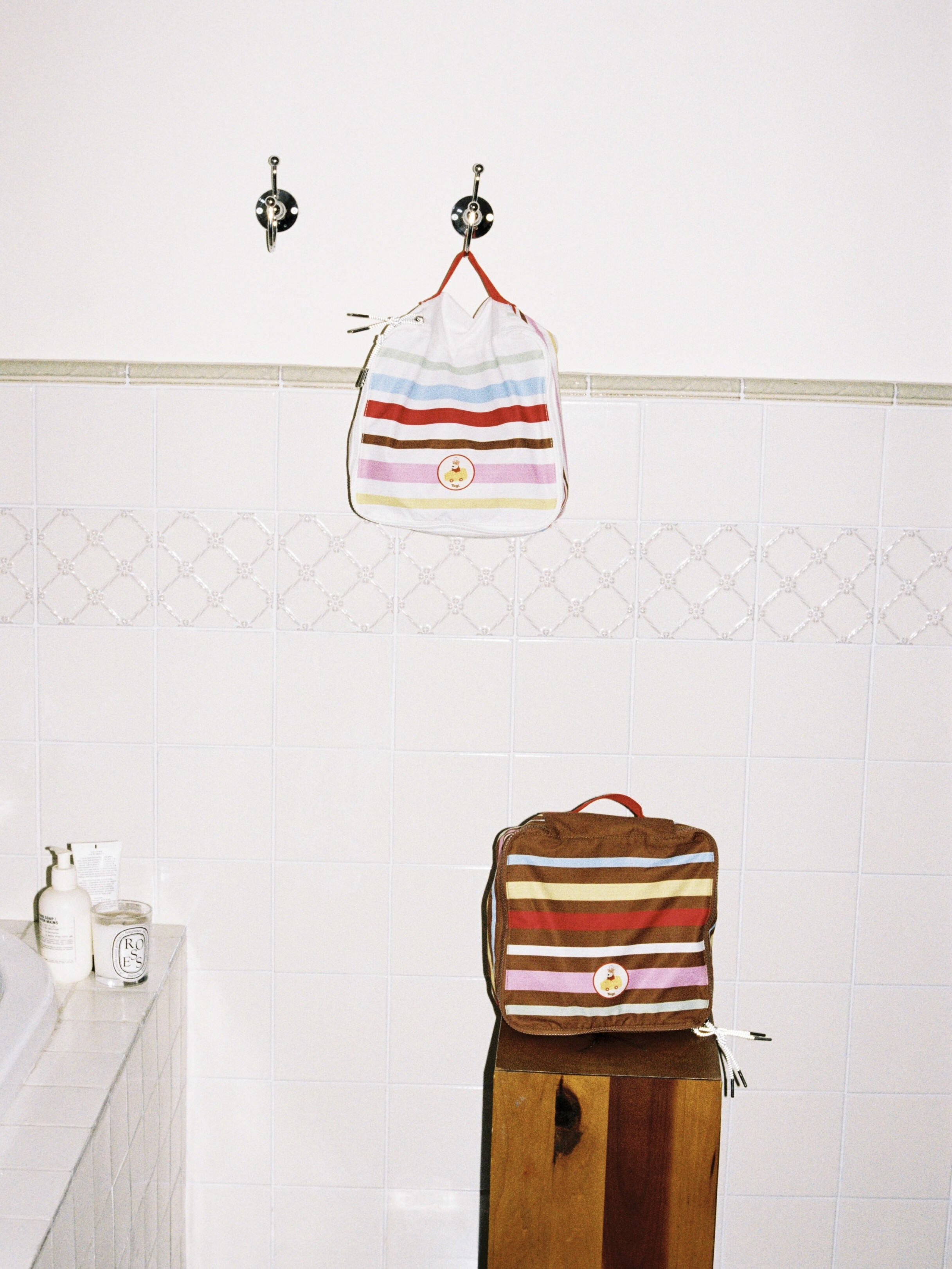 Tagi.<Popcorn>Puppy autumn and winter cute portable storage striped toiletry bag storage travel bag striped vanilla popcorn medium size