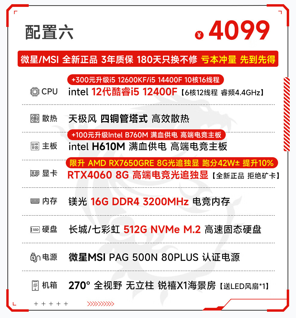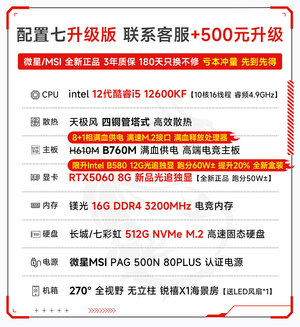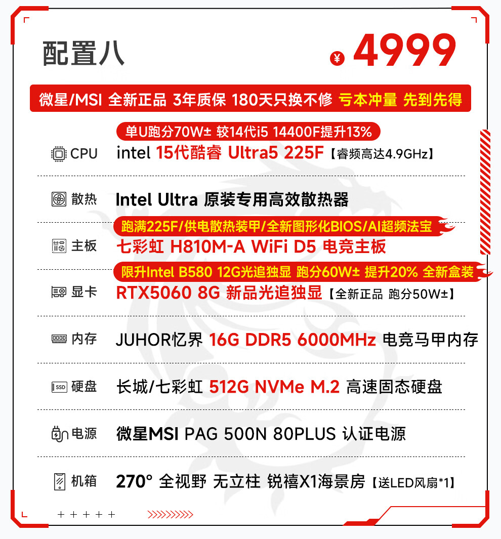 MSI i5 12400F/13400F/RTX3060/4060/5060Ti Black Myth Wukong game console computer desktop assembly computer host DIY complete machine configuration eight Ultra5 225F丨RTX5060 8G