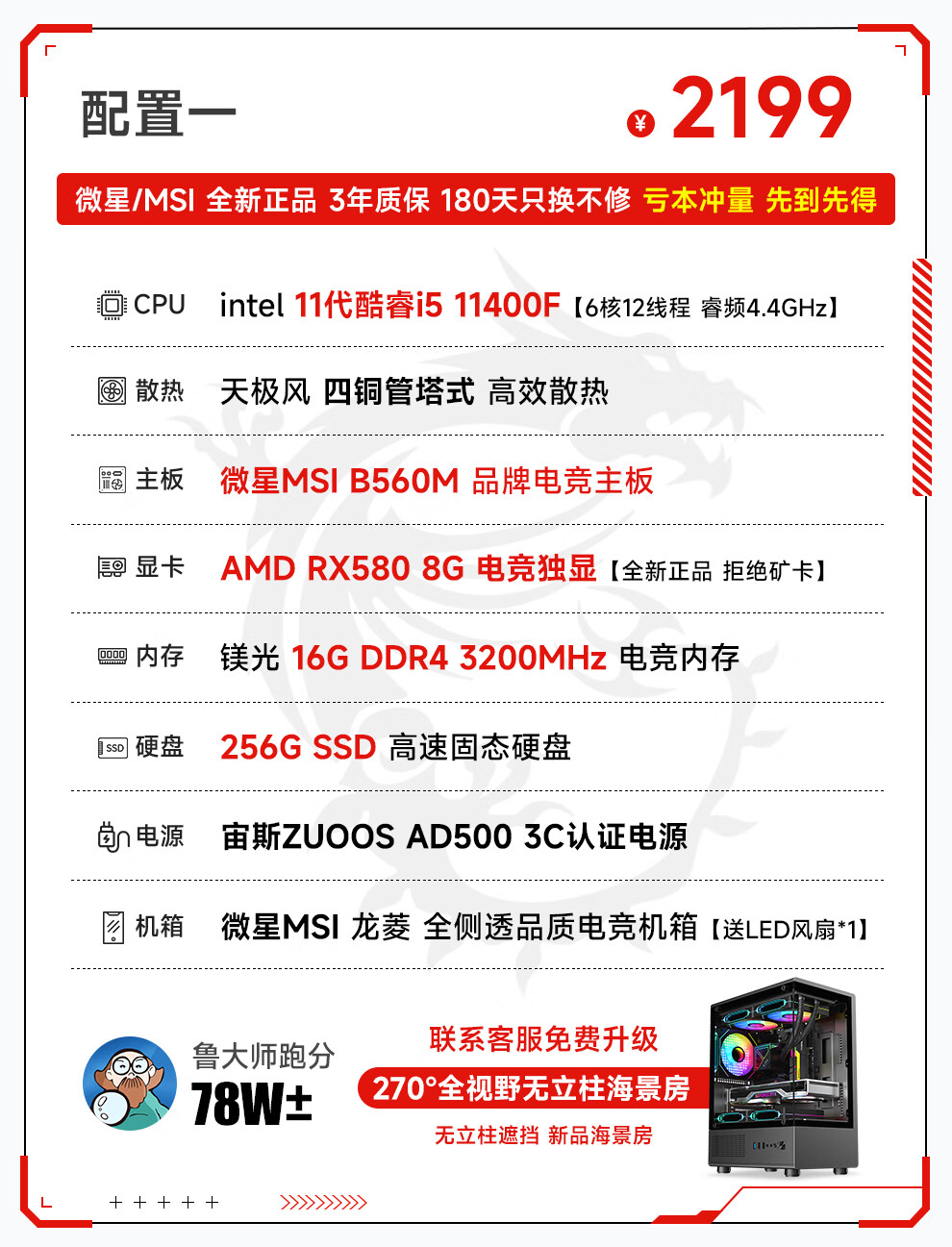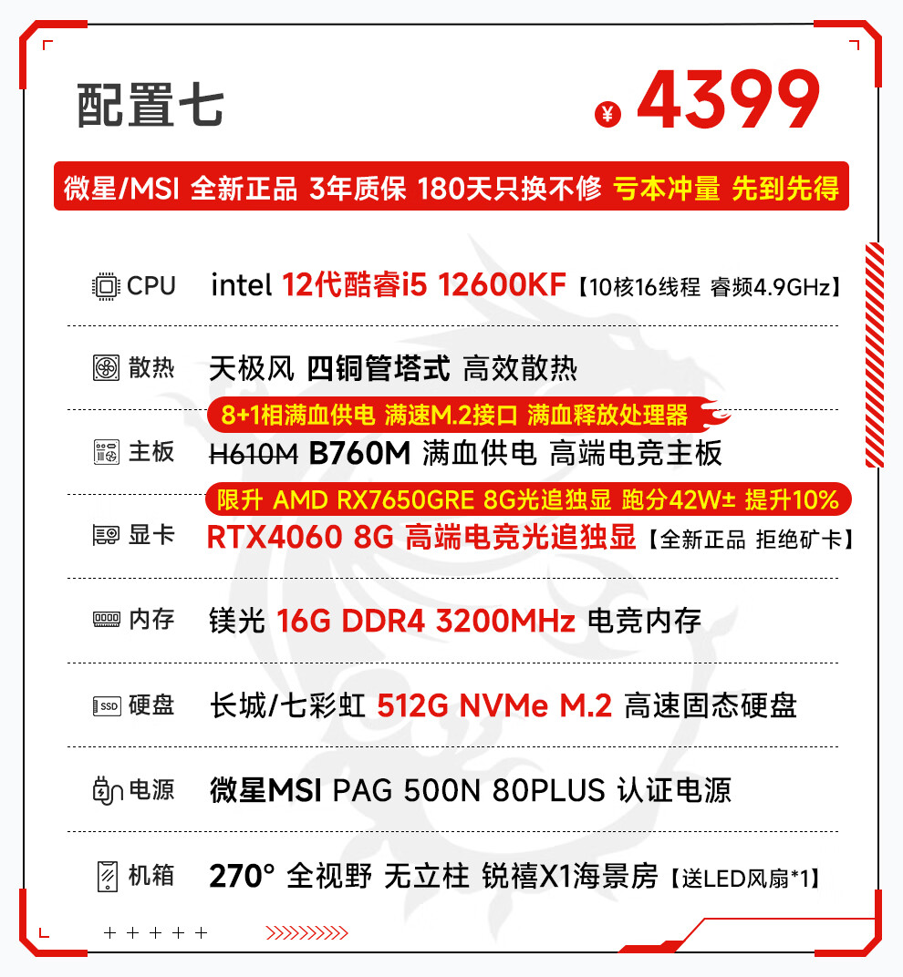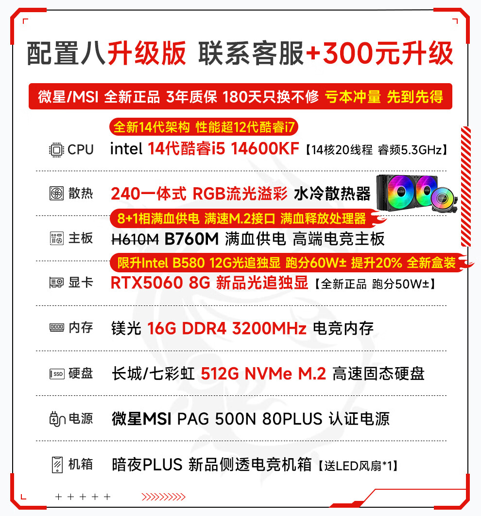 MSI i5 12400F/13400F/RTX3060/4060/5060Ti Black Myth Wukong game console computer desktop assembly computer host DIY complete machine configuration eight Ultra5 225F丨RTX5060 8G