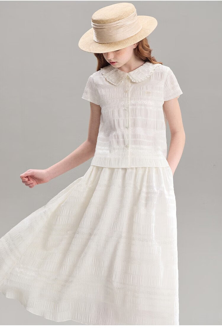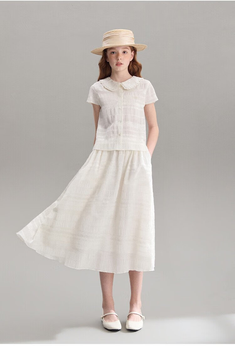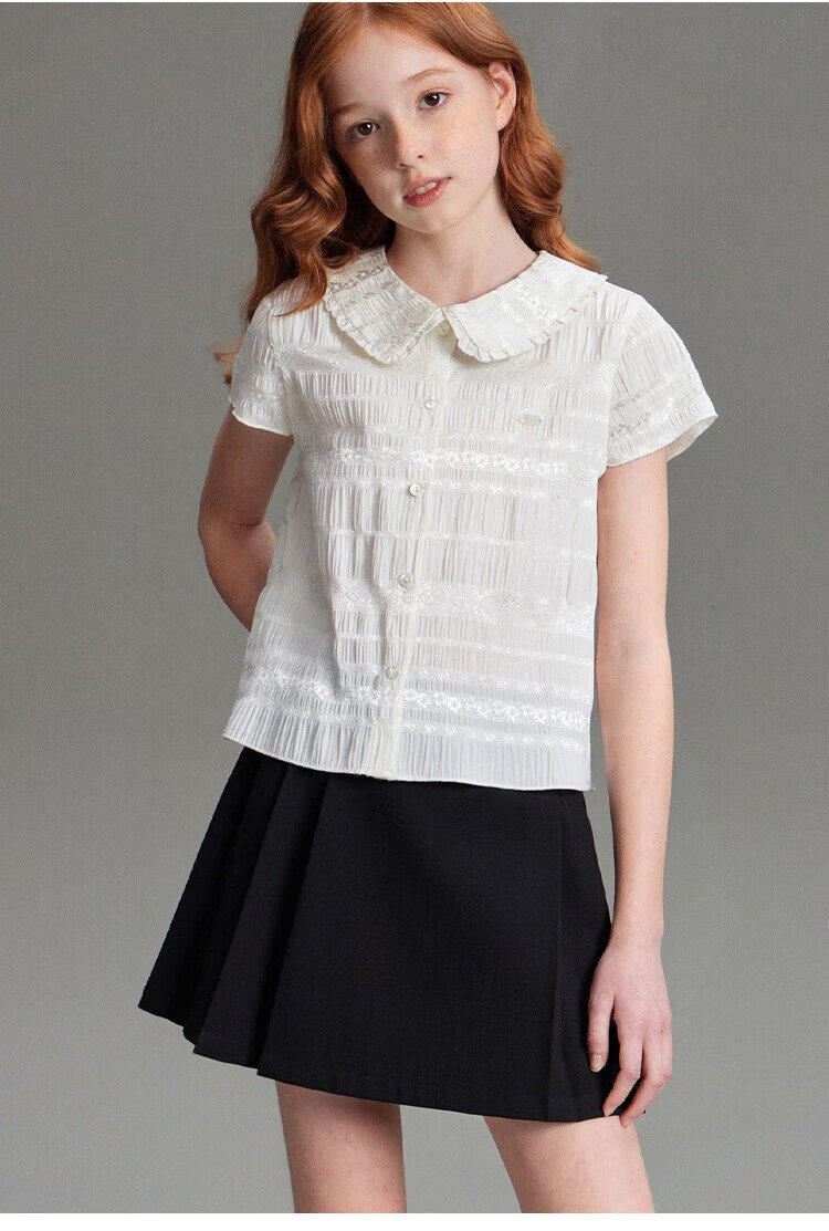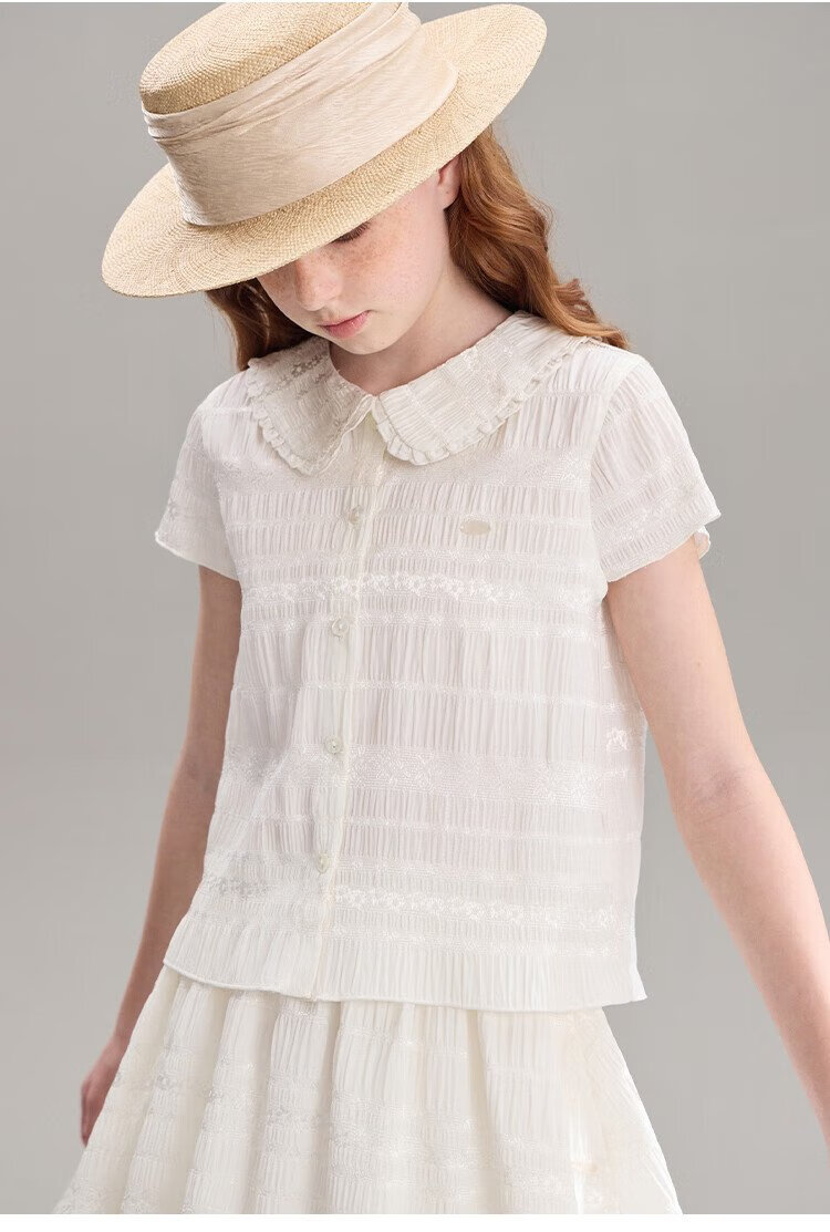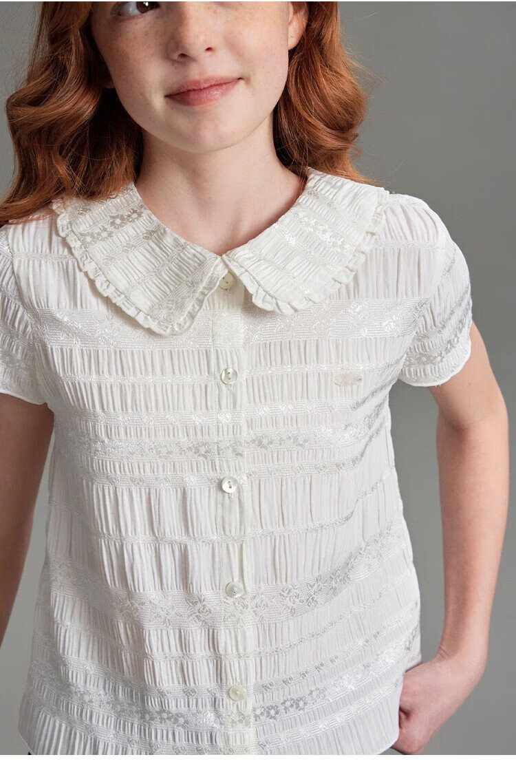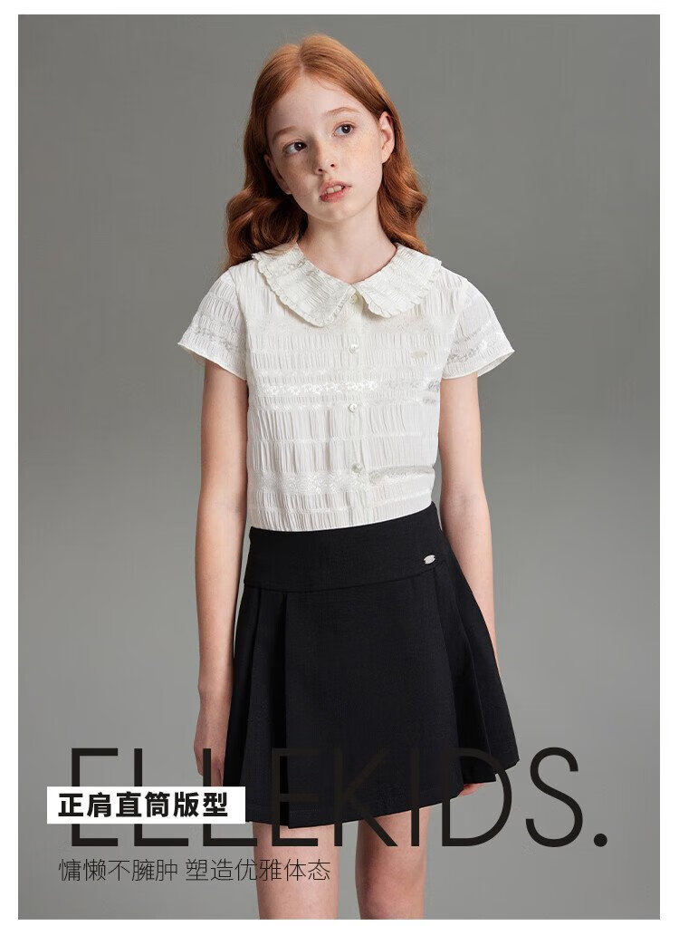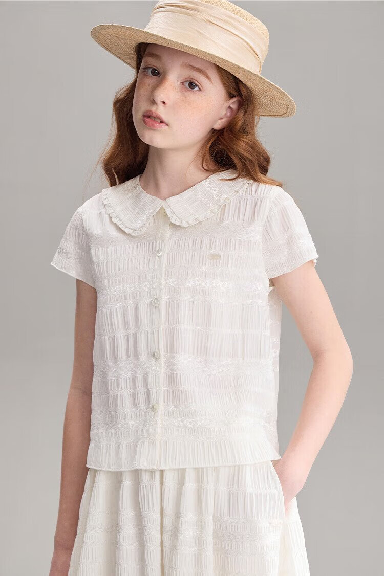 ELLE KIDS children's clothing floral jacquard short-sleeved shirt girls summer new French elegant resort style top pearl white 165 (M)