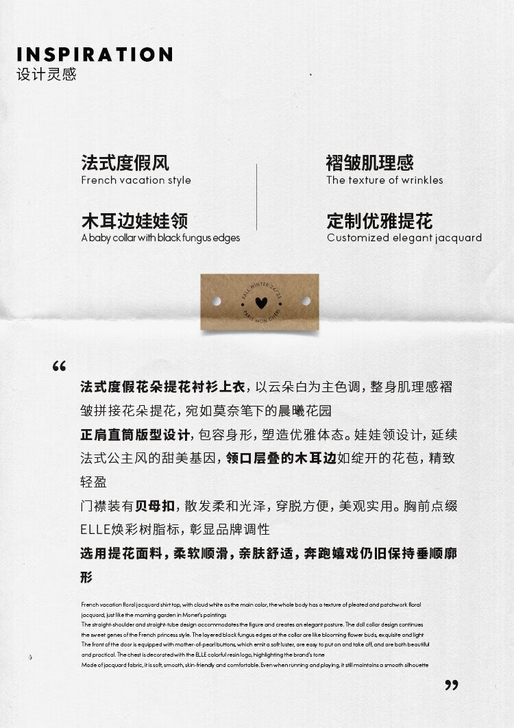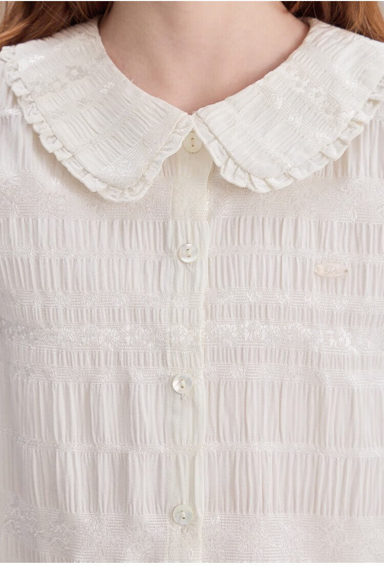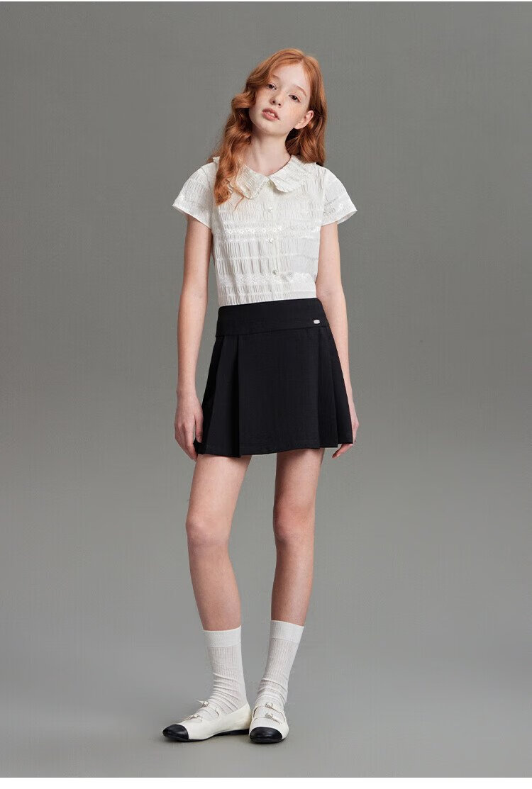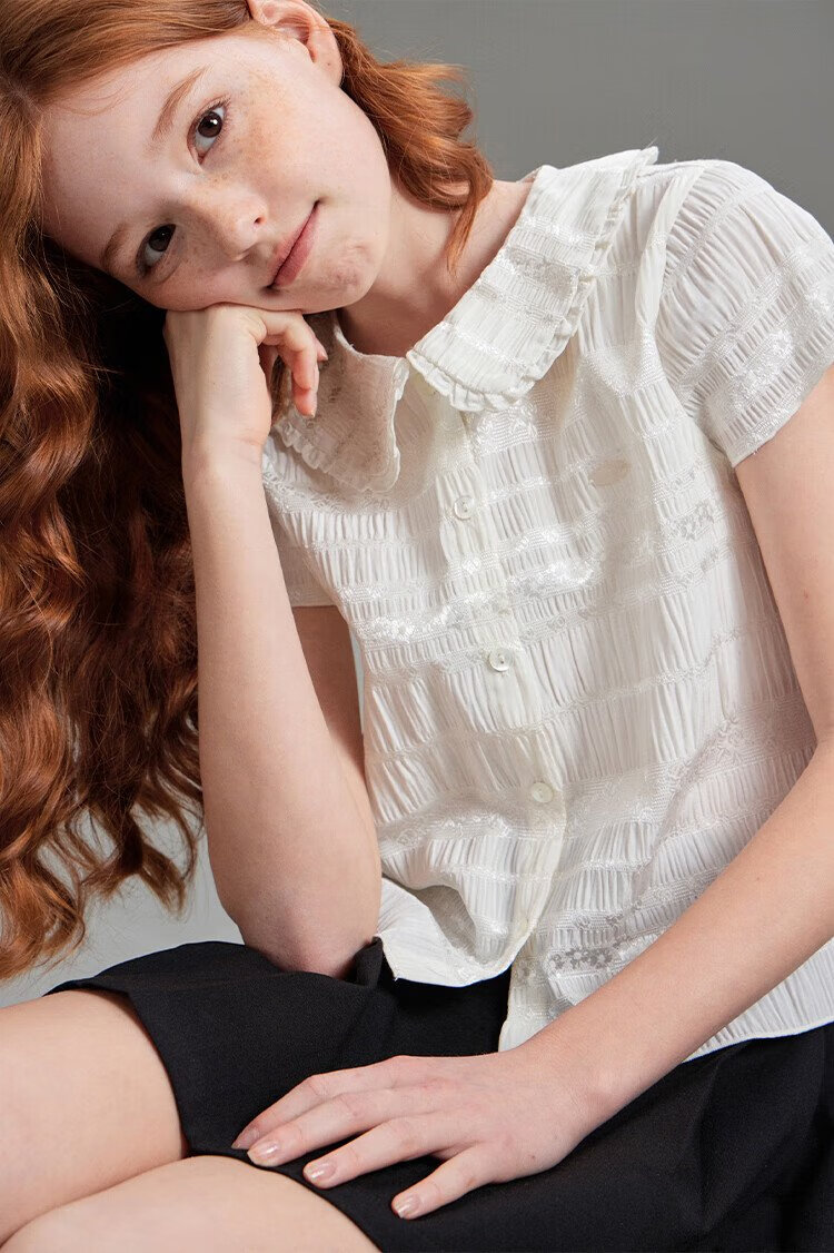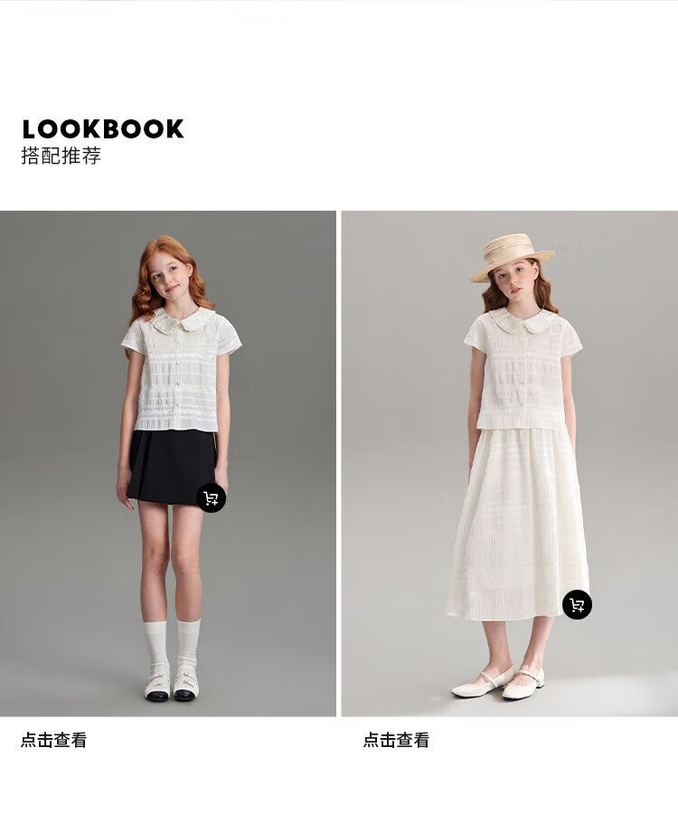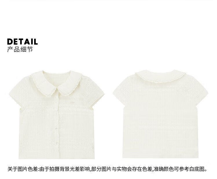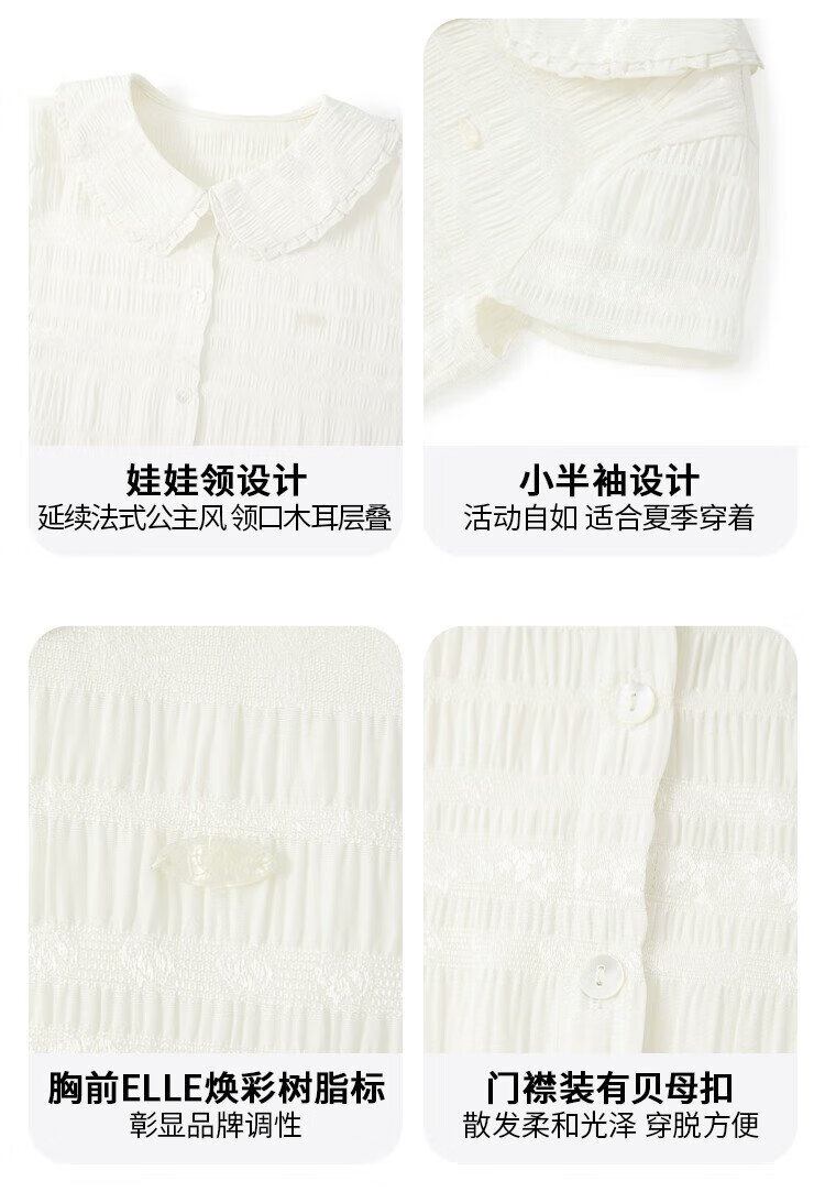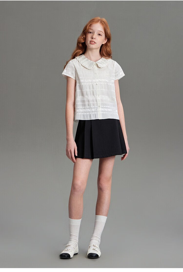 ELLE KIDS children's clothing floral jacquard short-sleeved shirt girls summer new French elegant resort style top pearl white 165 (M)