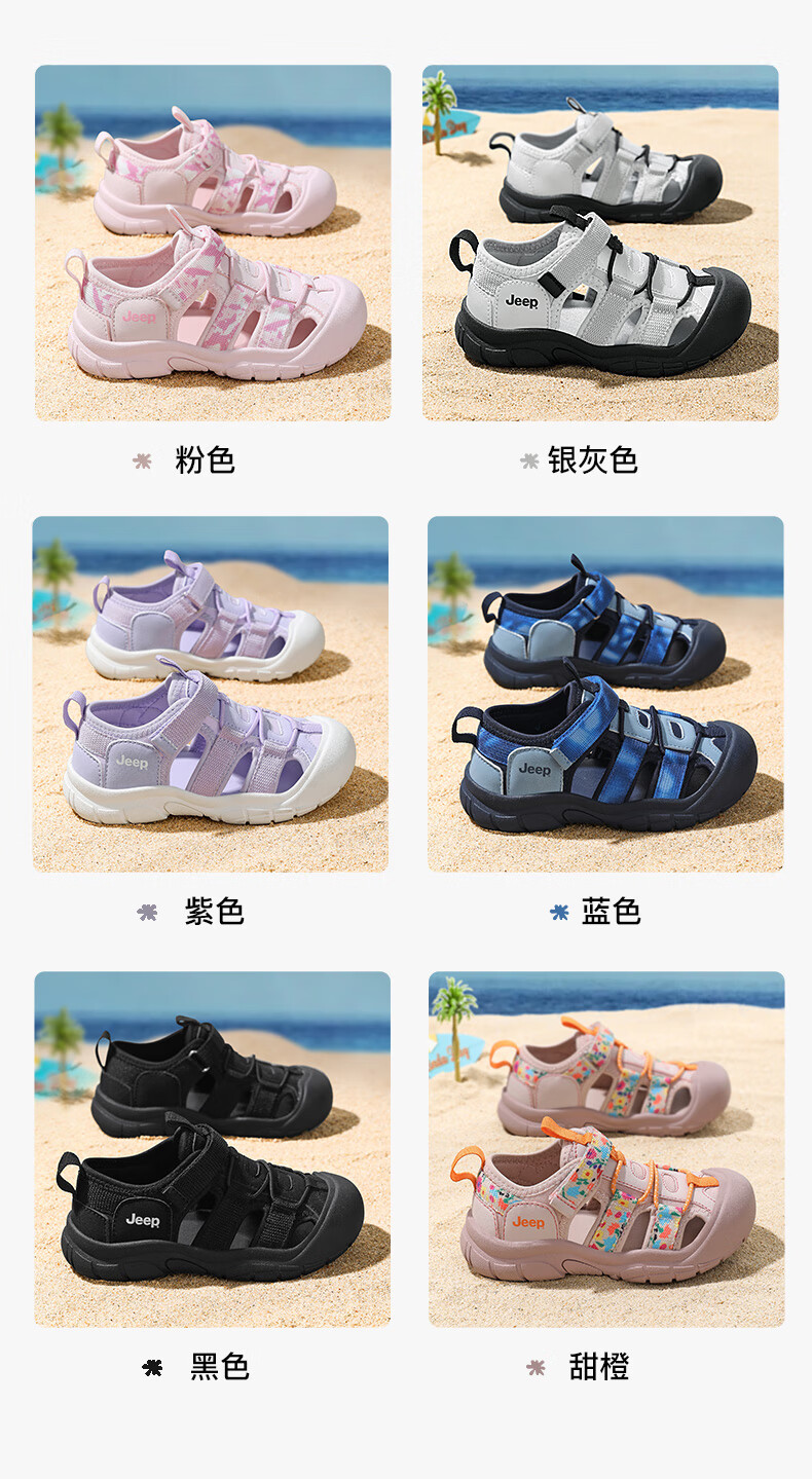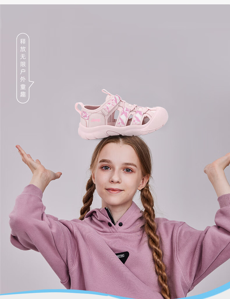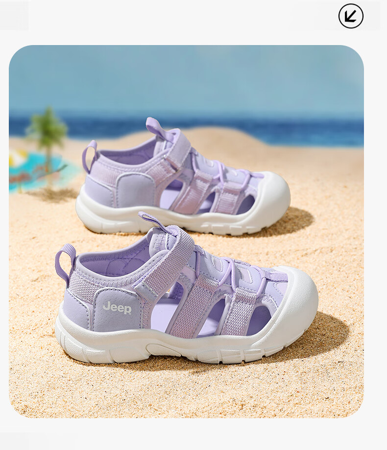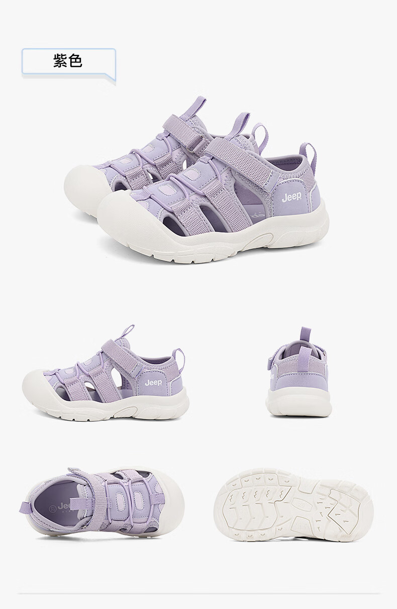 Jeep children's sandals, outdoor boys' breathable river-tracing shoes, 2025 summer new girls' non-slip toe beach shoes, purple 29, inner length of the shoes is about 17.6cm