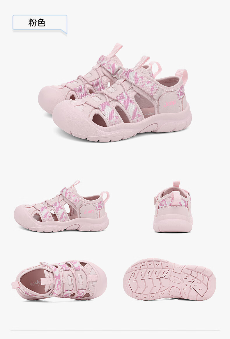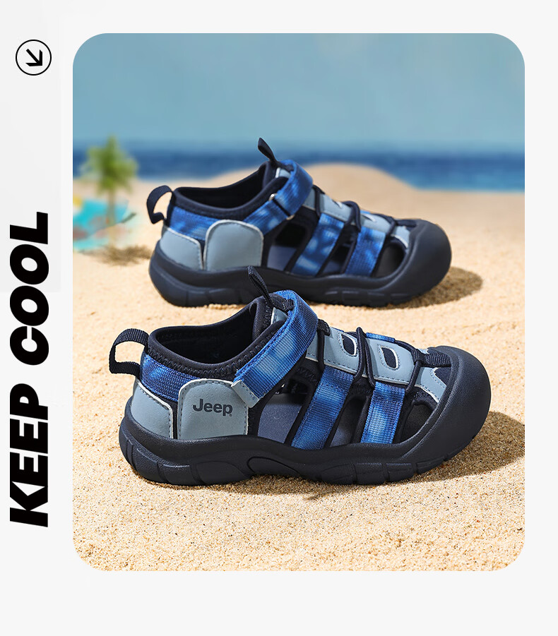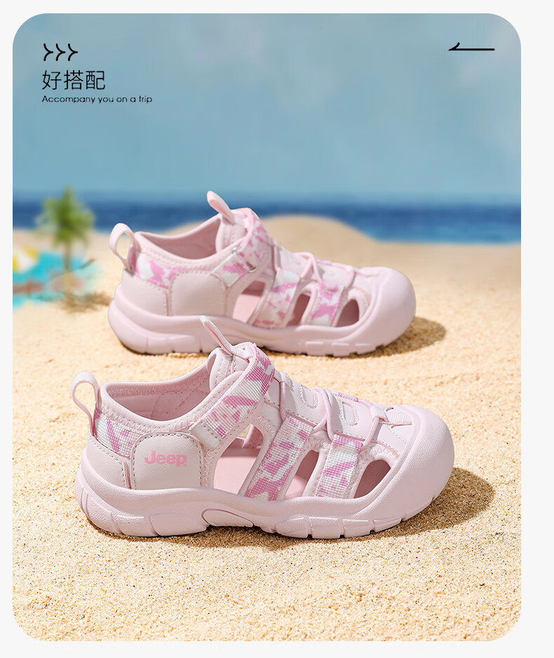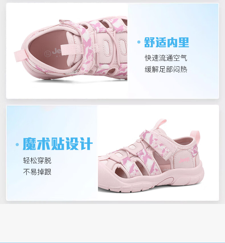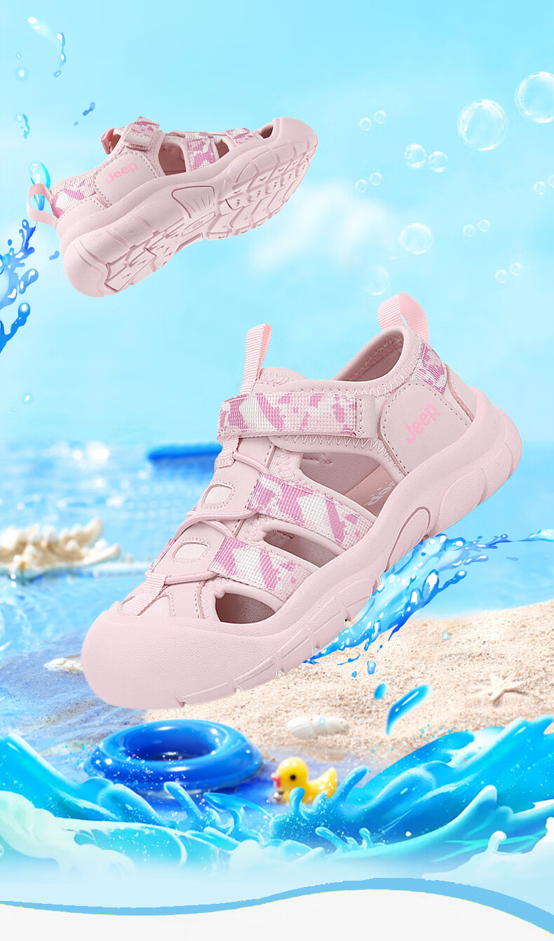 Jeep children's sandals, outdoor boys' breathable river-tracing shoes, 2025 summer new girls' non-slip toe beach shoes, purple 29, inner length of the shoes is about 17.6cm