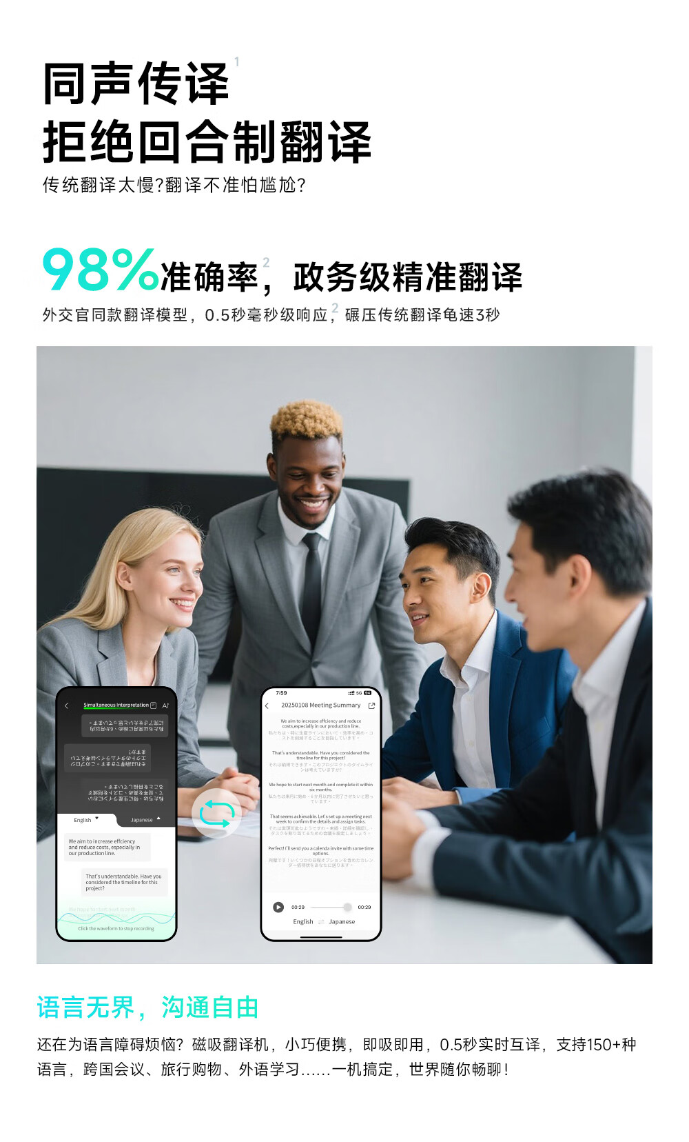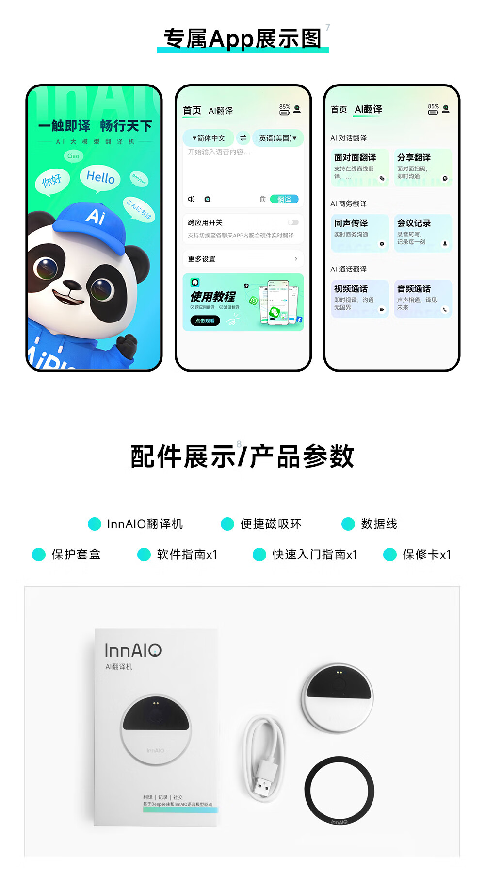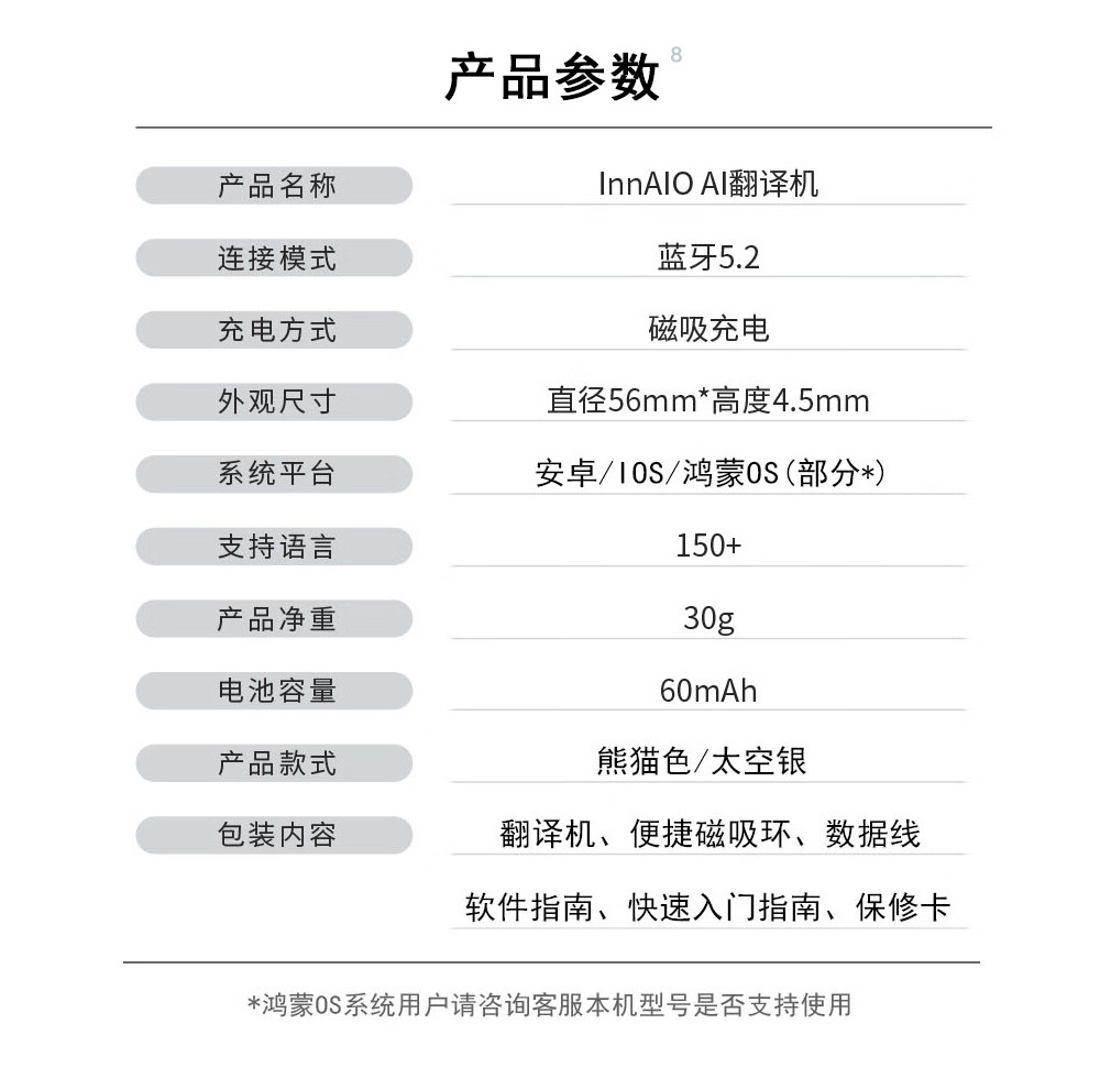 InnAIO Intelligent AI Translator Conference Real-time Translation Artifact Take You Abroad Portable Compact 150 Languages Small Language Simultaneous Translation Interpretation Go Abroad Take It Offline T9 Time and Space Silver