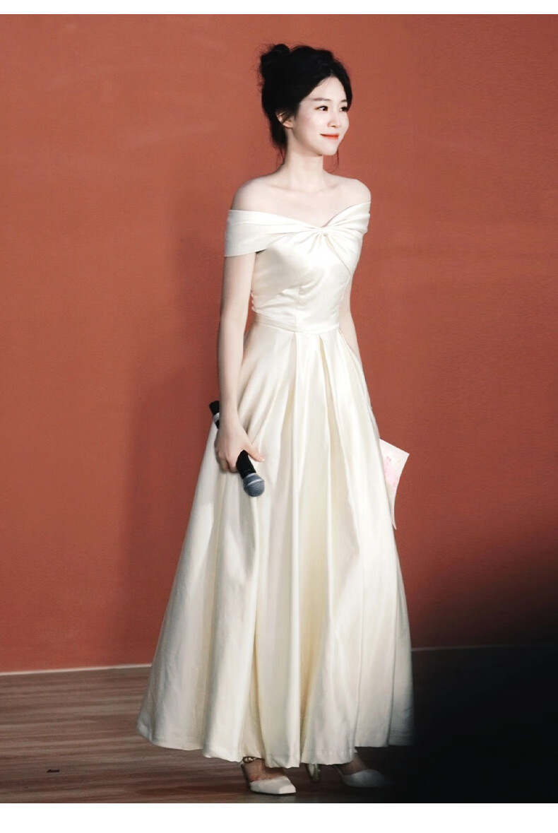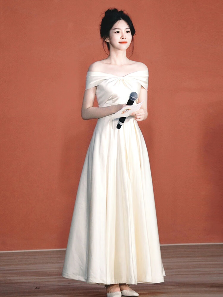 Really white evening dress for women, high-end light luxury, niche engagement, certificate registration, small person's art exam graduation, can be worn at ordinary times, white long S