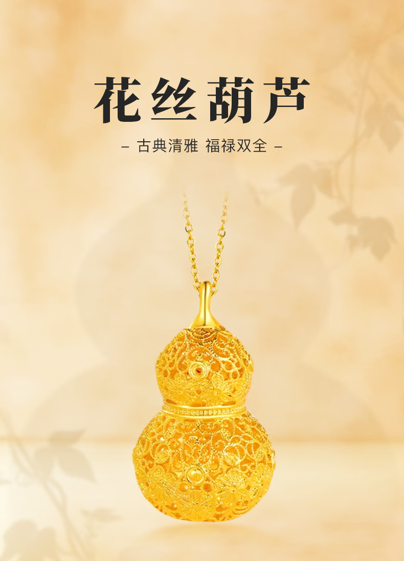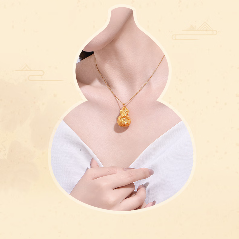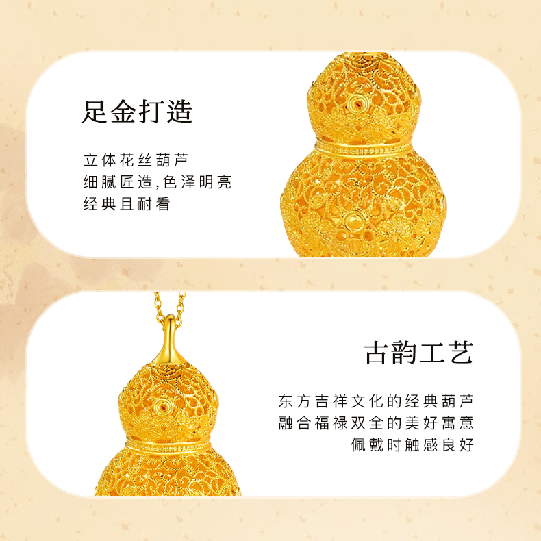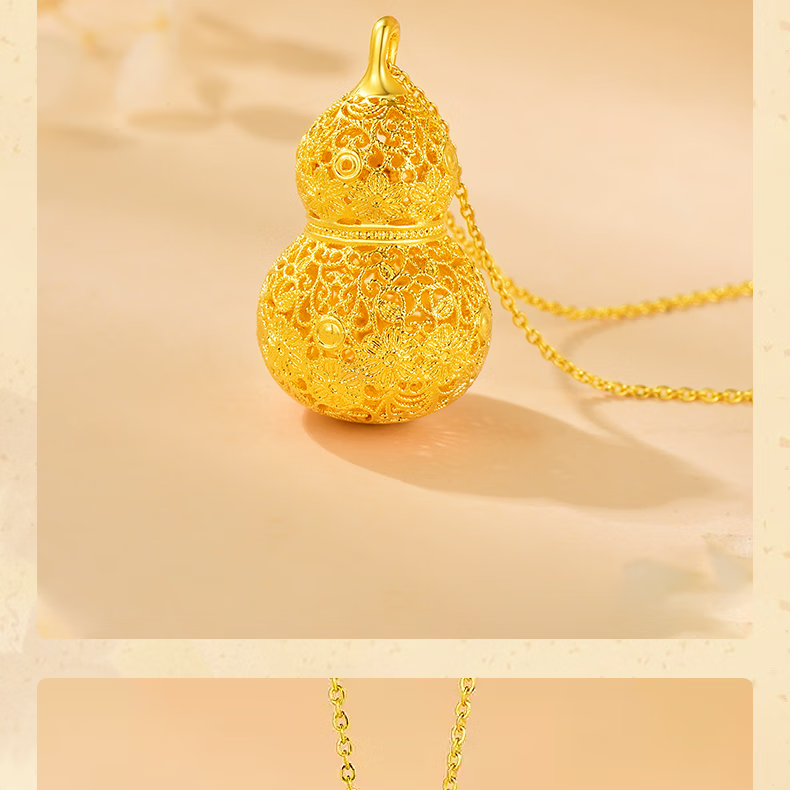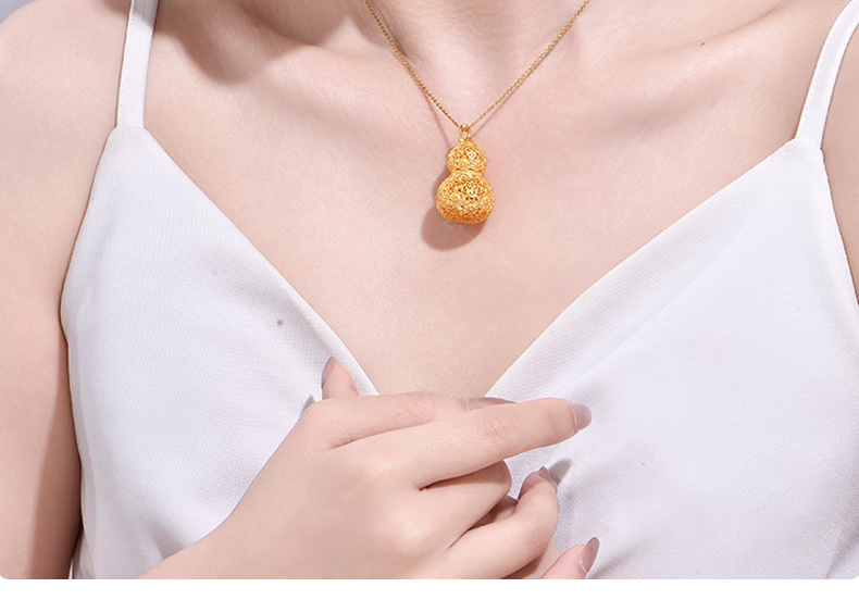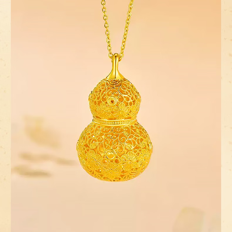 Jin Xiaoxiu gourd gold pendant ancient filigree hollow gourd pendant Ruyi golden gourd inheritance craft 5D large version 2.4g, large filigree gourd-remove more and make up less-match gold necklace