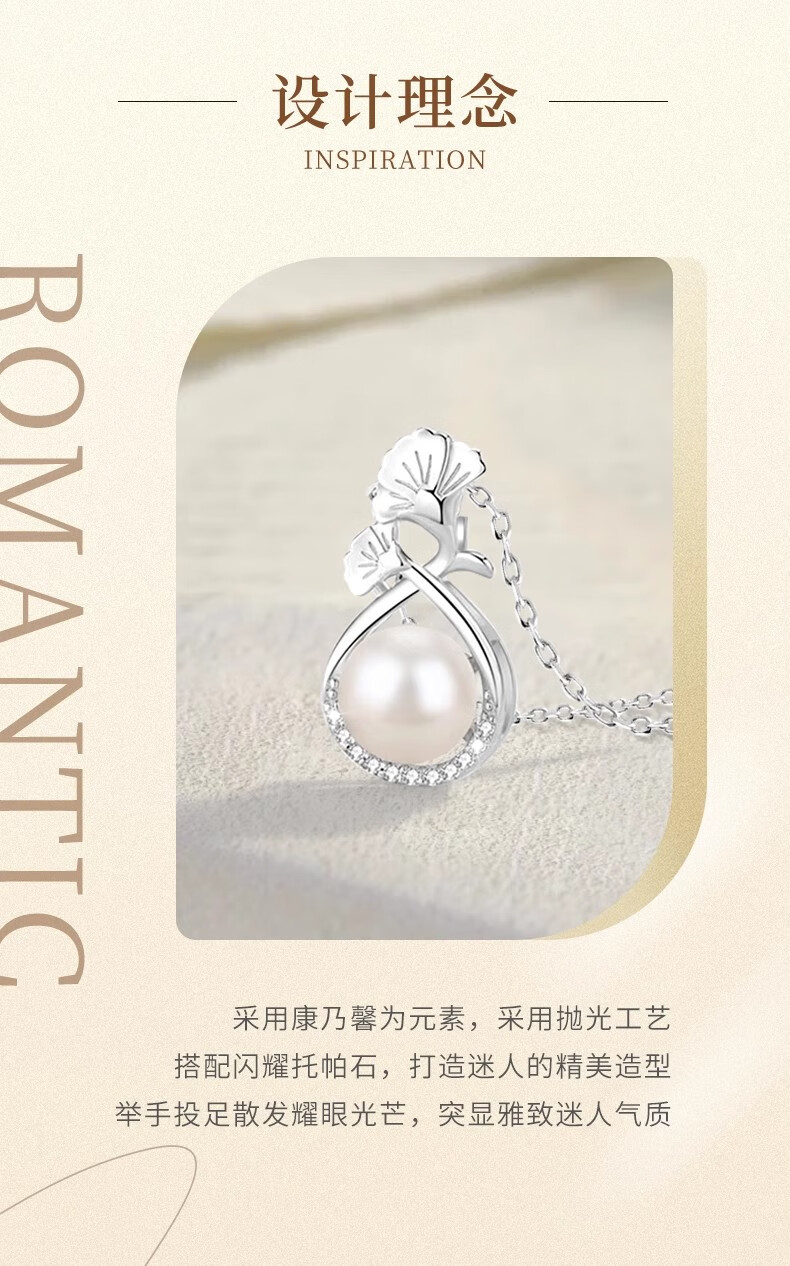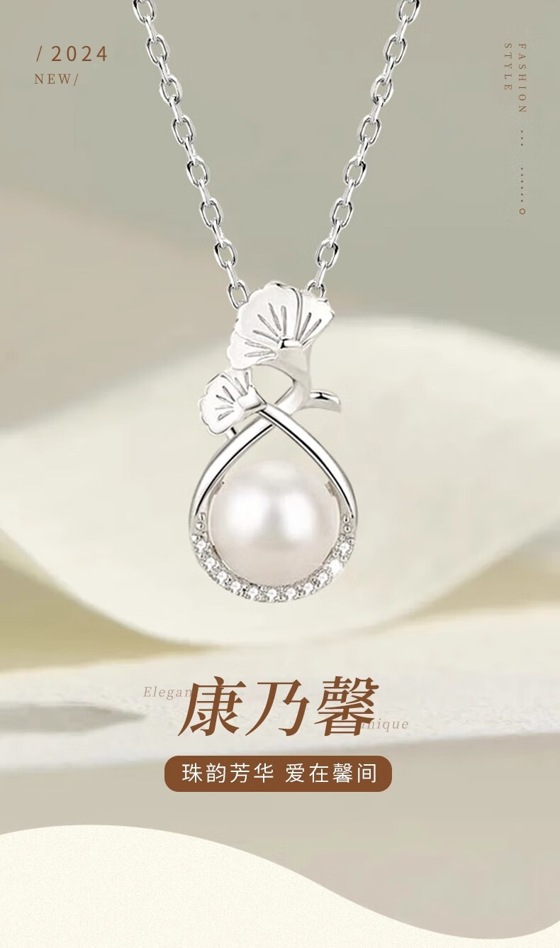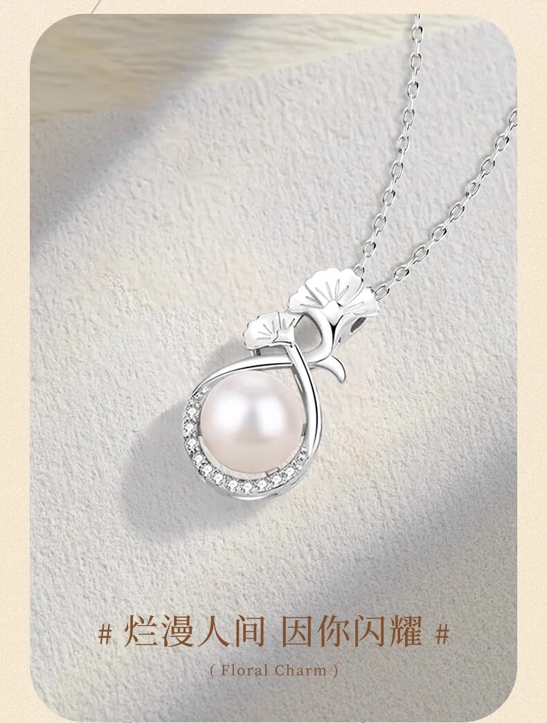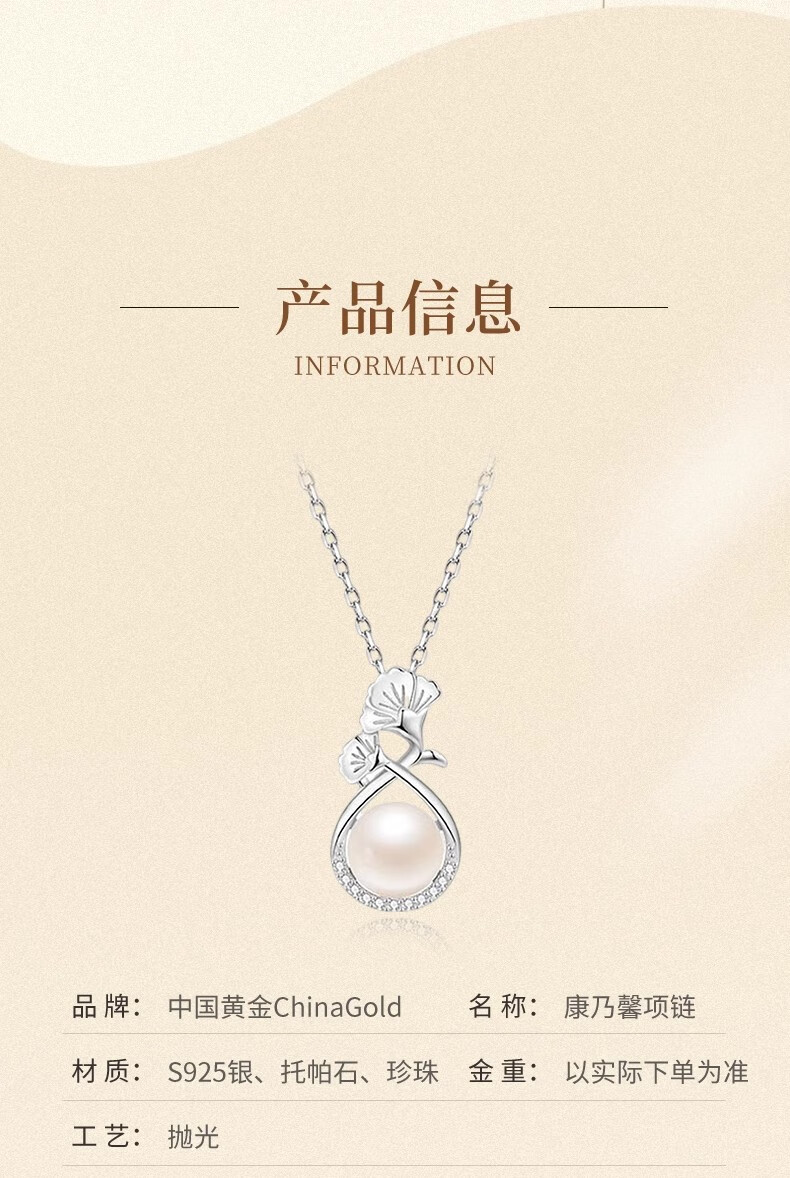China Gold (CHINA GOLD) Silver Freshwater Pearl Necklace Women's Carnation Pendant Sweater Chain Valentine's Day Birthday Gift for Girlfriend and Wife 925 Silver Orchid Pearl Necklace Brand Gift Box