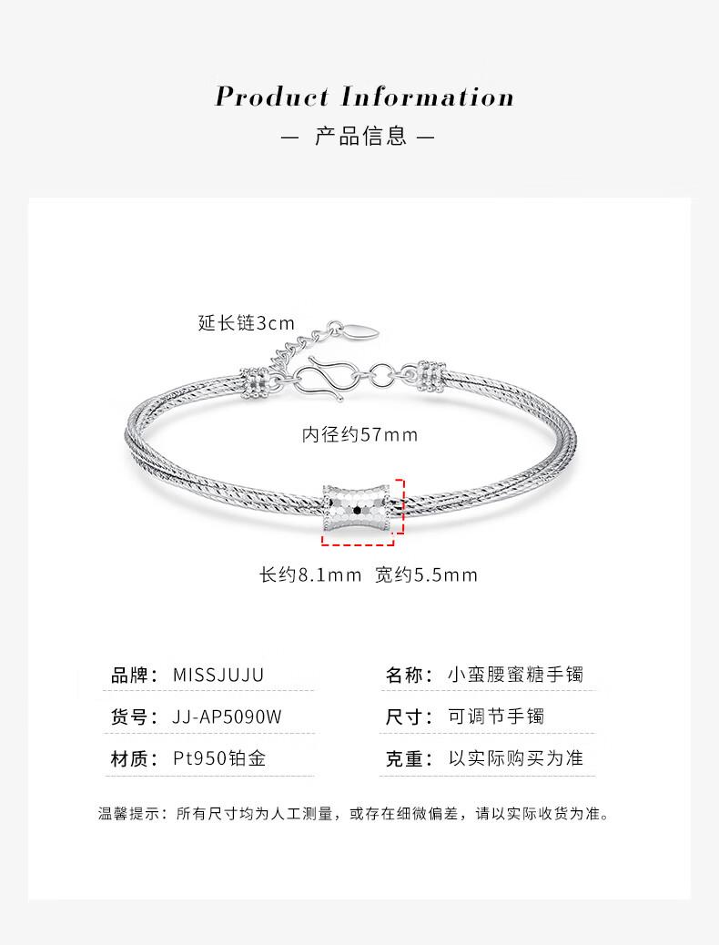 Miss JuJu pt950 platinum small waist bracelet shiny new platinum dragon scale honeycomb open bracelet weight 12.4-12.6g
