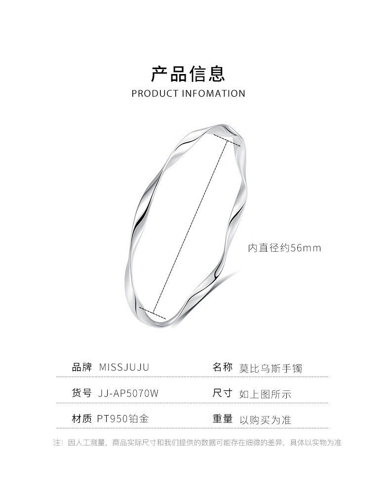 Miss JuJu pt950 platinum Möbius bracelet women's platinum ring solid bracelet weight 13.46 grams inner diameter 54mm