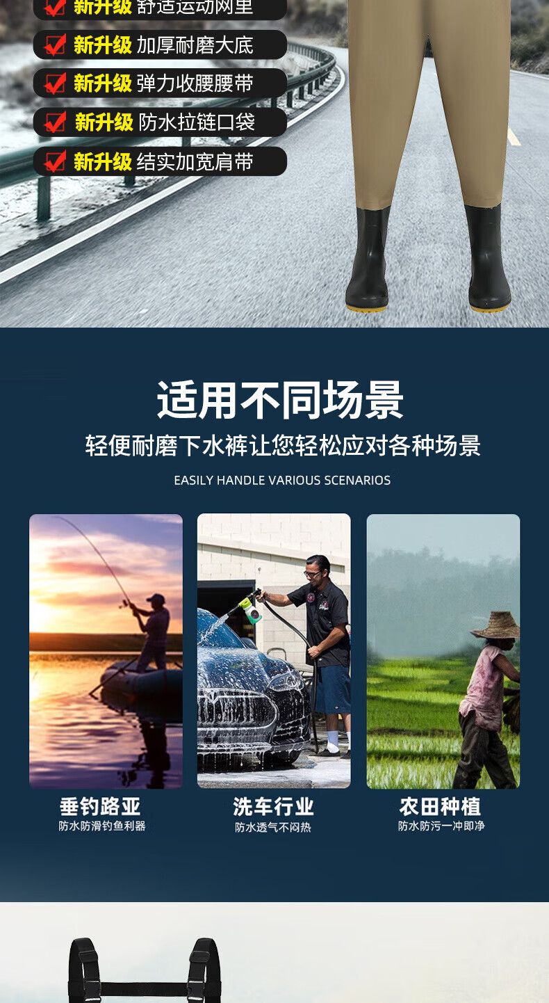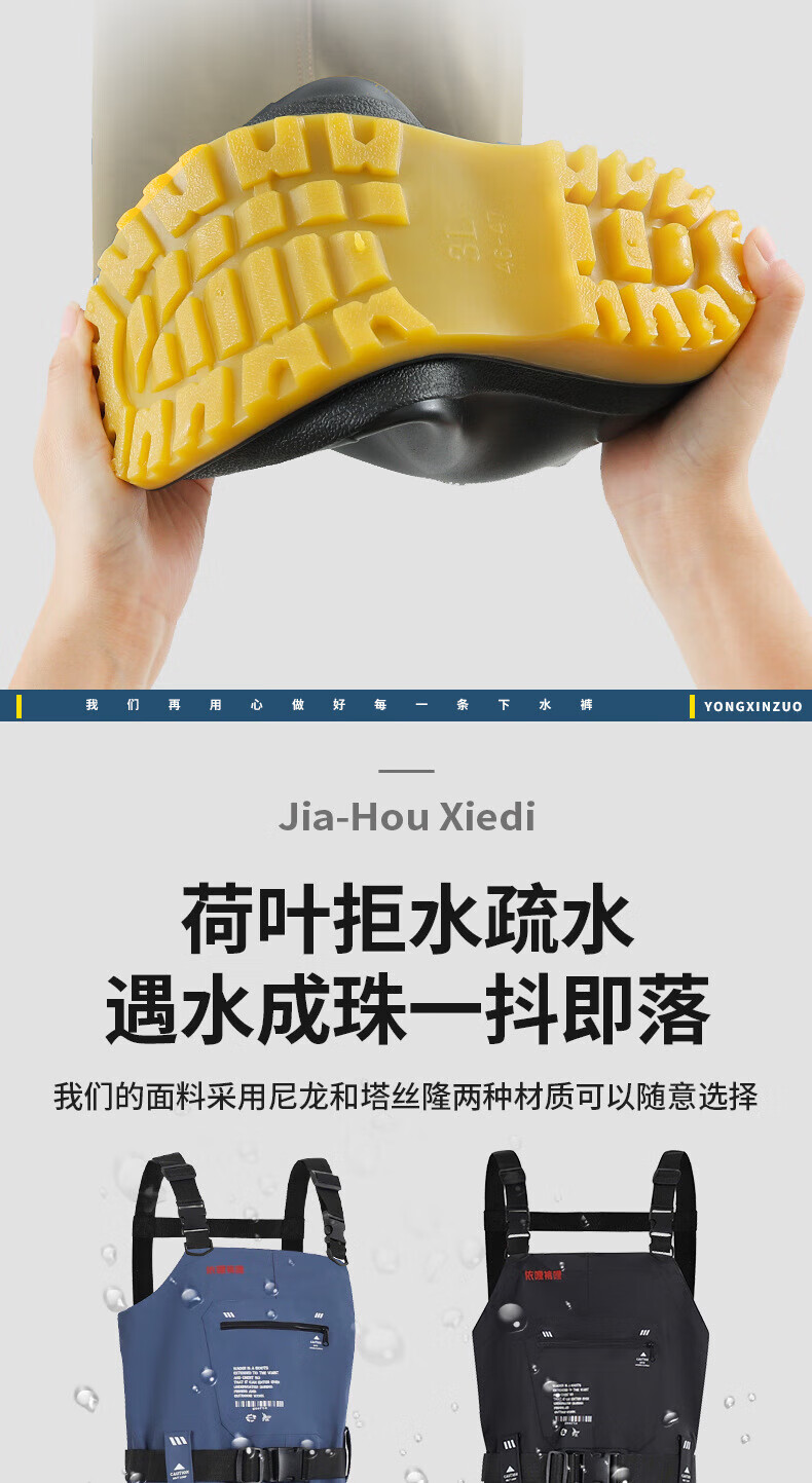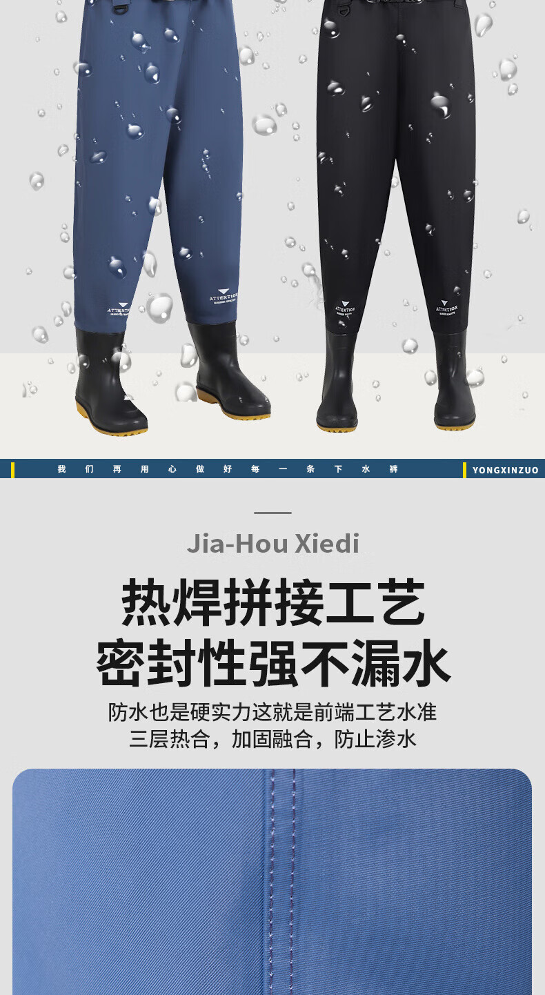 Water trousers, water shoes, half-length one-piece waterproof clothes, rain pants with rain boots, leather crotch trousers for fishing, reservoir water shoes, thickened blue Taslan upgraded model - lightweight sports net, one size fits all, 40/41 shoe size