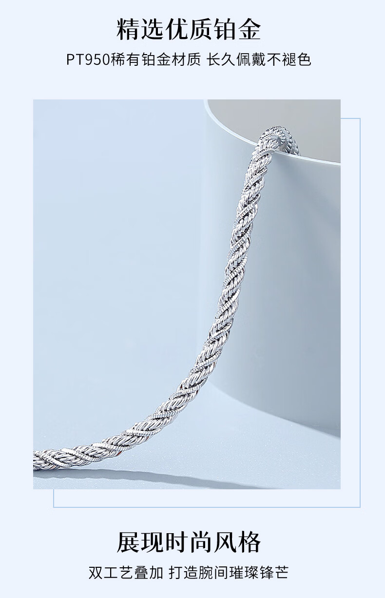 Miss JuJu pt950 platinum double chain wrap bracelet women's new platinum bracelet, weight 10.2-10.4g, length 16+3cm