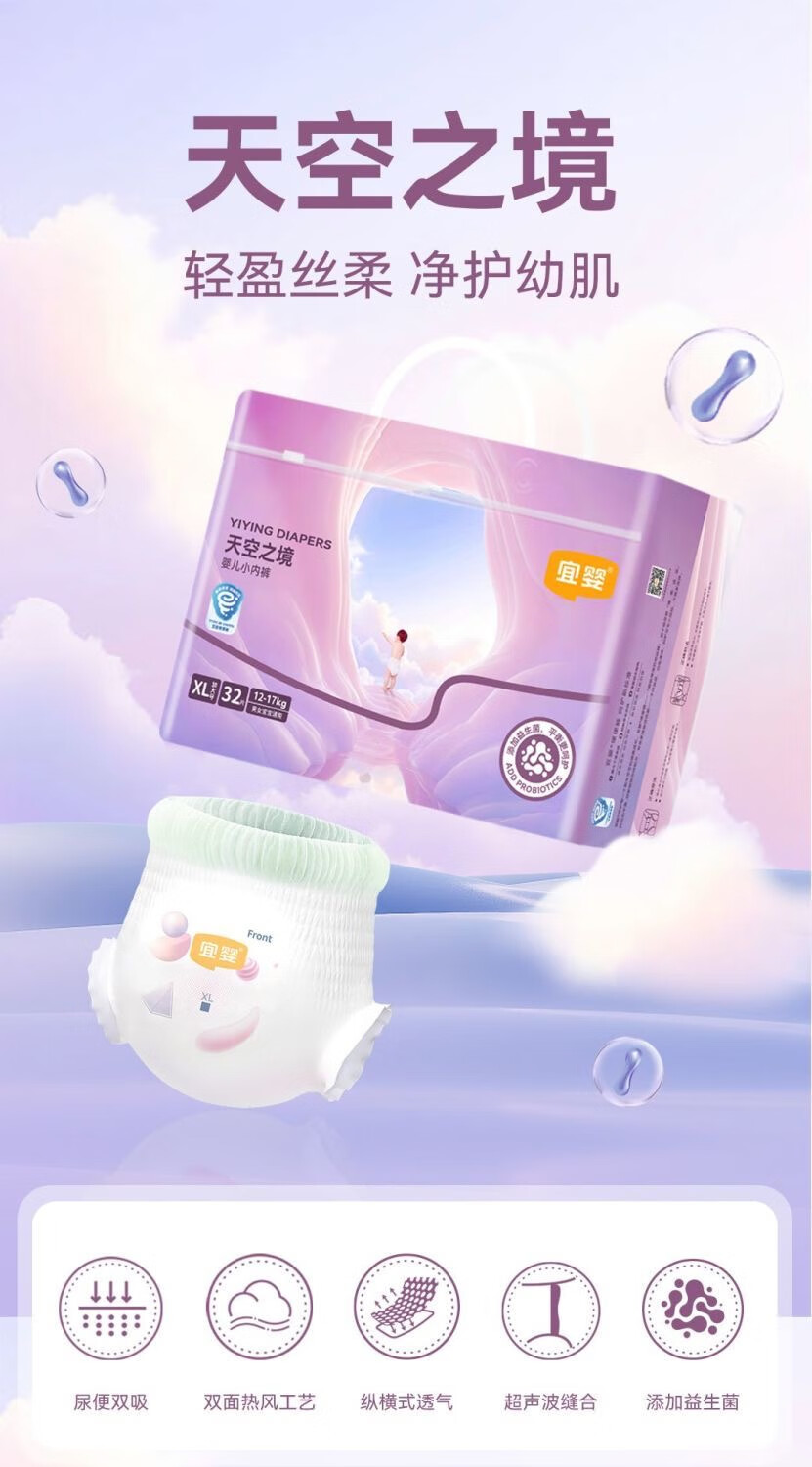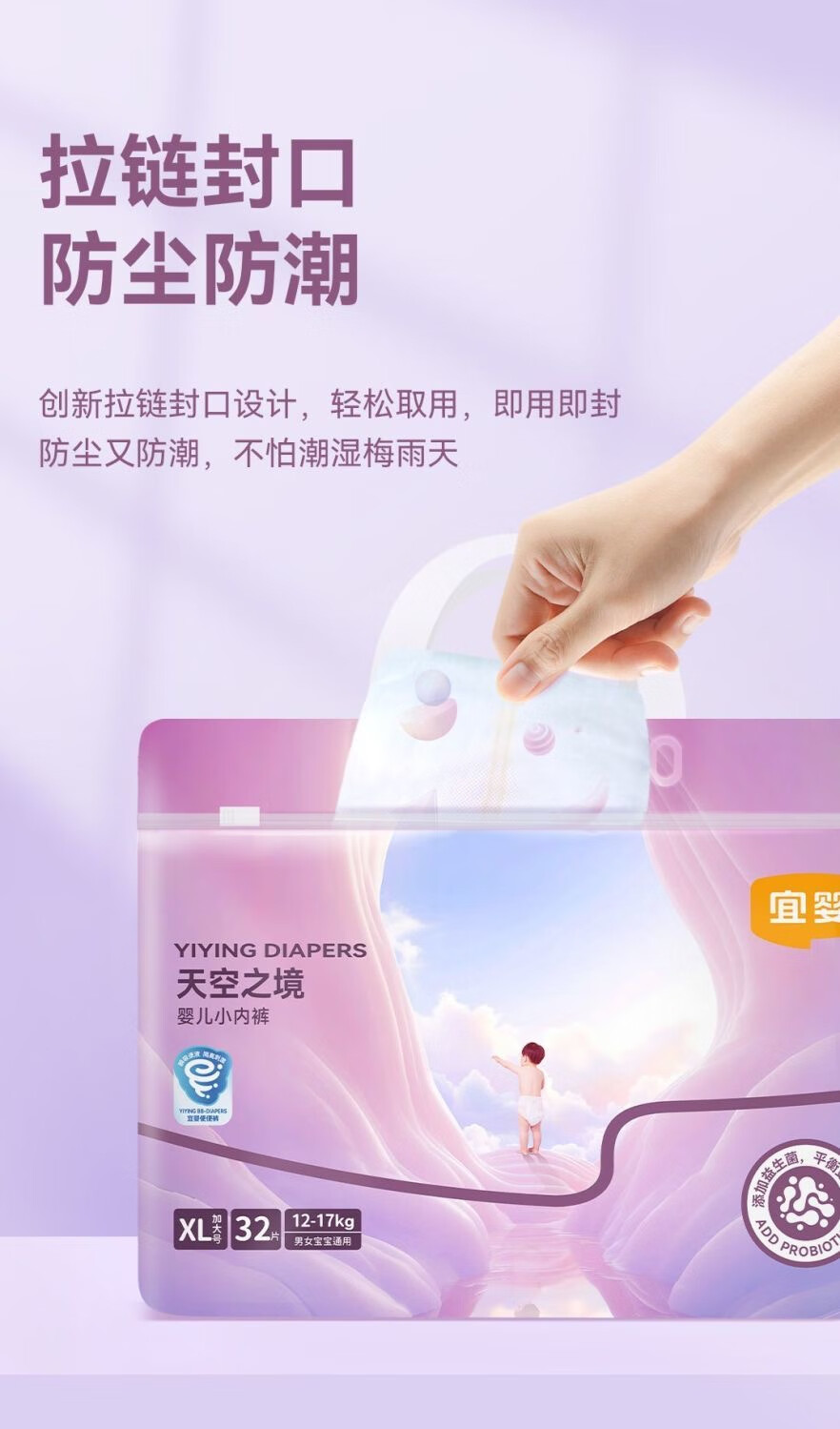 Yiying Sky Realm Diapers Ultra-Thin Breathable Dry Probiotic Newborn Baby Pull-Up Pants One-Pants Diapers Pull-up Pants XL Size Two Packs (Sent in Original Box)