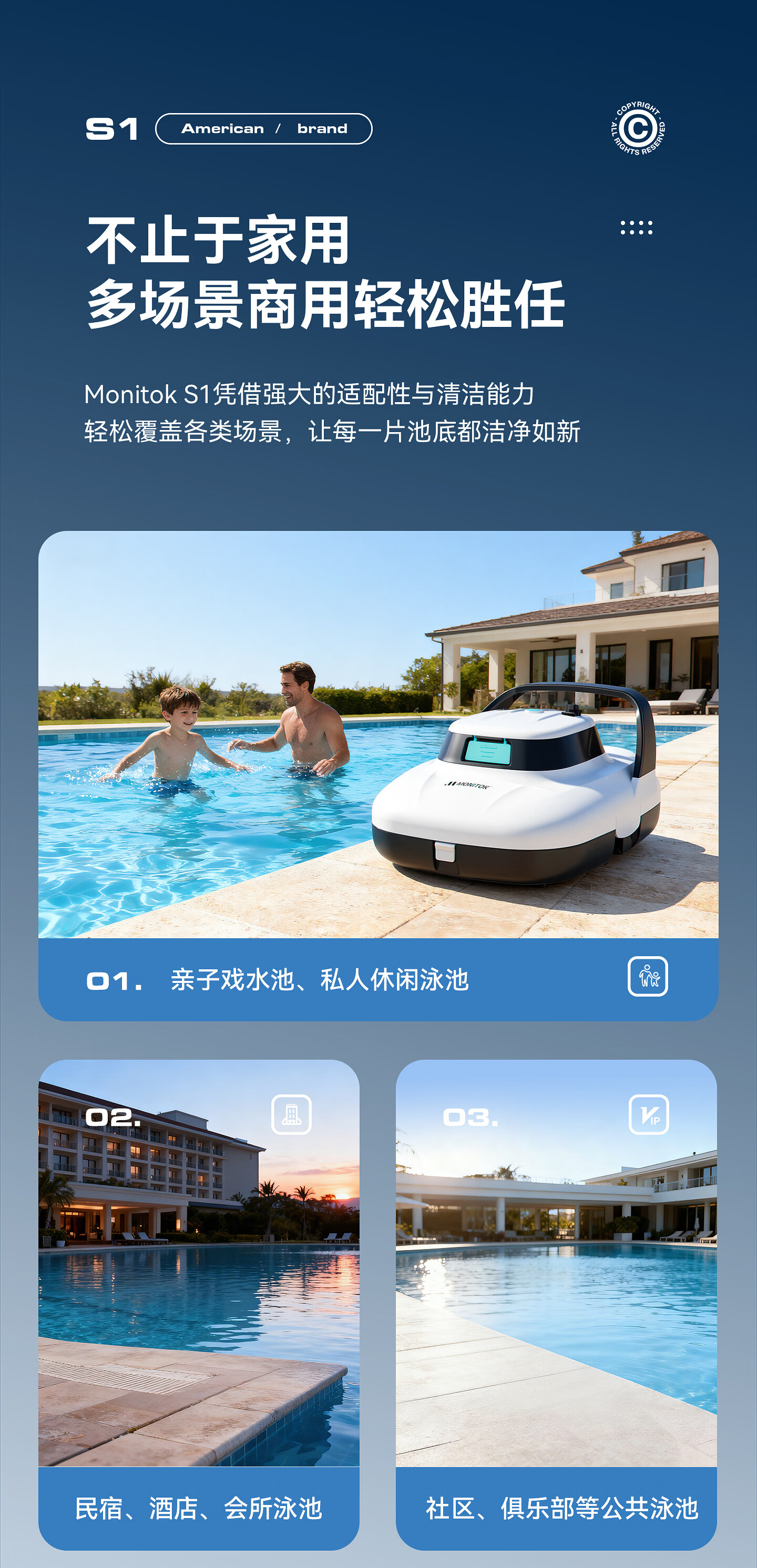 Monitok American swimming pool sewage suction machine cleaning robot Terrapin intelligent fully automatic underwater vacuum cleaner fish pond cleaning underwater XL12 pool sewage suction machine (plug-in model 15 meters)