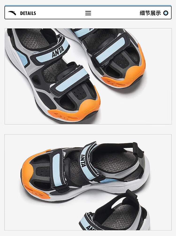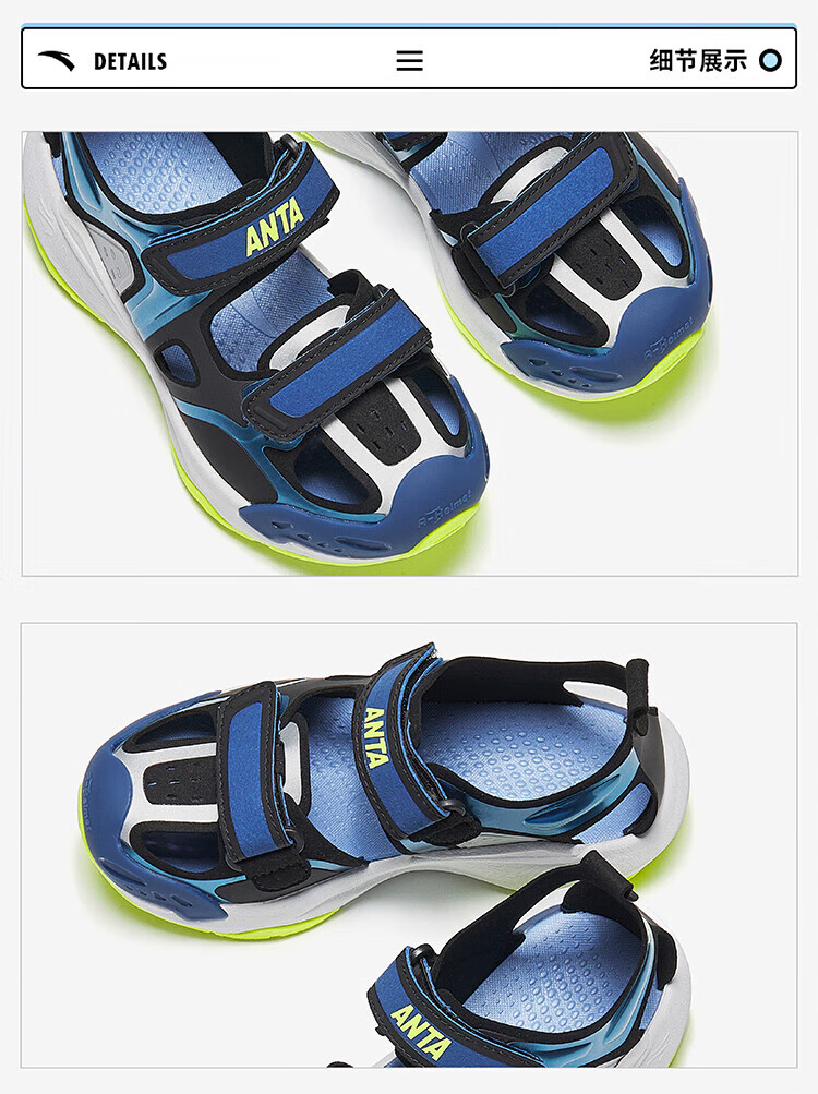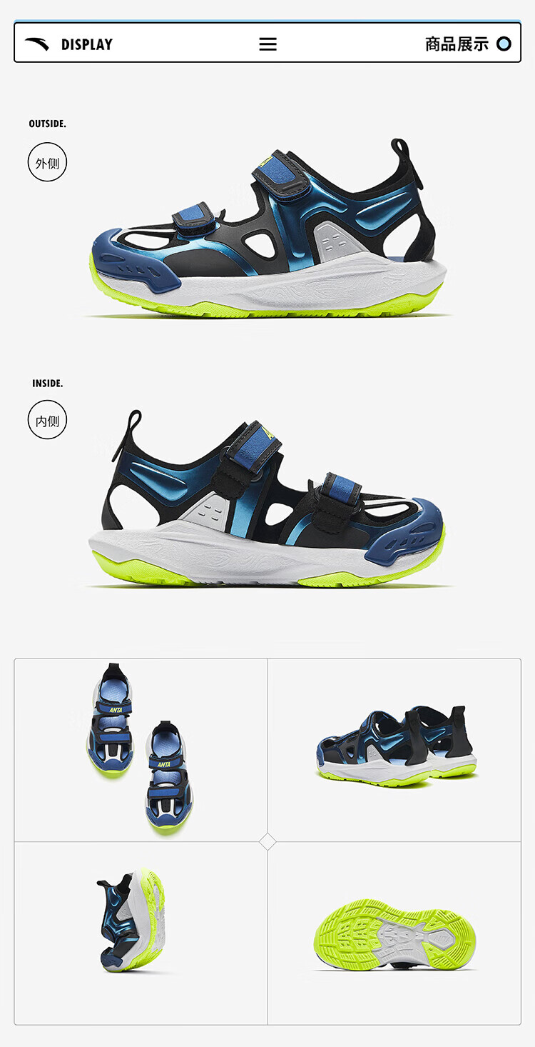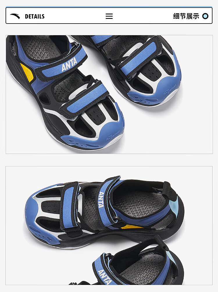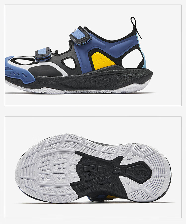 ANTA (ANTA) Children's Sandals Boys' Shoes 26th Spring New Qingyu Tuantan Technology Outdoor Baotou Beach Shoes Black/Sea Mist Blue-1 28