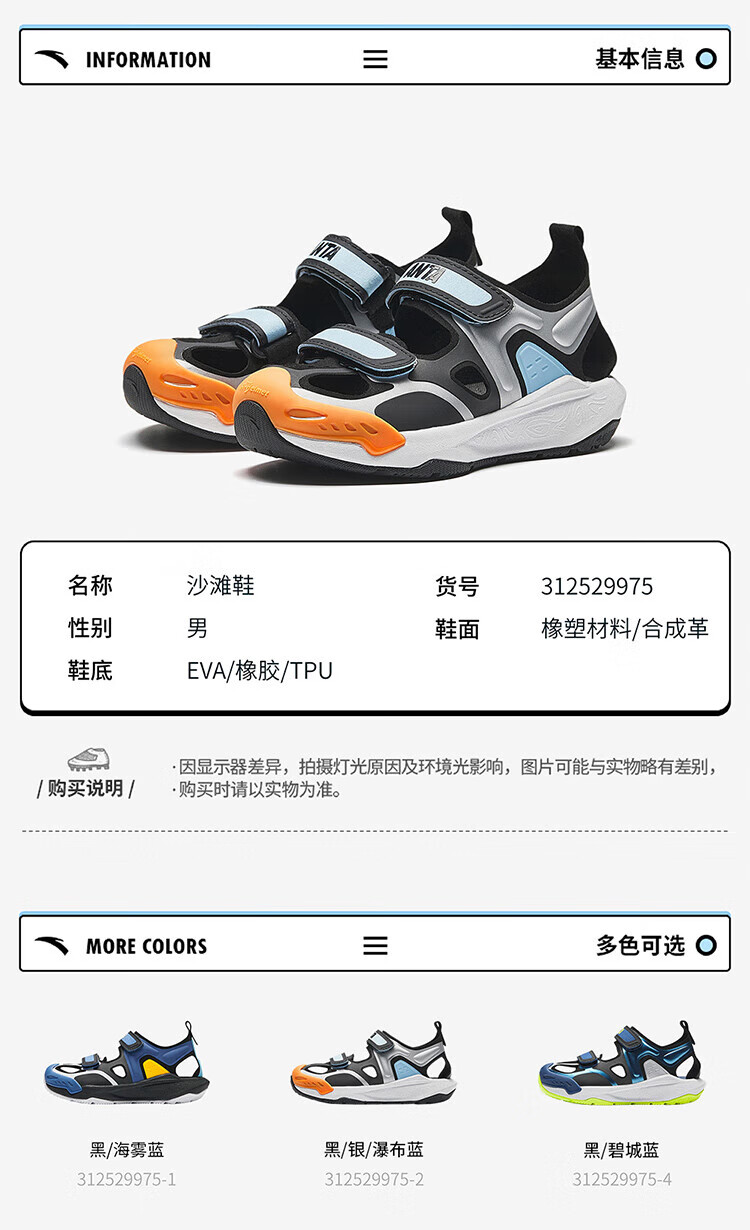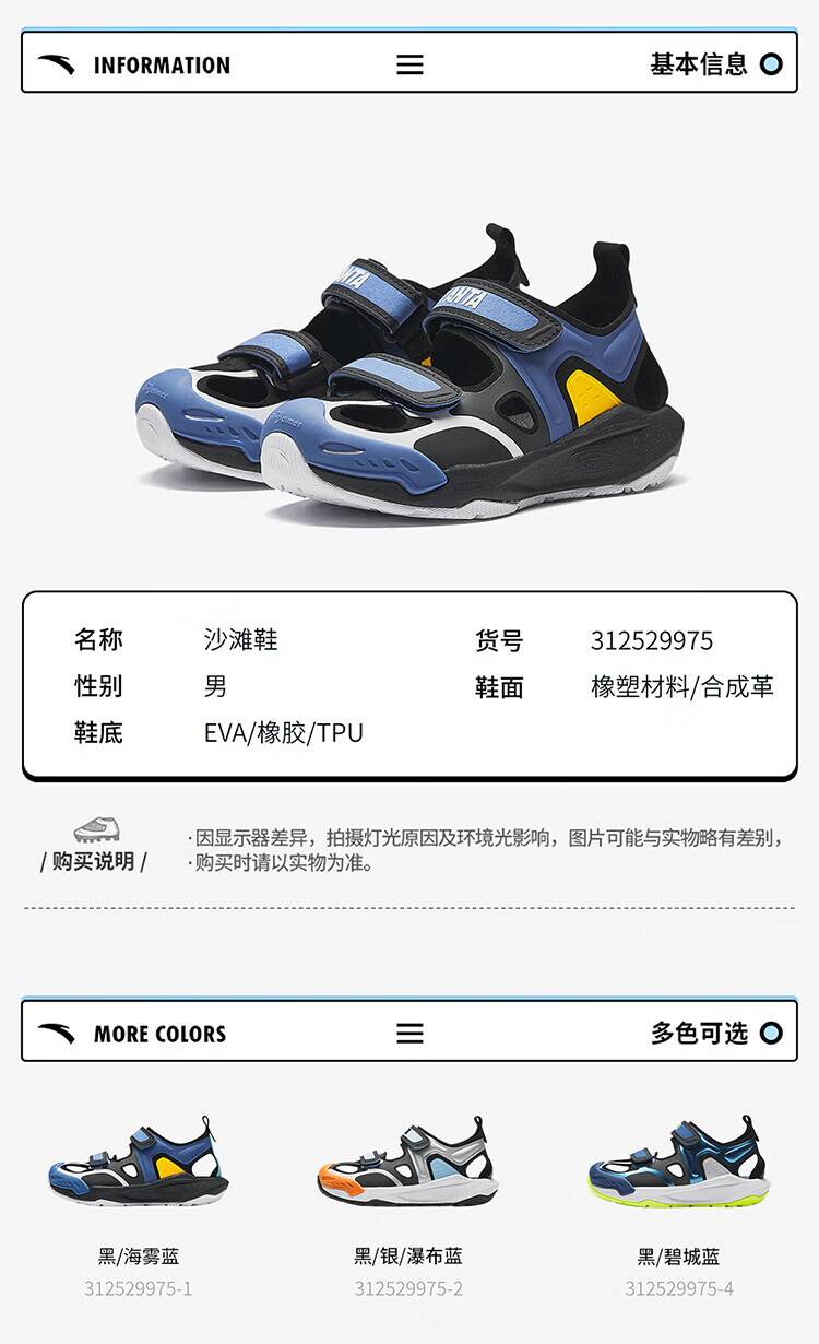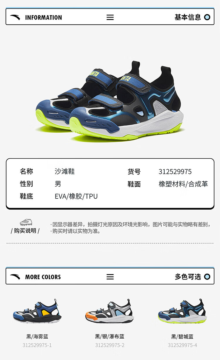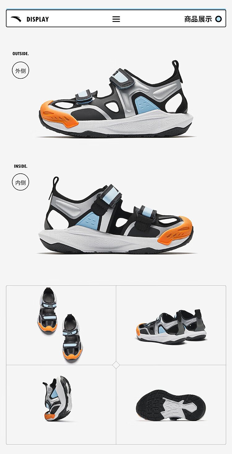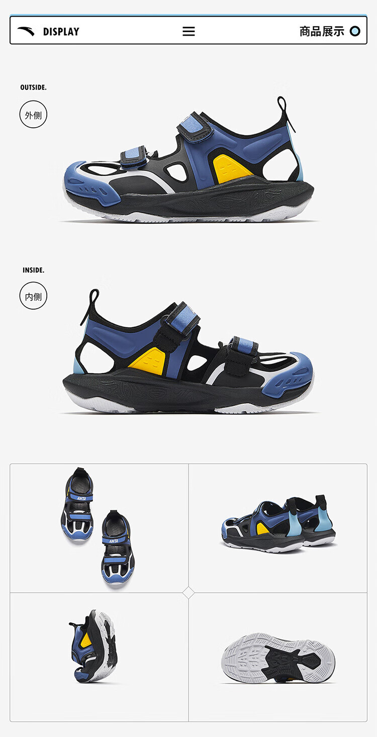 ANTA (ANTA) Children's Sandals Boys' Shoes 26th Spring New Qingyu Tuantan Technology Outdoor Baotou Beach Shoes Black/Sea Mist Blue-1 28