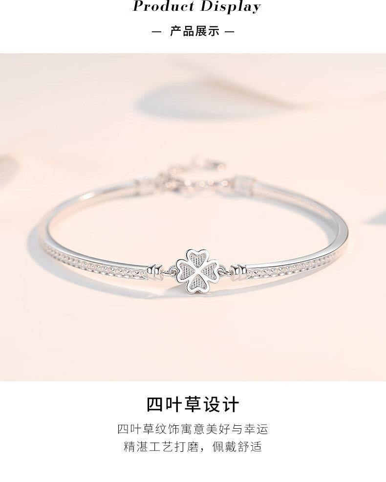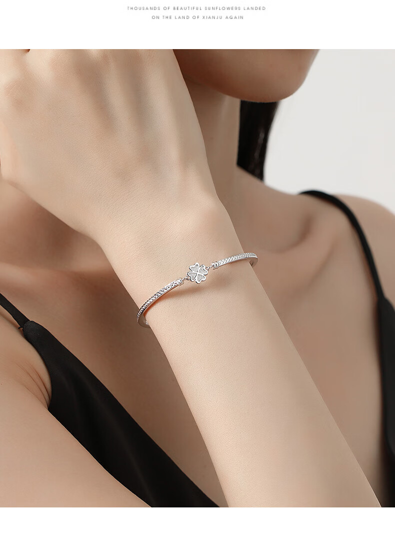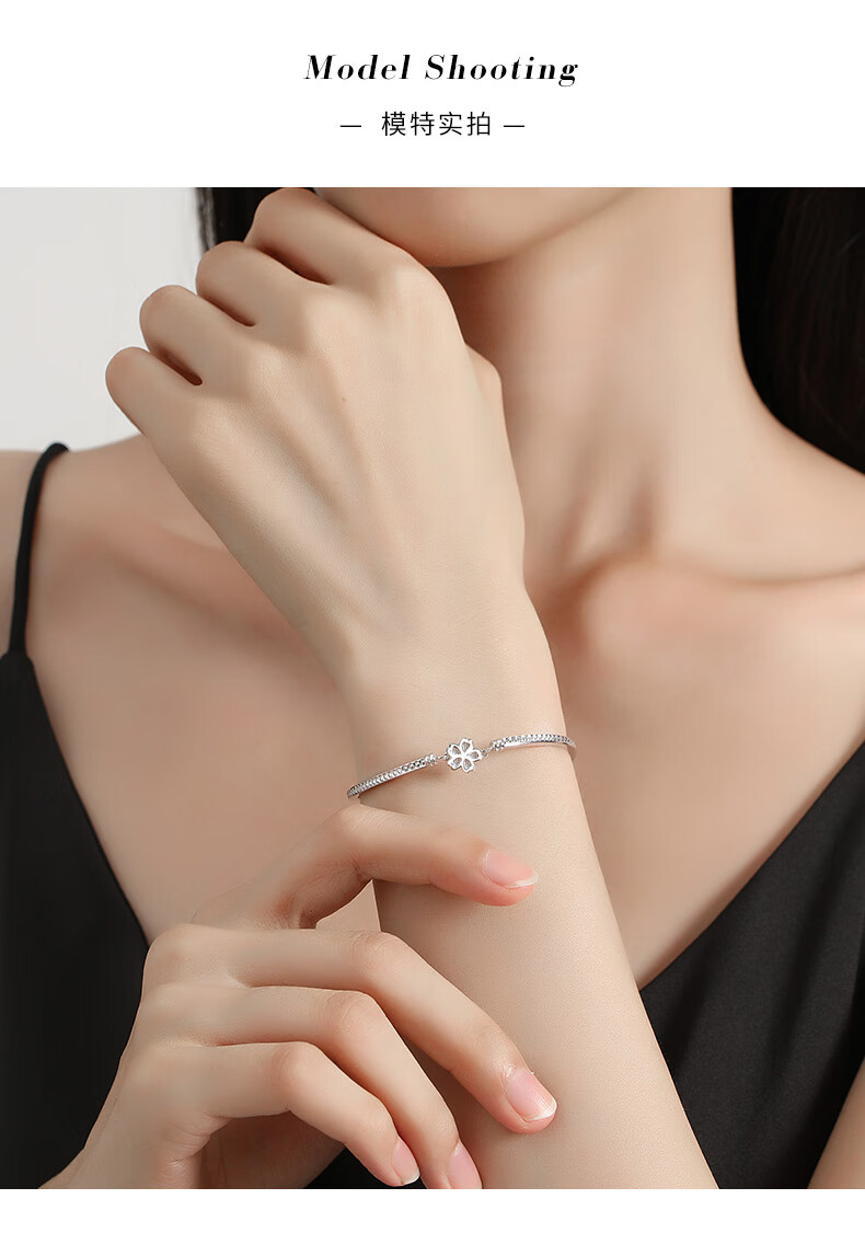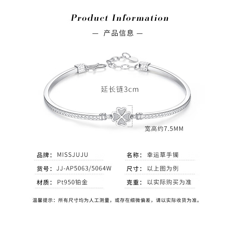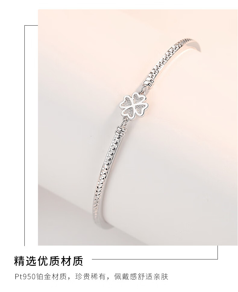 Miss JuJu pt950 platinum five-flower bracelet for women, fashionable shiny platinum four-leaf clover bracelet, four-leaf clover, weighing 5.0-5.2 grams